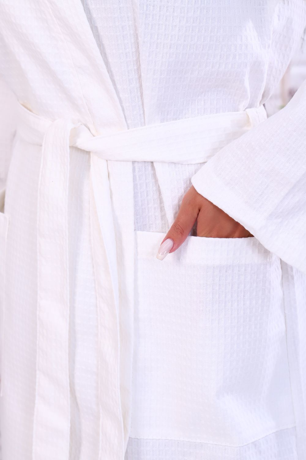 Вафельный халат- кимоно отельный. Рукав длинный. Карманы накладные. Воротник планка. Плотность вафельного полотна 225 гр.