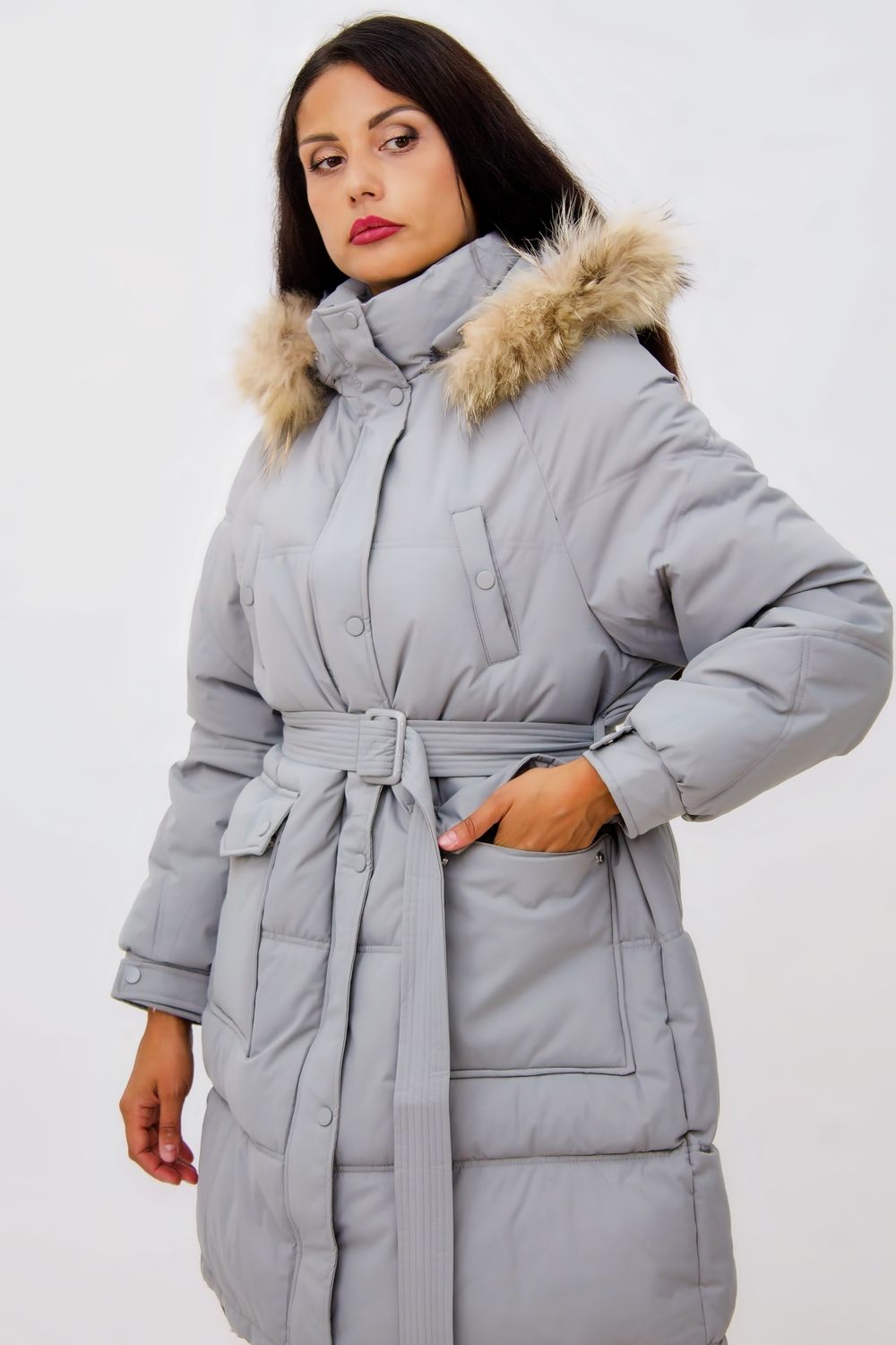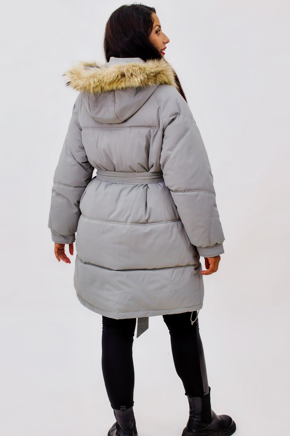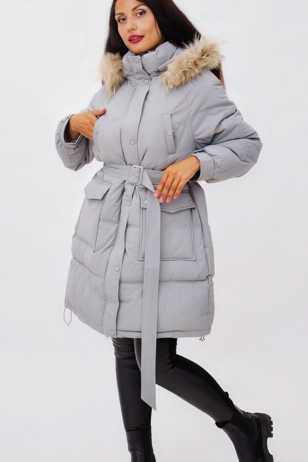 Зимняя куртка на поясе с натуральным мехом арт. 23226