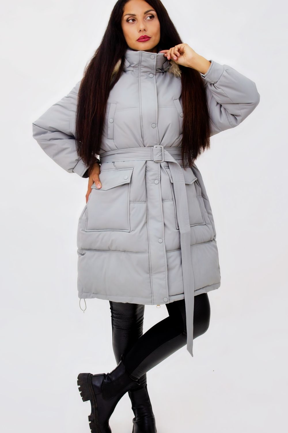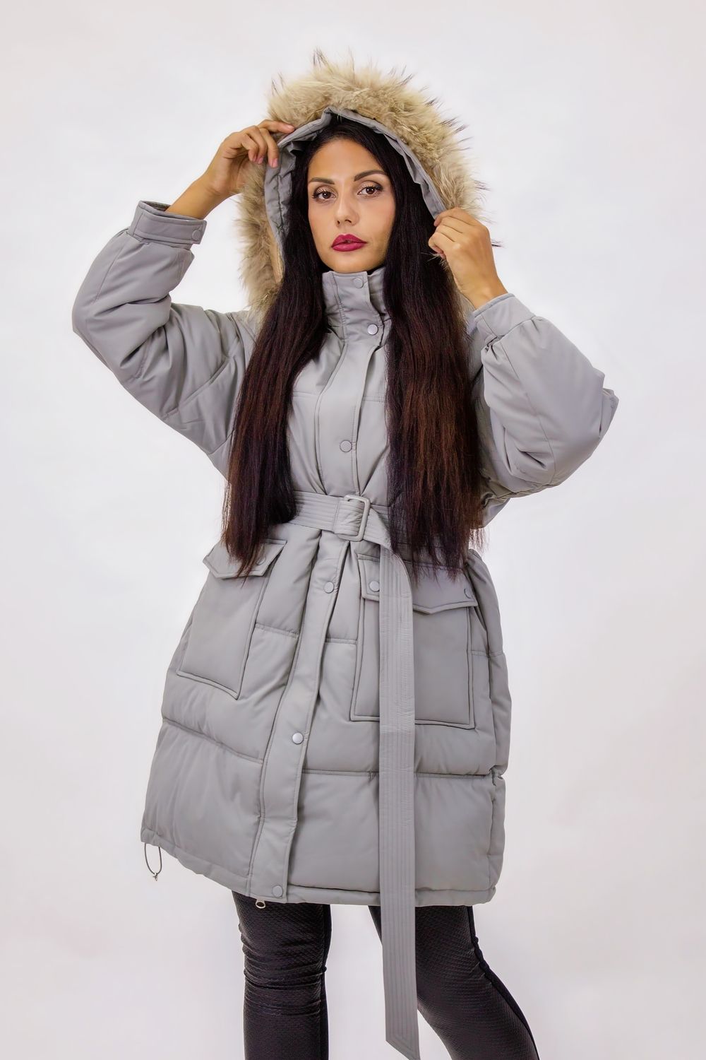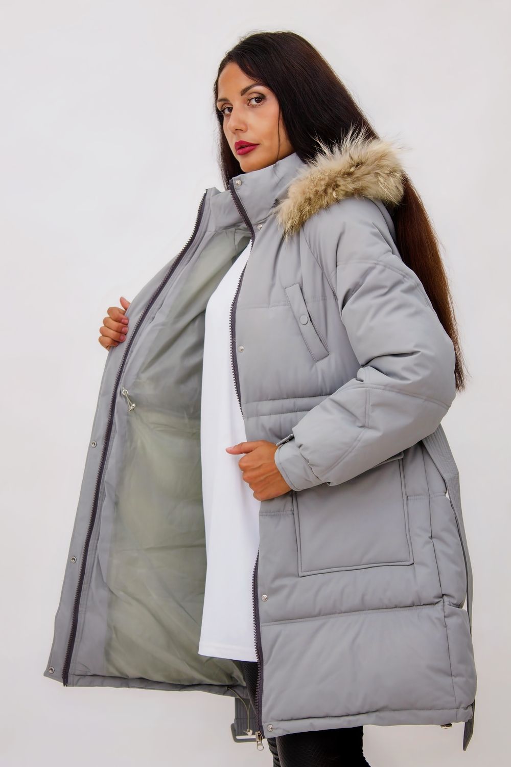 Зимняя куртка на поясе с натуральным мехом арт. 23226