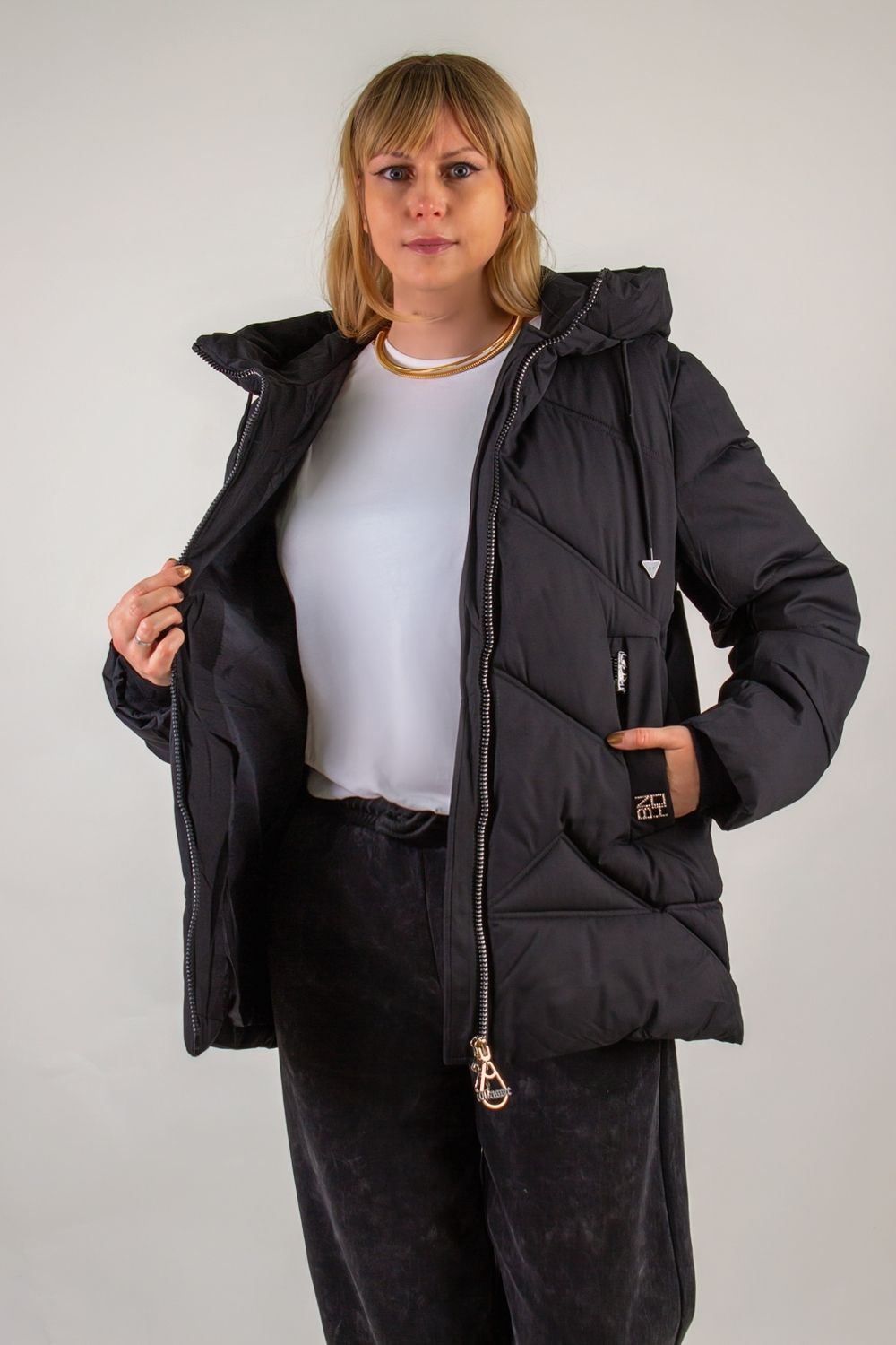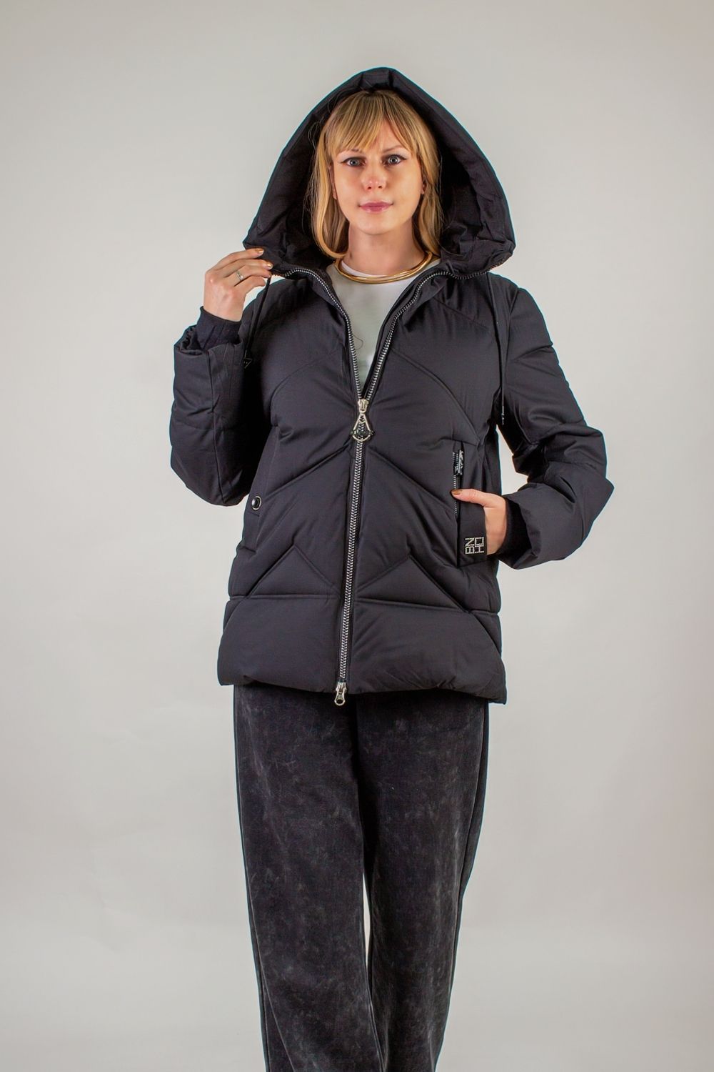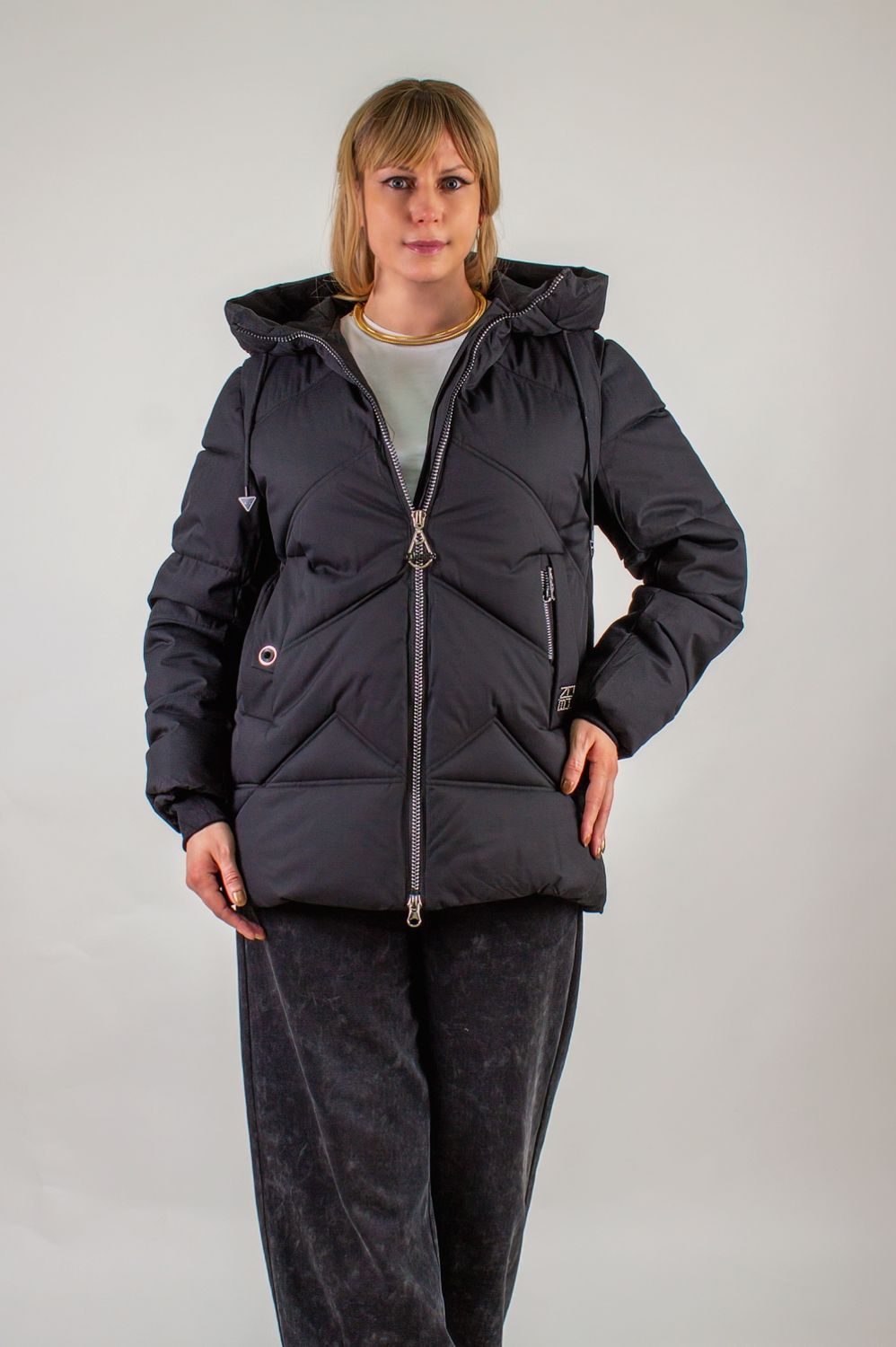 Зимняя куртка с капюшоном арт.2866 евро-зима, демисезон – универсальная находка для холодного сезона и демисезона. Модель средней длины (76 см) идеально сочетается с любым образом: от городского кэжуал до уютного загородного лука. Практичный капюшон с высоким воротником-стойкой на регулируемых завязках защитит от ветра и метели, а современная двухзамковая молния с внутренней планкой исключает продувание при морозах.