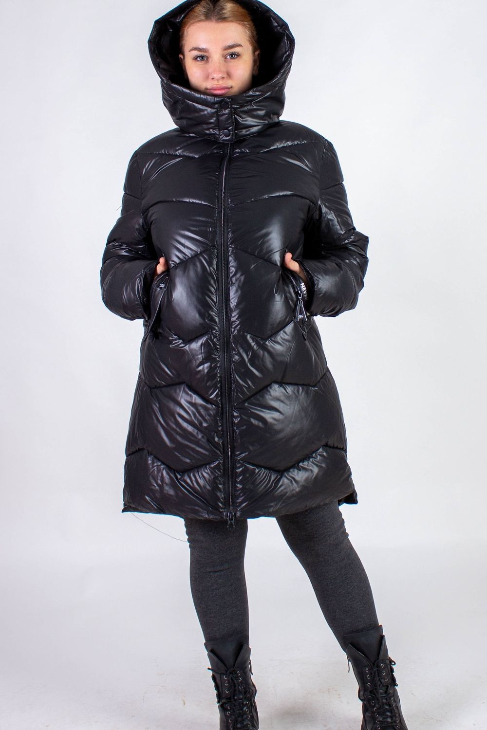 Зимняя куртка стеганная с капюшоном арт. 811 - черный