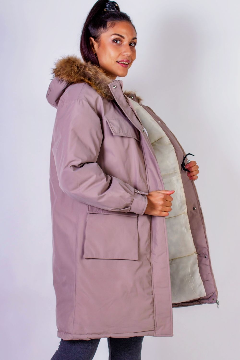Зимняя парка удлиненная, с капюшоном натуральный мех арт. 619
