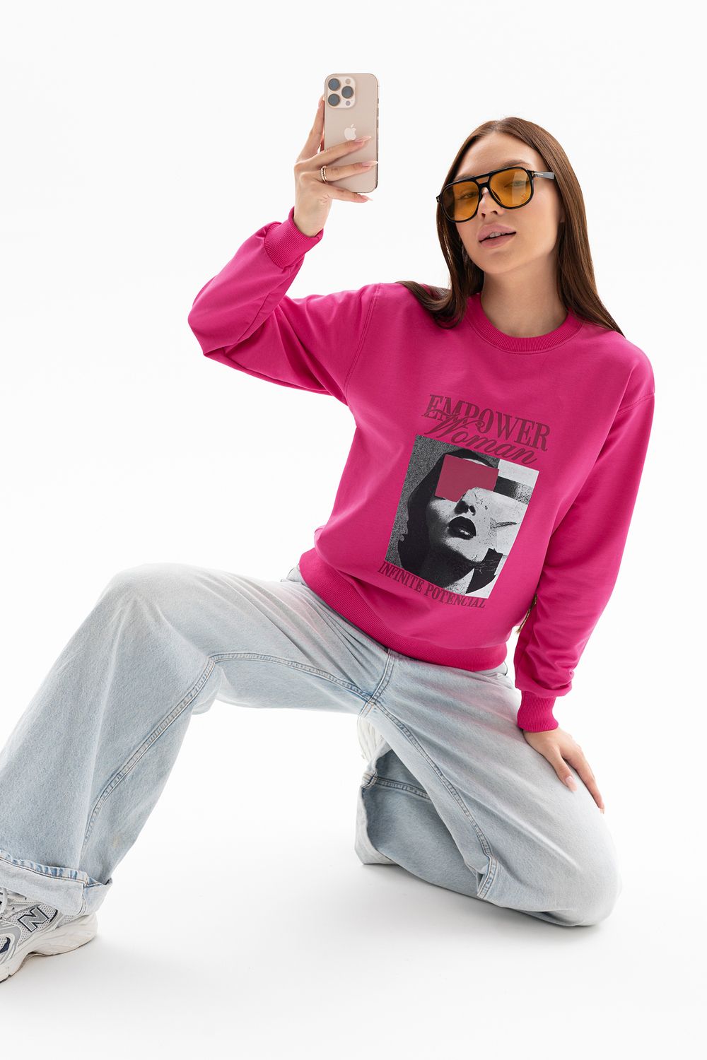 Ищете стильный и комфортный свитшот для повседневной носки? Наш свитшот оверсайз с принтом без начеса станет отличным выбором для современных девушек. Эта кофта идеально подходит для повседневной носки, обеспечивая максимальный комфорт и свободу движений.