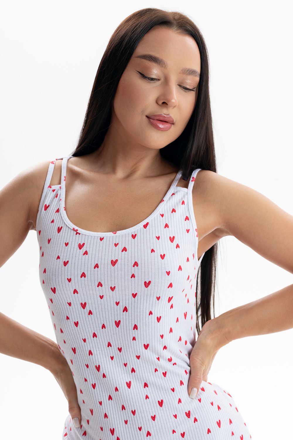 00029 сорочка - Белый с сердечками
