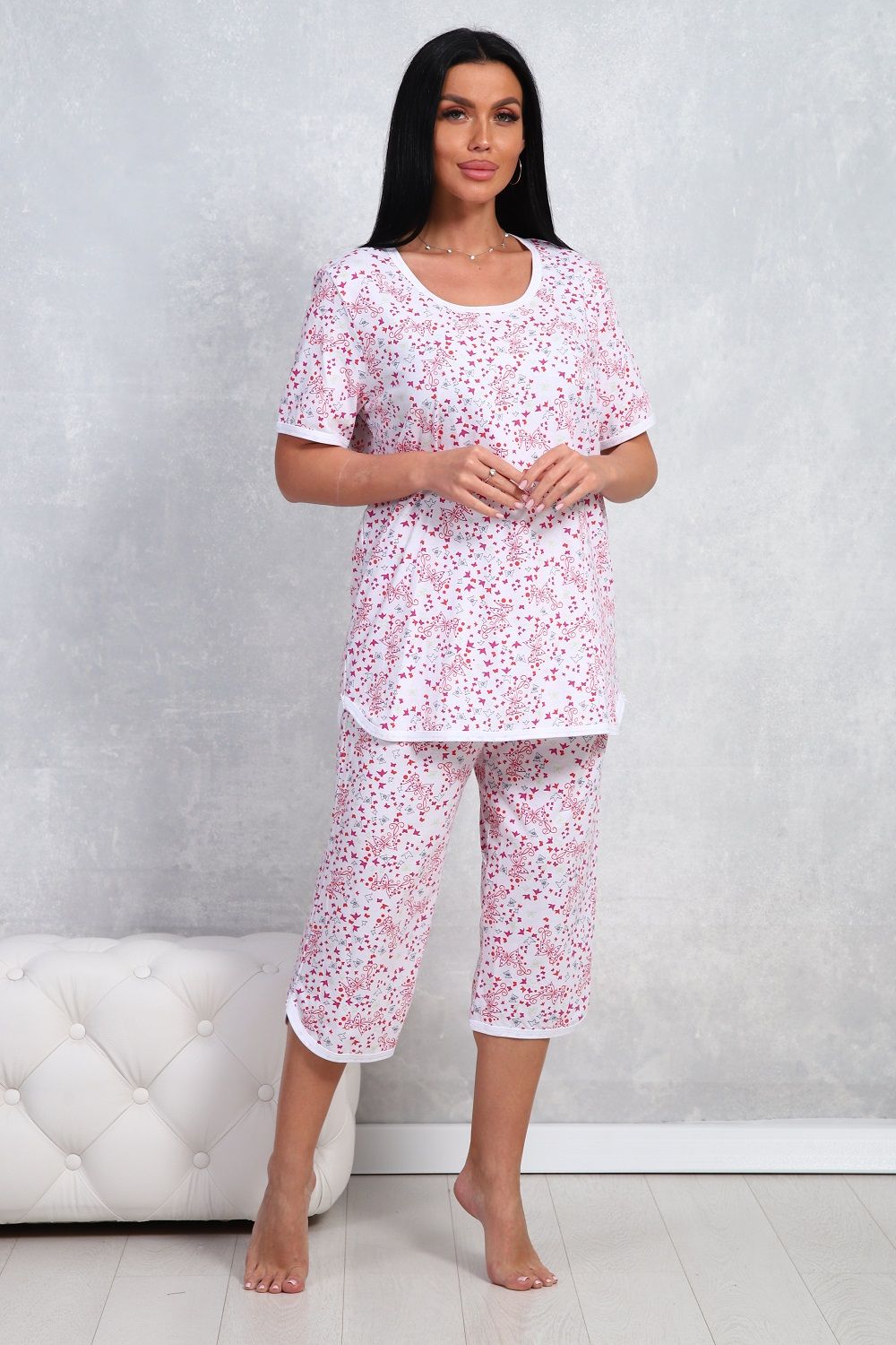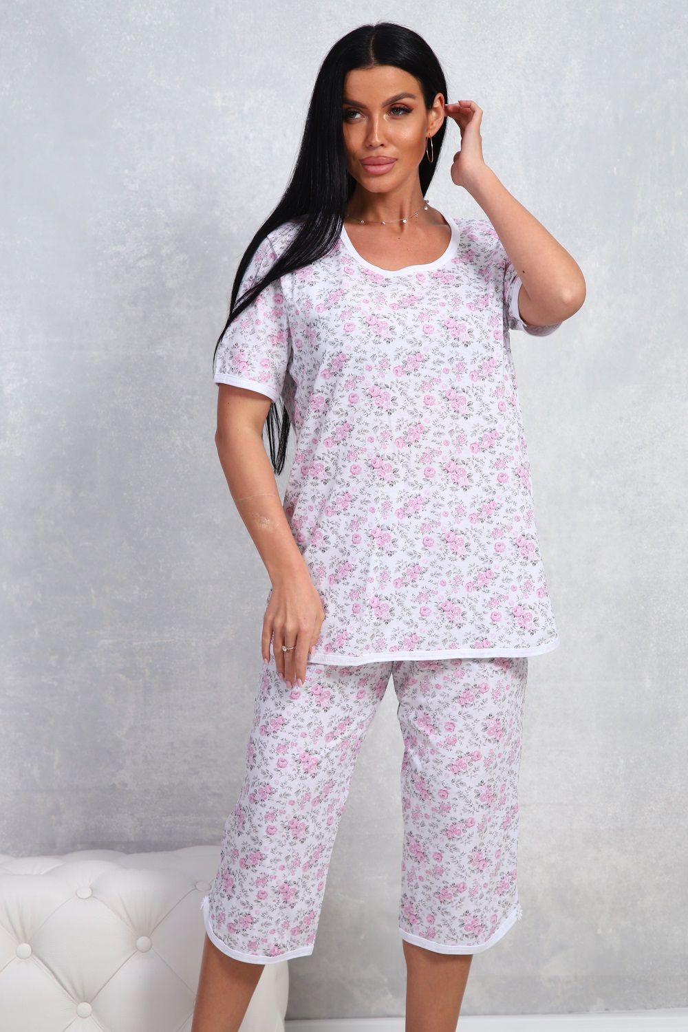 Пижама женская, комфортный крой и 100% хлопок. Цвет: ассорти (Внимание! Данный товар по цвету не подбирается, возможные варианты расцветок представлены на фото). Пижама состоит из бридж и футболки с короткими рукавами.