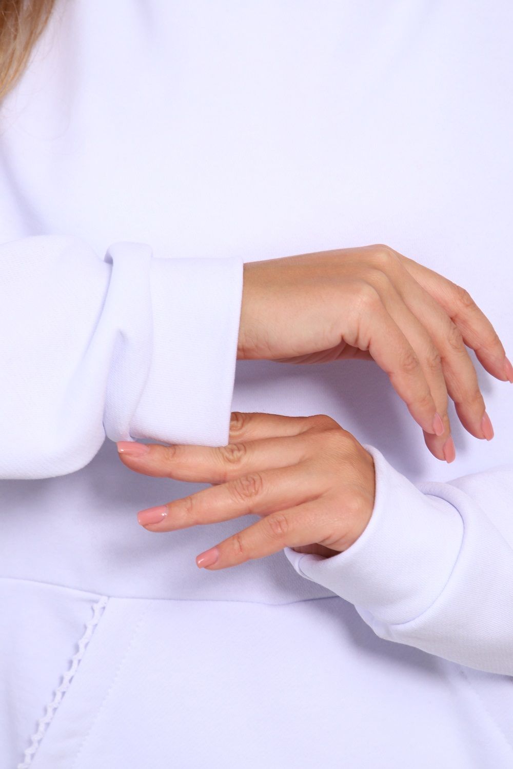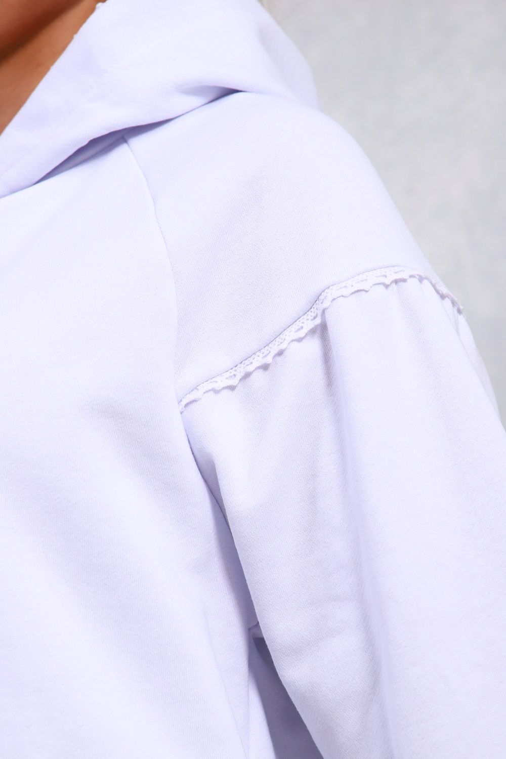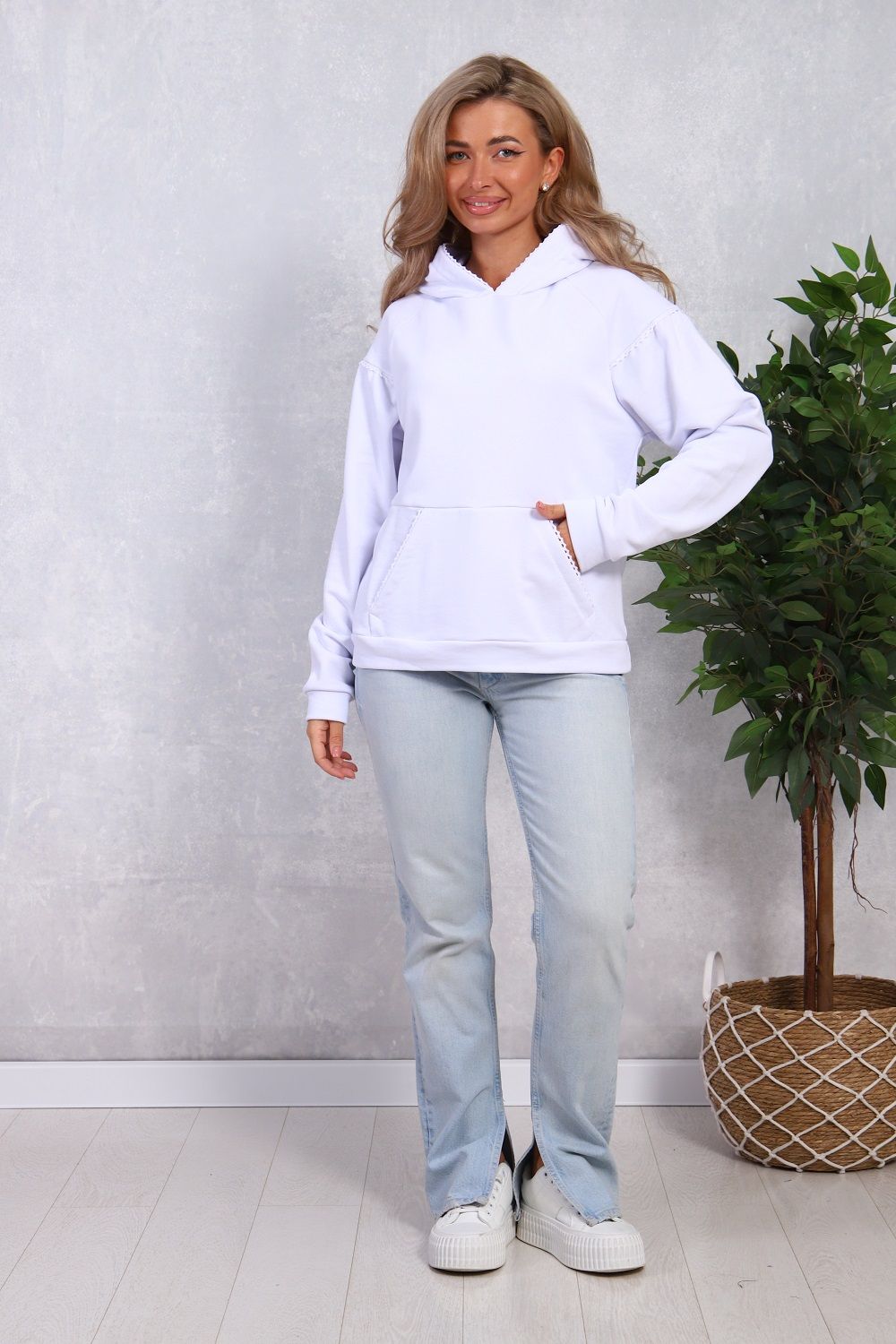 Женская толстовка с капюшоном, изюминка этой толстовки - стильный трендовый декор с винтажным мотивом - карманы, верх рукава и капюшон декорированы вязаным хлопковым кружевом. Универсальный комфортный крой обеспечивает удачную посадку на любой тип фигуры, капюшон обеспечит уют в прохладную погоду. Трикотаж премиального качества ("толстый" хлопок - петельчатый футер диагональ с 88% хлопка).