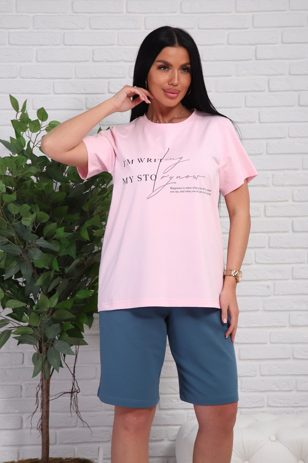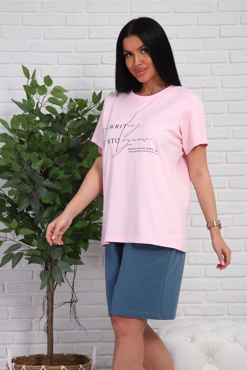 Костюм женский - футболка с короткими рукавами и шорты с боковыми карманами.