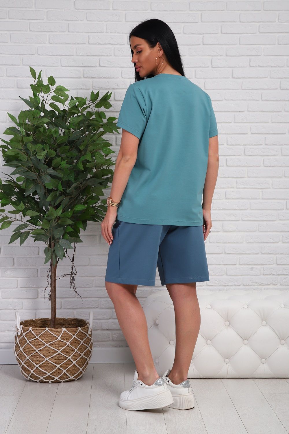 Костюм женский - футболка с короткими рукавами и шорты с боковыми карманами.