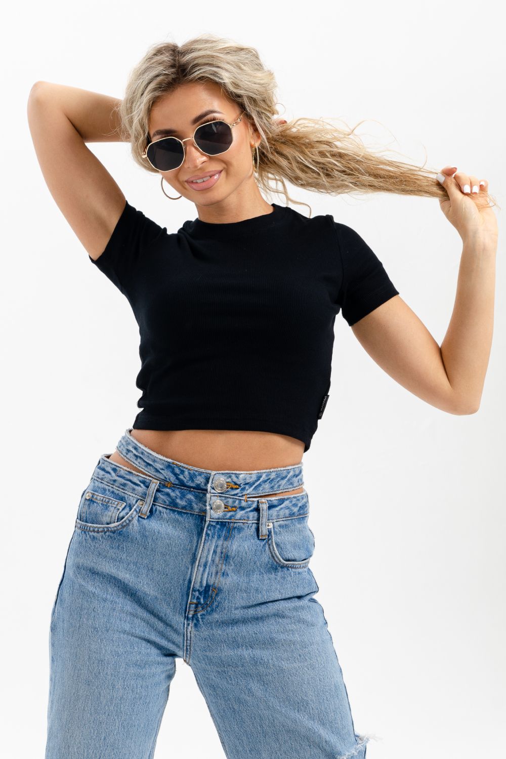 Укороченный футболка женская из кашкорсе. Популярная модель среди покупательниц. Отличная ткань, качественный пошив. Идеально подойдет для прогулок и занятий спортом. Футболка прекрасно смотрится в летние дни, под пиджаком или кардиганом в прохладные осенние вечера и зимние дни.