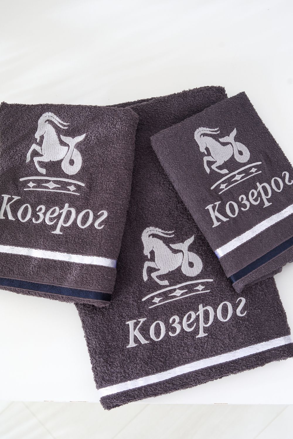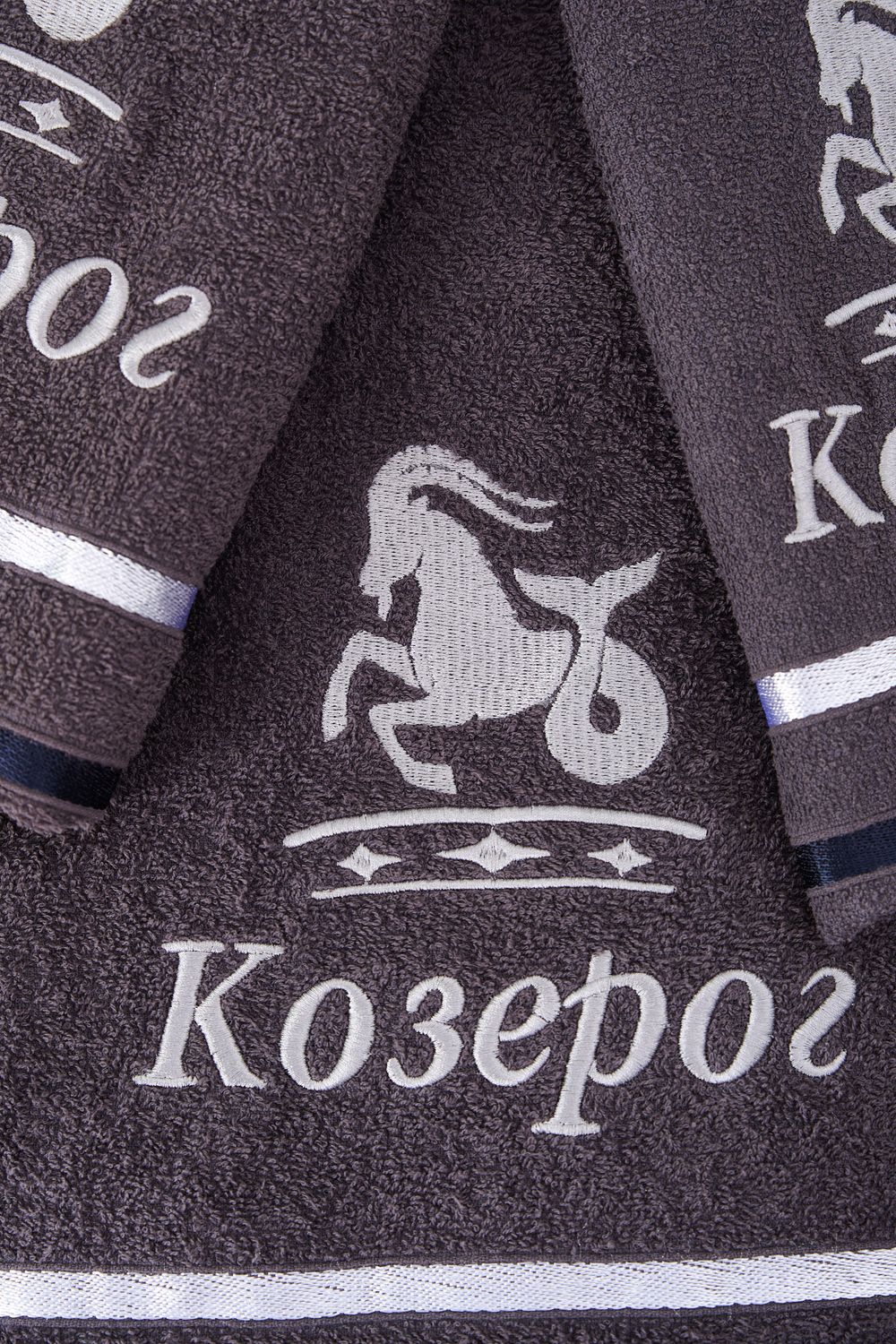 14418/10 Знаки зодиака полотенце махровое плотность 350гр - графит+козерог