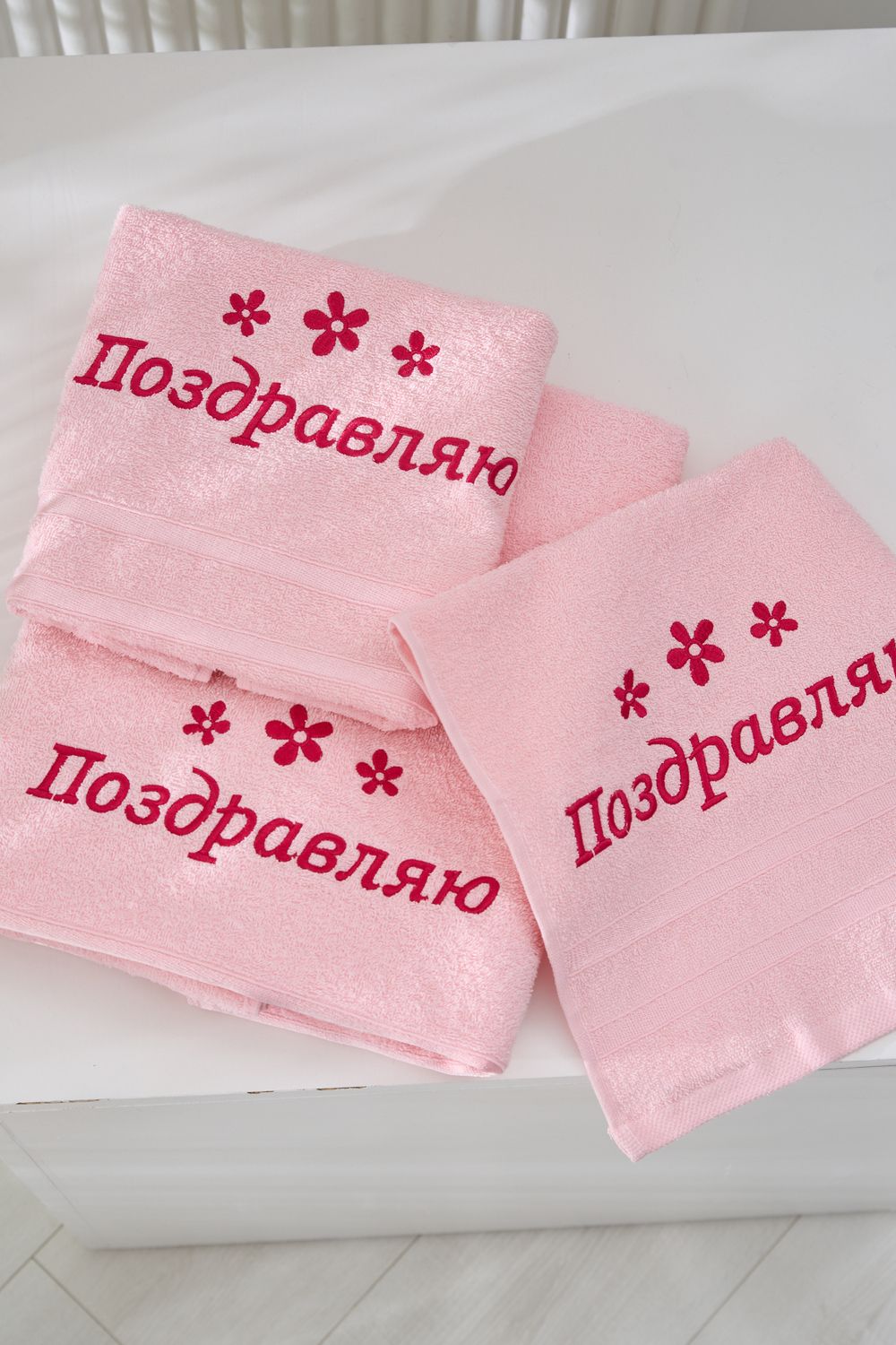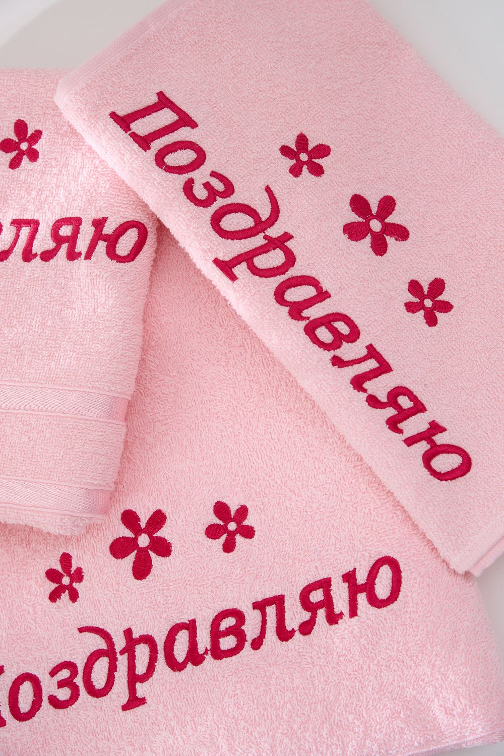 Подарочное махровое полотенце “Поздравляю” — это идеальный способ порадовать близких и выразить самые тёплые пожелания! Нежный розовый цвет, стильная вышивка цветов и яркая поздравительная надпись делают это полотенце не только практичным, но и оригинальным подарком для любого праздника. Мягкая хлопковая ткань отлично впитывает влагу, дарит комфорт и уют после водных процедур. Прекрасно подойдёт для подарка на день рождения, 8 Марта или любой другой приятный повод!