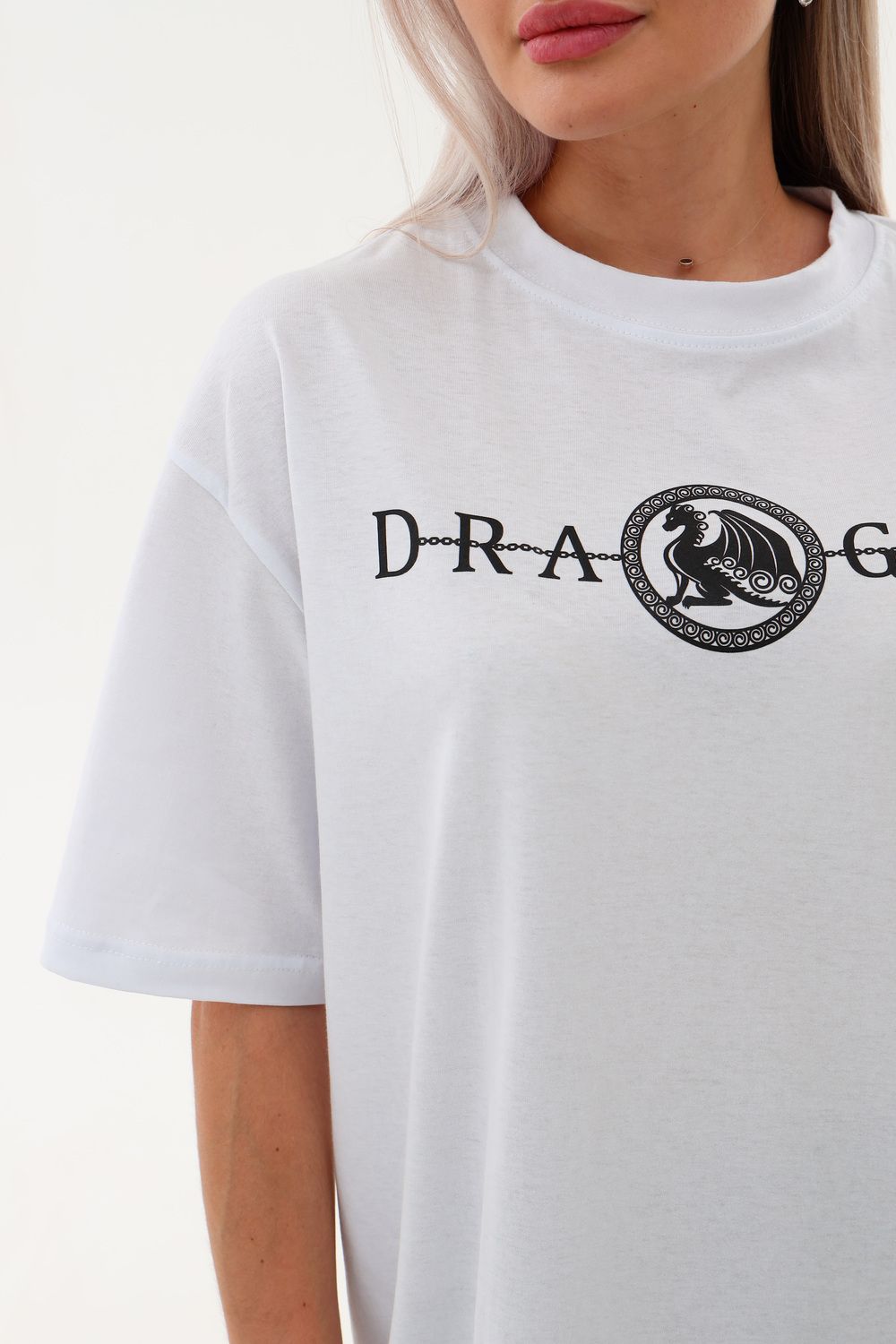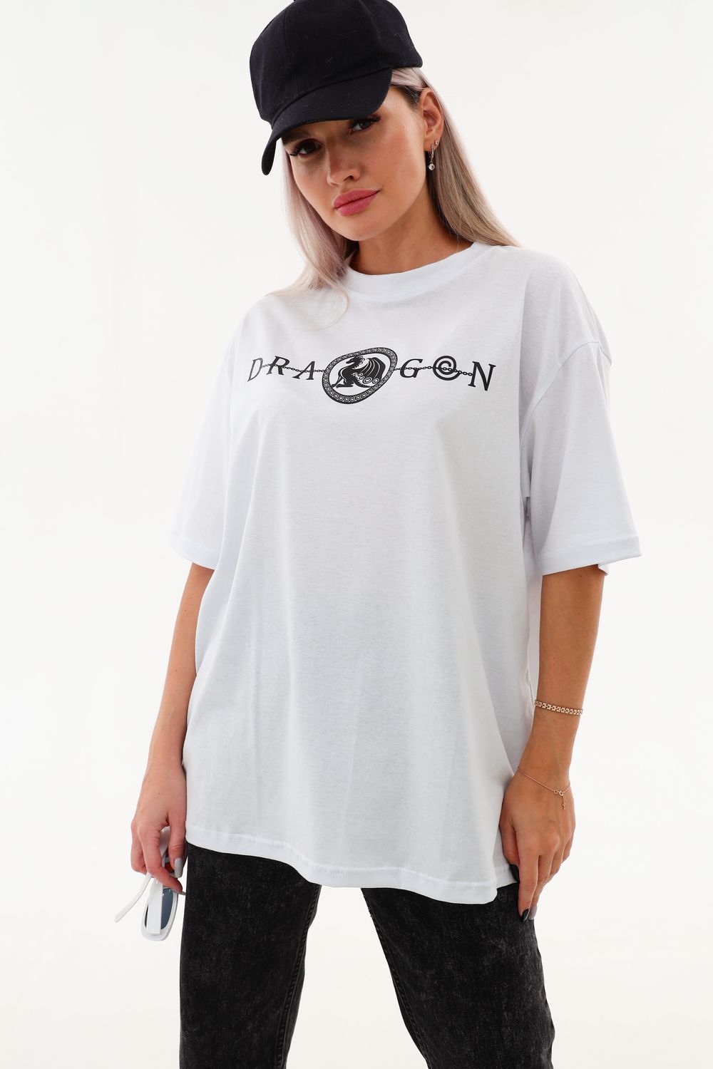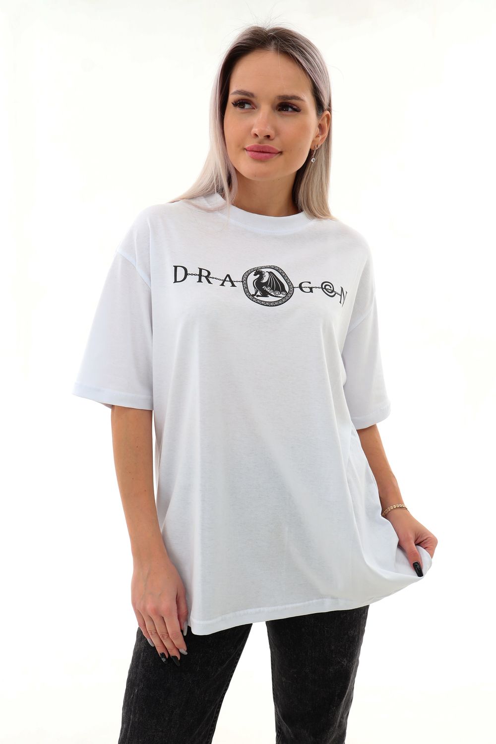 Футболка-оверсайз с широкими рукавами с изображением дракона-символа 2024 года. Продуманный крой позволяет свободно двигаться и обеспечивает комфорт в движении. Длина рукава указана от основания шеи. Футболка предназначена для повседневного использования и в качестве оригинального подарка.