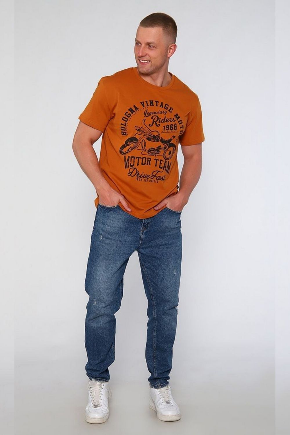 Классическая и удобная мужская футболка для тех, кто ценит комфорт, качество и дух свободы. Эта модель сочетает в себе базовый элемент гардероба и яркий акцент в стиле "рок" и "байк".