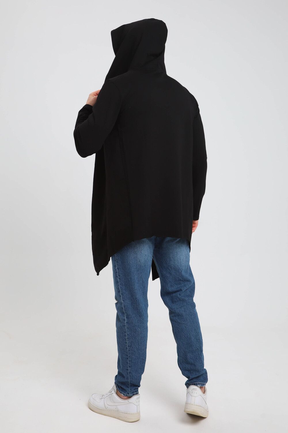 Модная современная мужская толстовка-мантия. Без застежки, с капюшоном, по бокам карманы. Асимметричный низ, передние полочки длиннее спинки