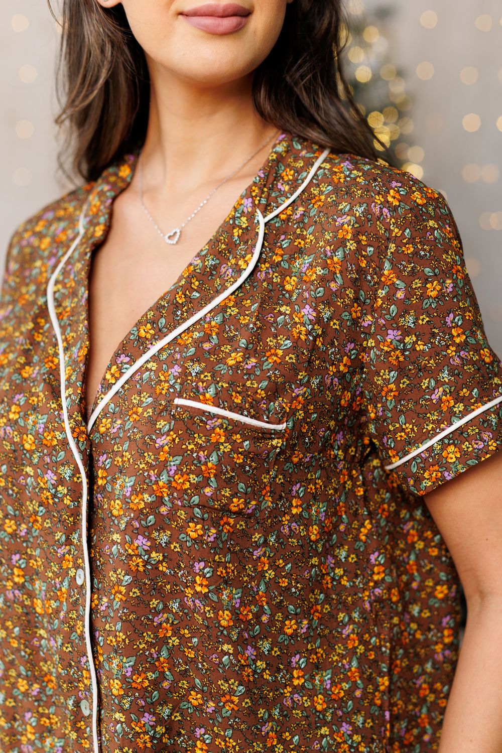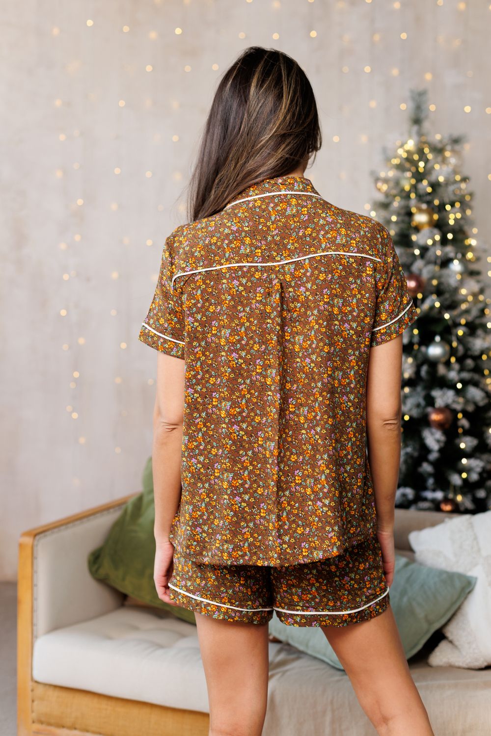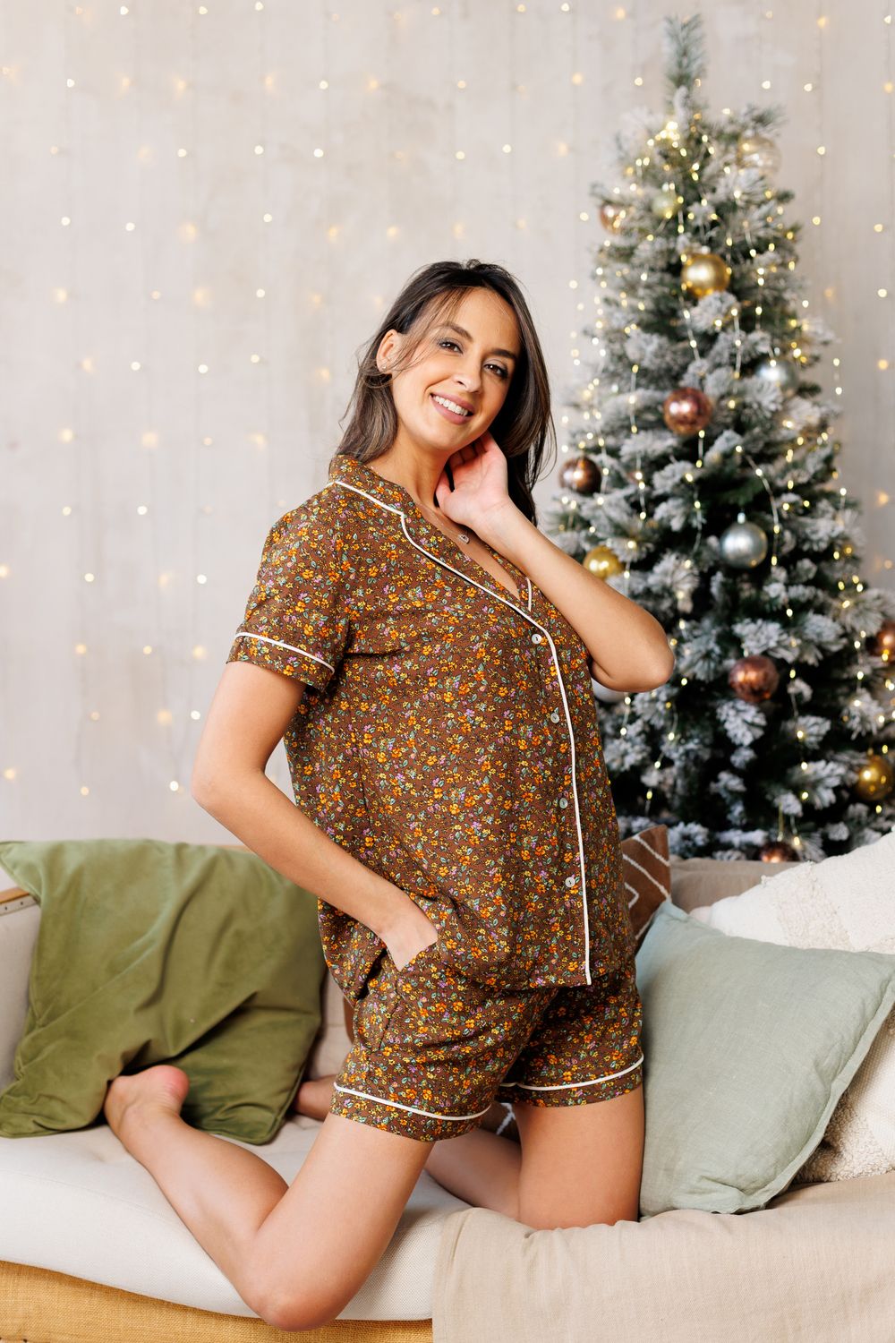 228 Пижама с рубашкой и шортами - коричневый