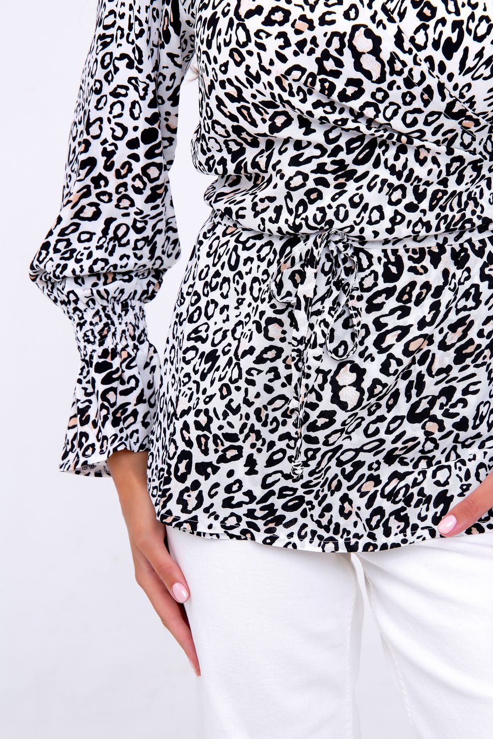 Абстрактный принт подчеркнет вашу женственность, а оригинальный вырез с запахом придаст соблазнительности! Кокетливо выполненные рукава добавят легкости, ведь именно этого больше всего хочется летом. Изысканная блузка в романтическом стиле легко сочетается с прямой юбкой или брюками-дудочками.