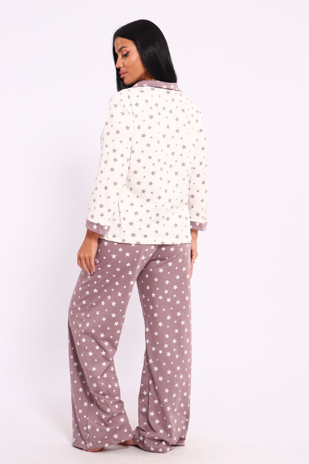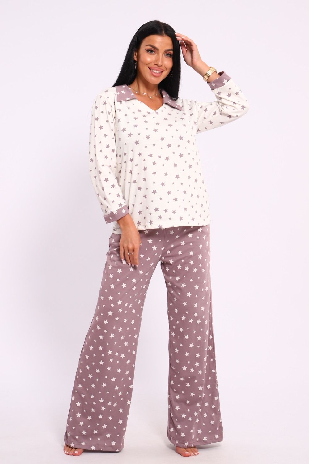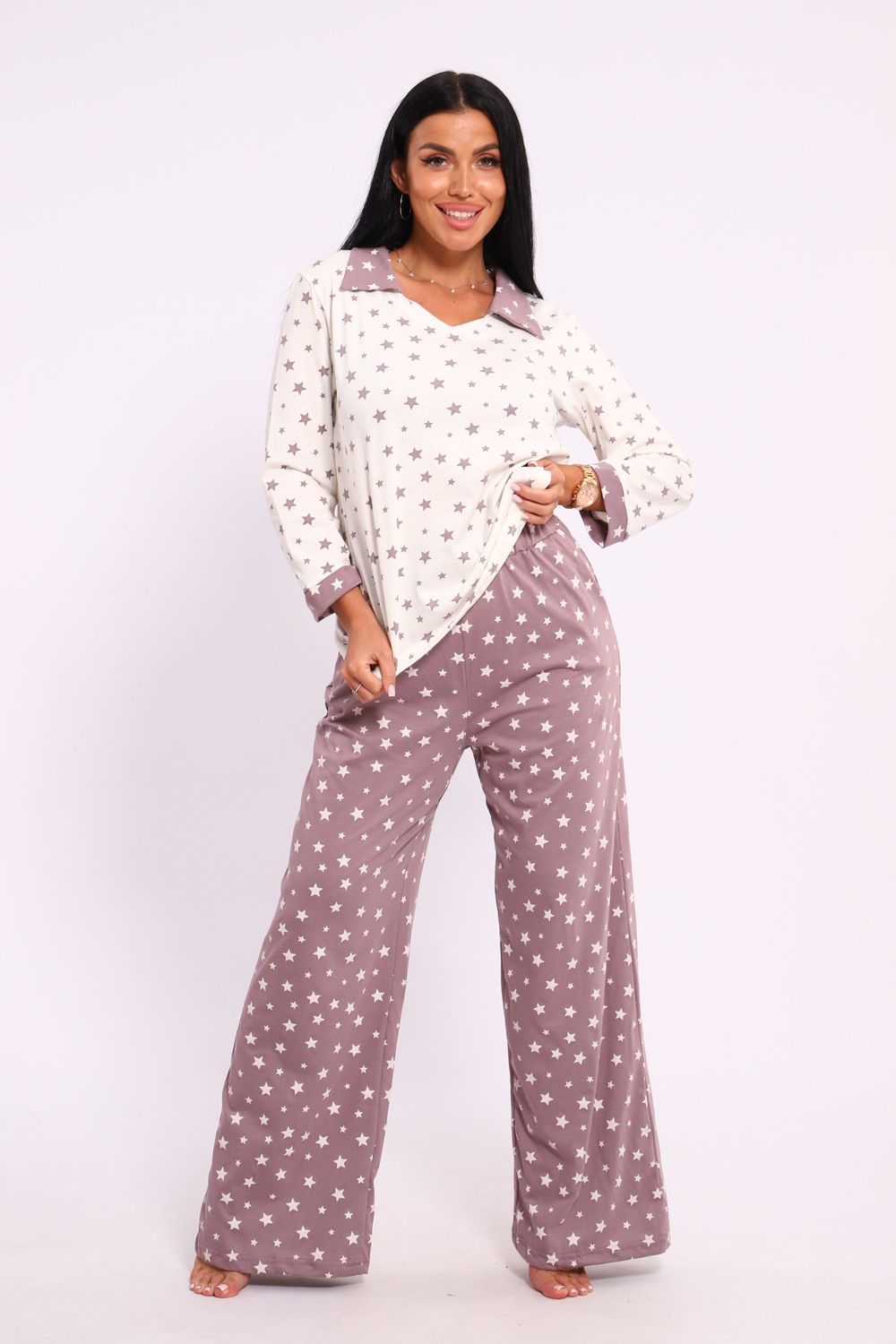 Красивый женский домашний костюм — состоит из футболки и брюк палаццо на резинке. Этот стильный домашний комплект выполнен из мягкого и приятного на ощупь трикотажного материала из 100% хлопка. Эта женская пижама с кюлотами сочетает женственность и удобство. Отличный выбор для повседневного использования дома и сна. Штаны клеш с карманами придают образу особый шарм и делают костюм популярным среди молодежи и подростков. Благодаря широким брюкам трубам, пижама выглядит модно и трендово. Этот ночной комплект предлагается в нескольких размерах, включая большие размеры, и подходит стройным девушкам и женщинам, а также полным дамам plus size, для высокого и невысокого роста. Благодаря свободному крою идеально подойдет для беременных женщин, давая им свободу движения и комфорт в домашних условиях. Хлопковая пижама изготовлена из качественного трикотажа (кулирка), который приятен к телу и обеспечивает комфорт во время ночного отдыха. Этот удобный стильный комплект станет отличным выбором для роддома, повседневного отдыха дома или даже для новогодней фотосессии или пижамной вечеринки.