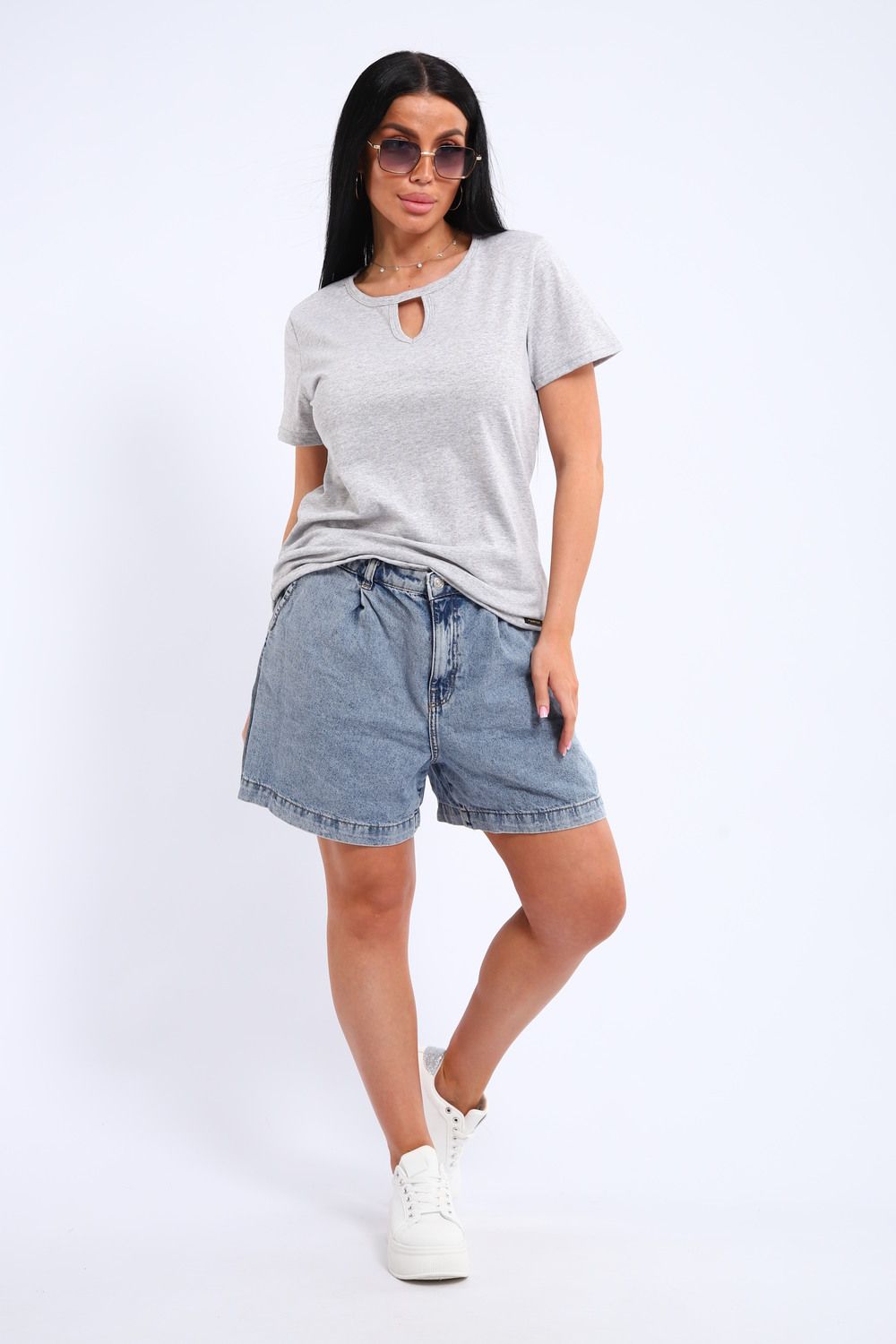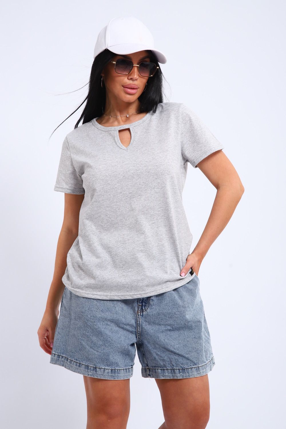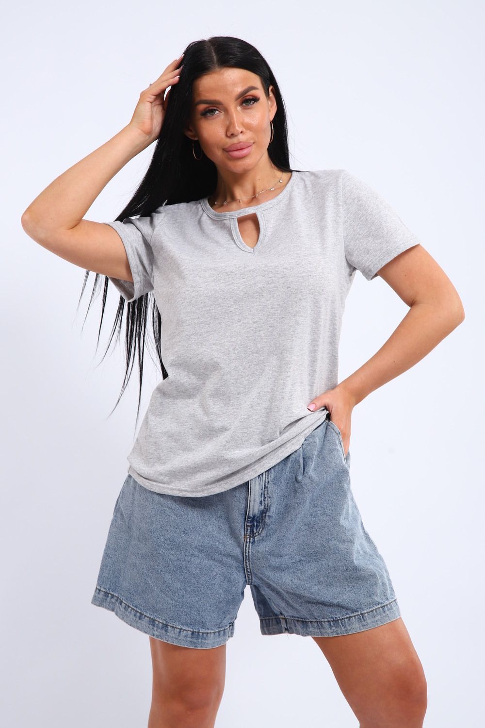Легкая и удобная женская хлопковая футболка. Округлая горловина, небольшой декоративный вырез.