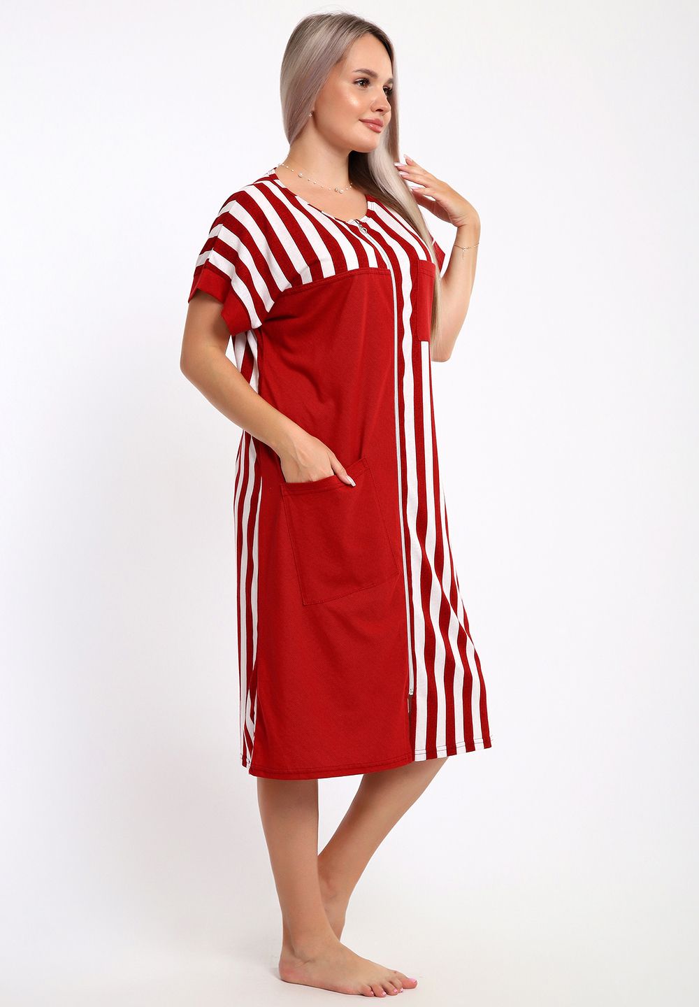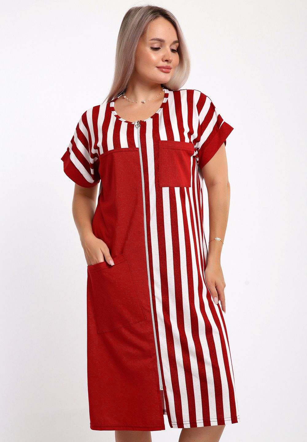 Женский халат на молнии из набивной кулирки в стильной джинсовой полоске