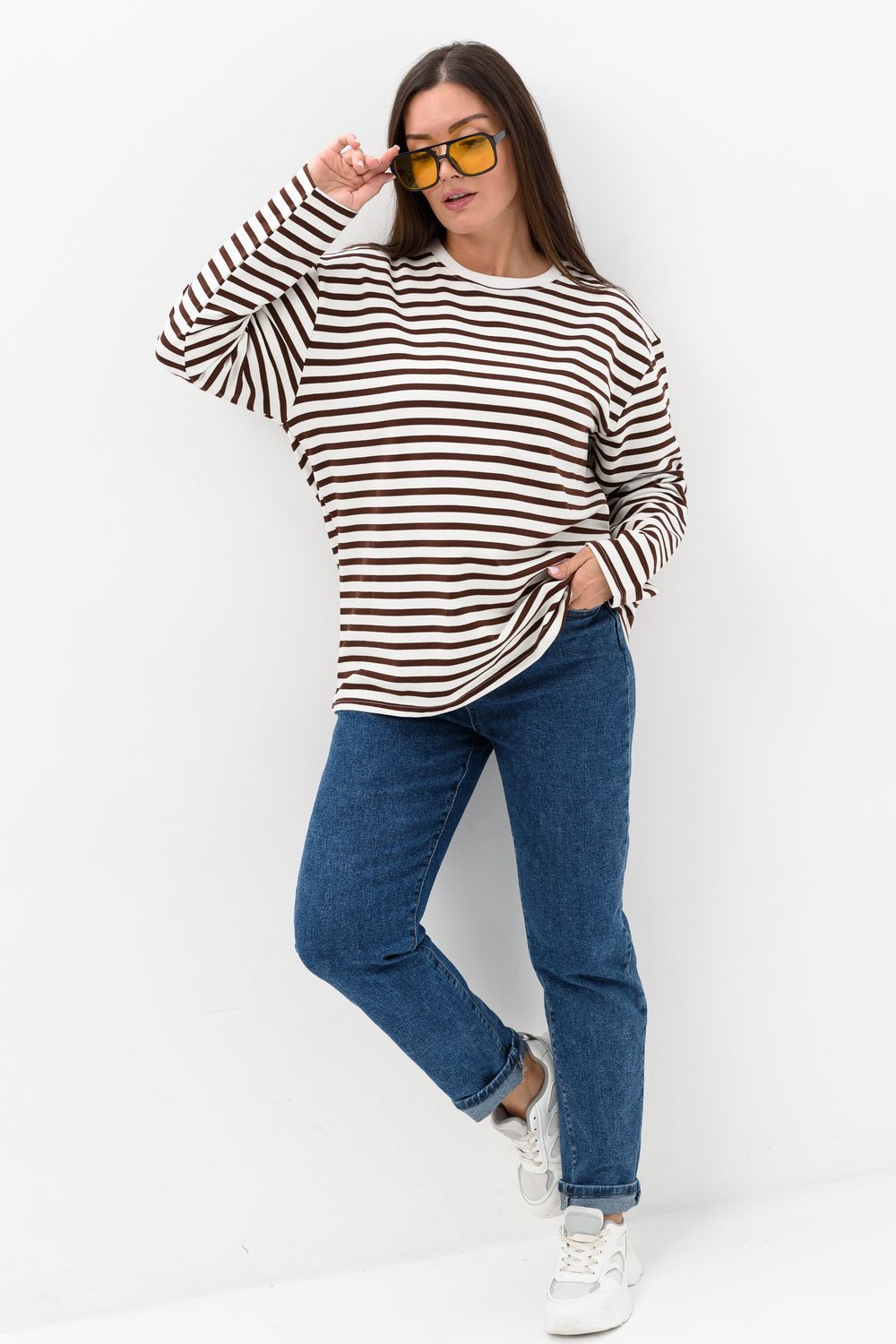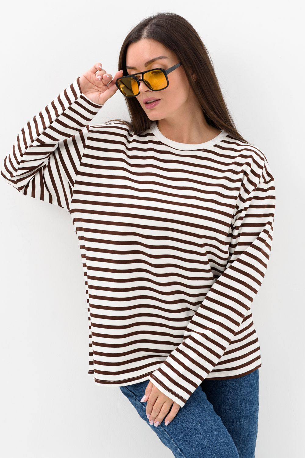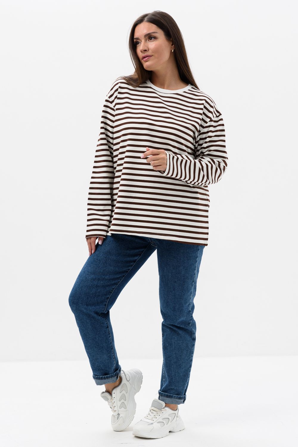 Свитшот - это модный элемент вашего гардероба, который сочетает в себе уют и стиль - идеально подходит для любителей комфорта. Изделие с длинным рукавом и округлой горловиной, выполнен из ткани в полоску, что делает его трендом сезона. Благодаря достаточно свободному крою, свитшот обеспечивает свободу движений - хороший выбор для повседневной носки.