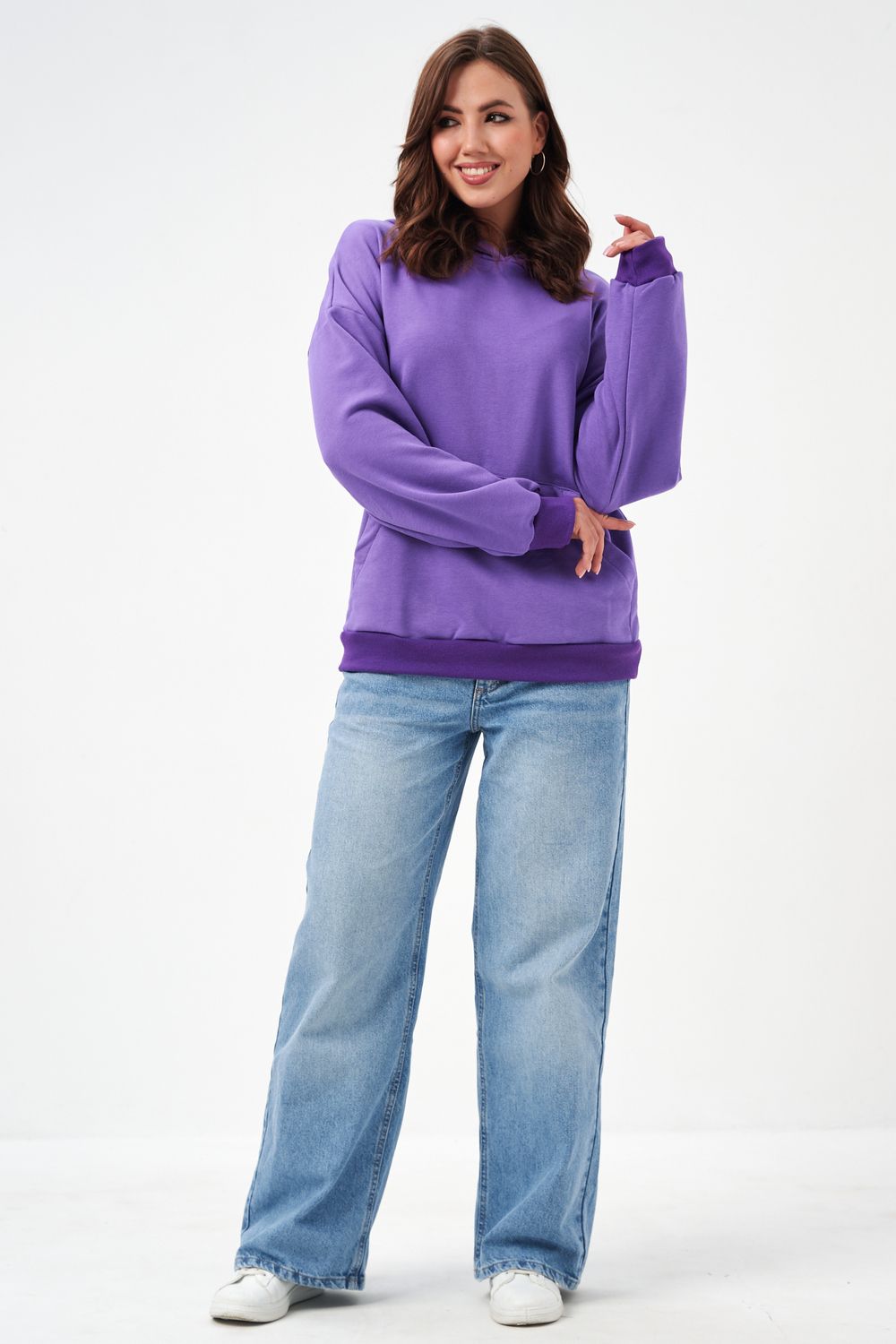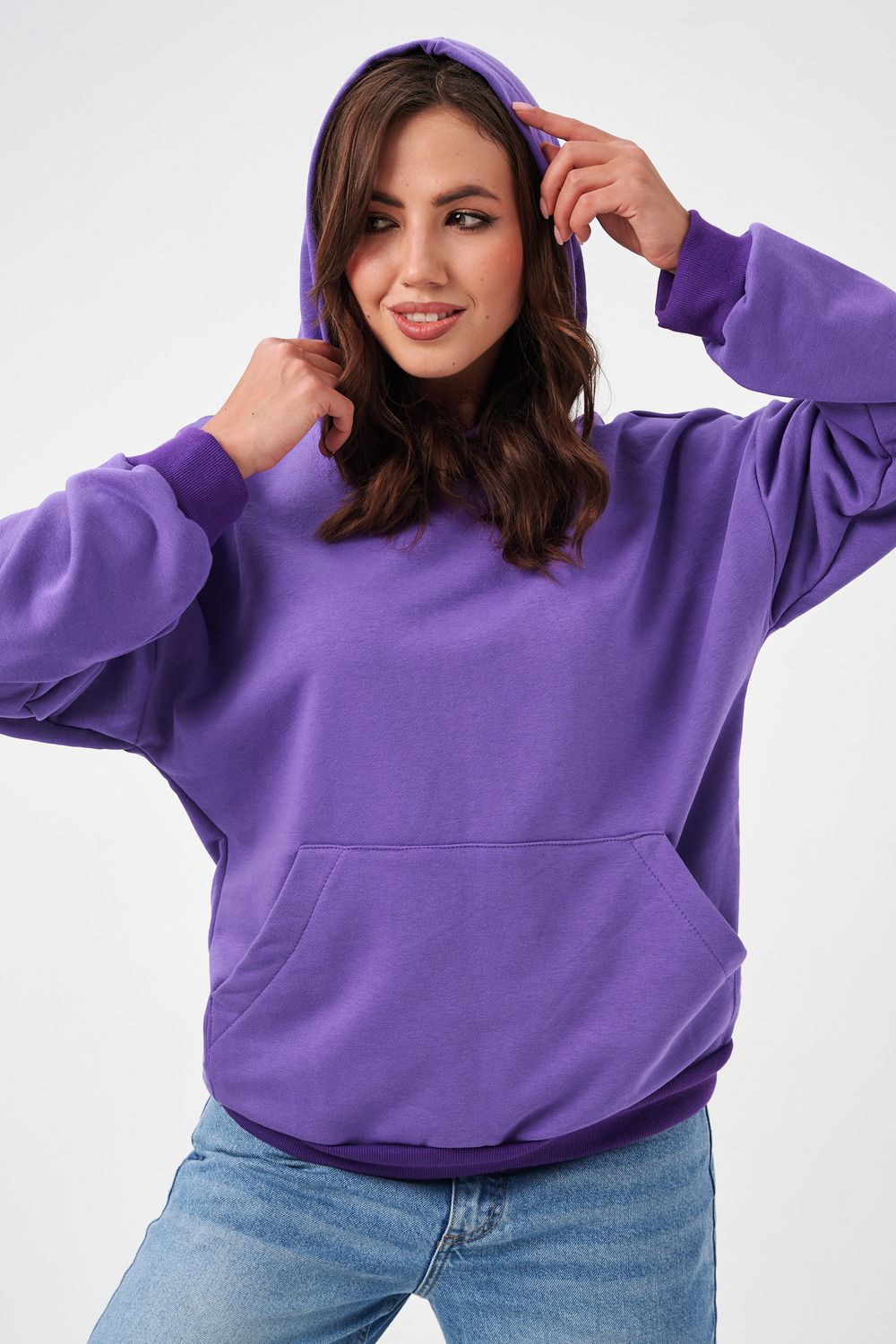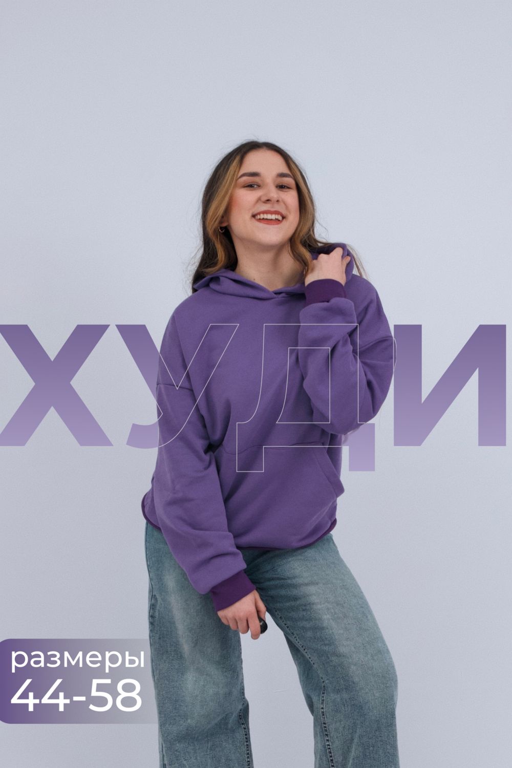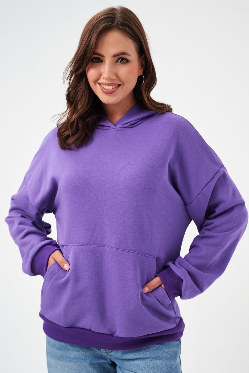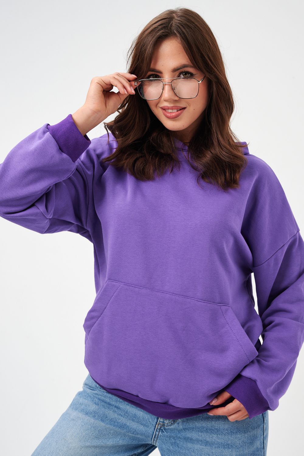 свободная толстовка с спущенной линией плеча, и накладным карманом-кенгуру. Изготовлена из хлопкового трикотажа футера 2-х нитки без начёса.