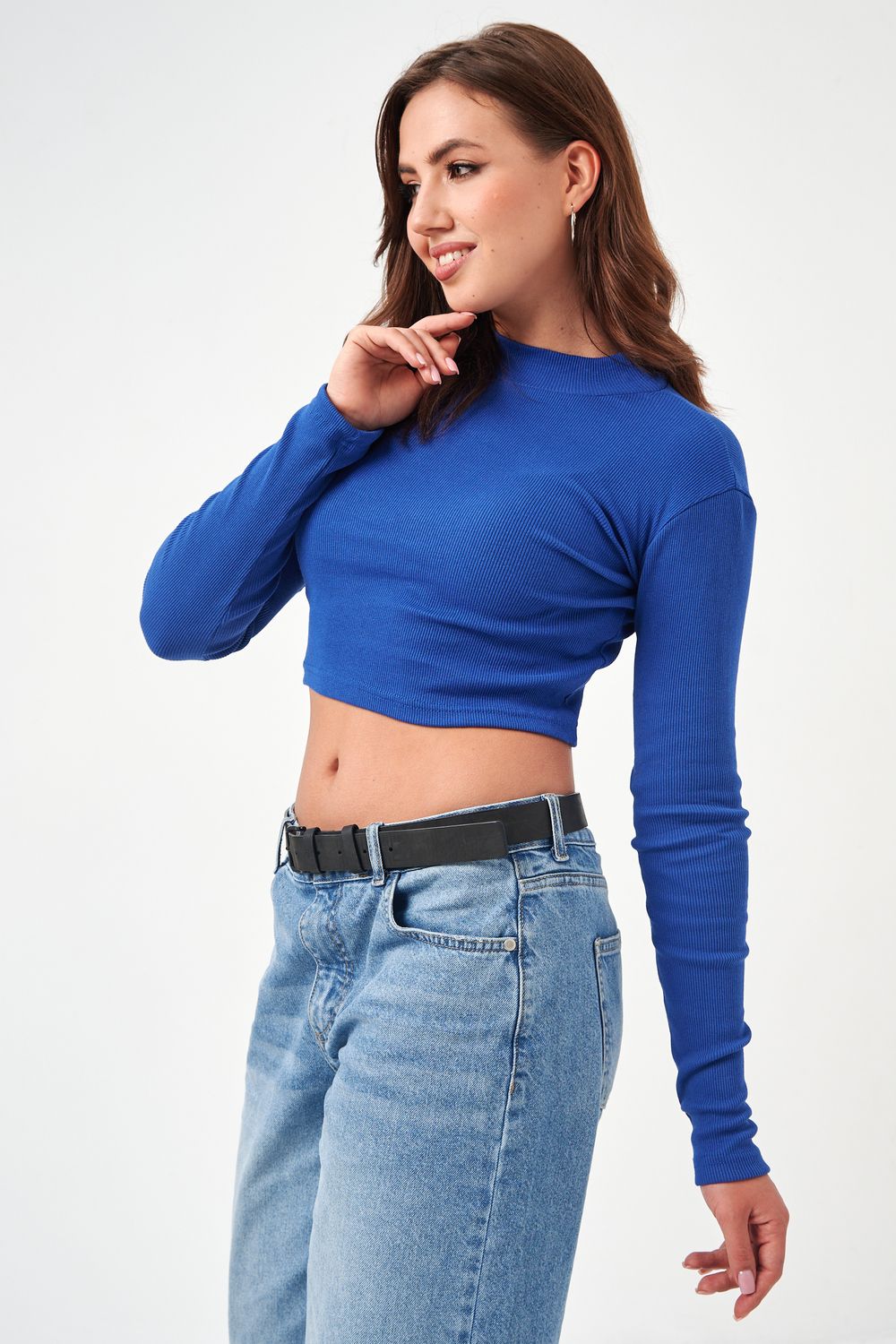 52719 водолазка женская укороченная - голубой
