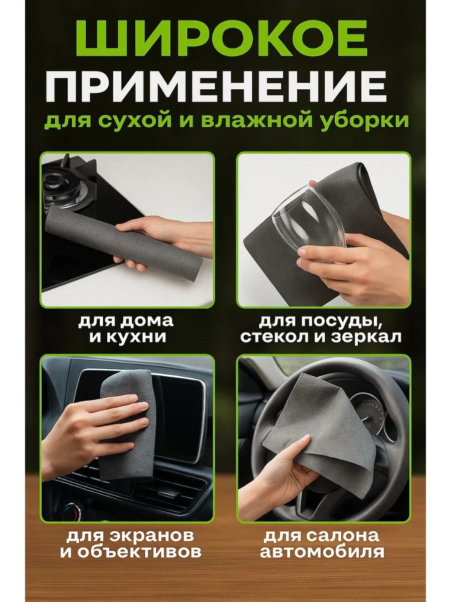 Откройте для себя секрет безупречной чистоты с умными корейскими тряпками из микрофибры — настоящим помощником в домашнем хозяйстве и уходе за автомобилем. Эти корейские салфетки объединили в себе передовые технологии и практичный подход к уборке. Благодаря особой структуре волокна чудо тряпка не оставляет разводов, не царапает поверхности и при этом прекрасно впитывает влагу. Она идеально подходит как для сухой, так и для влажной уборки, включая обработку стекол, зеркал, мебели и бытовой техники. Эти корейские салфетки для уборки особенно хороши в уходе за автомобилем. Тонкая и мягкая микрофибра позволяет деликатно очищать как кузов, так и салон, не повреждая лакокрасочное покрытие. Именно поэтому многие автолюбители выбирают чудо тряпку для автомобиля из Кореи. Универсальность набора делает его настоящей находкой для тех, кто ценит порядок и комфорт. Они быстро сохнут, долго служат и не теряют своих качеств даже после многократных стирок. Ее можно использовать на всех типах поверхностей: от стекол до нержавеющей стали, от плитки до текстиля. А стильный и компактный дизайн позволяет хранить их даже в самых маленьких шкафчиках.