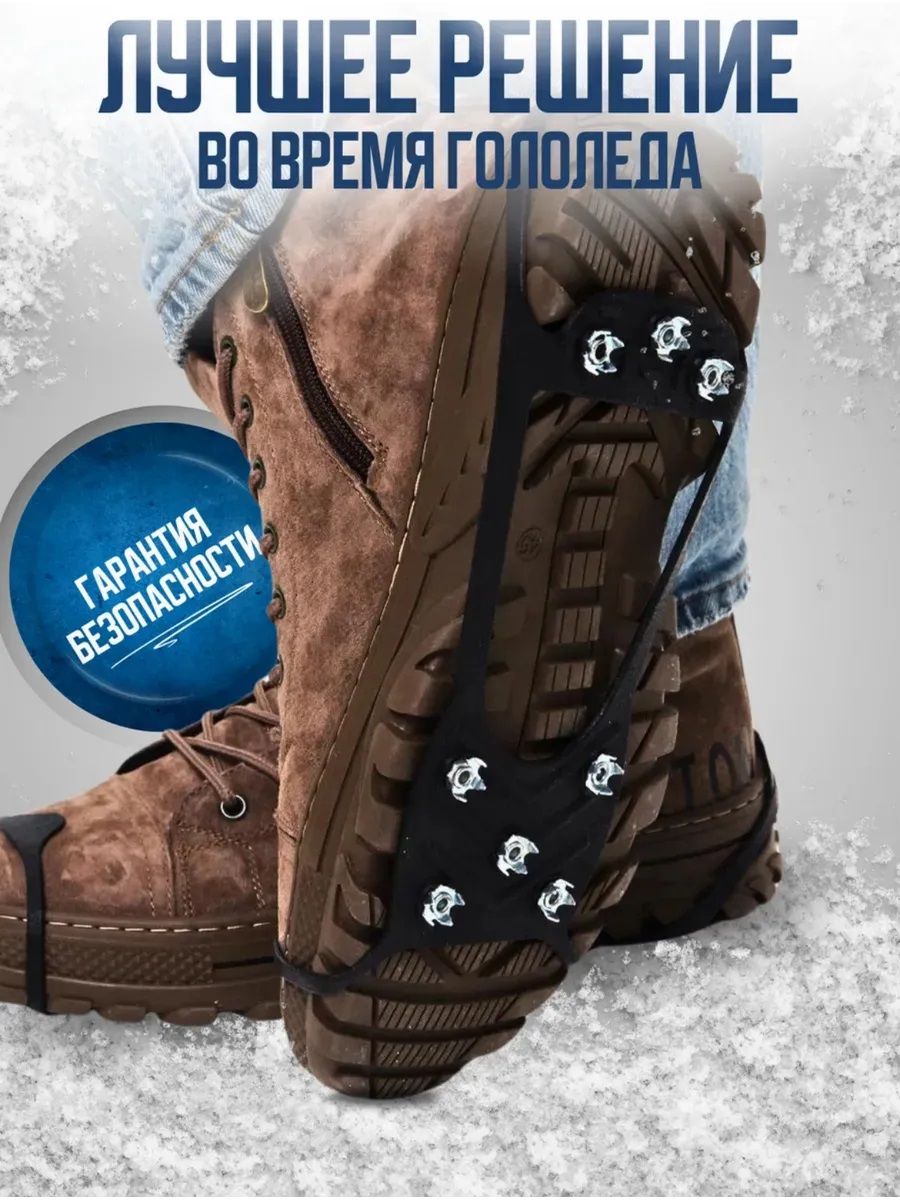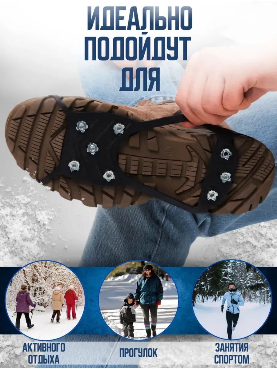 Ледоступы на обувь универсальные с 8 шипами представляют собой идеальное решение для тех, кто ищет надежную защиту от скольжения на льду и снегу. Эти ледоступы спроектированы с учетом потребностей широкой аудитории, включая спортсменов, любителей активного отдыха и просто тех, кто нуждается в дополнительной поддержке при ходьбе по скользким поверхностям. Каждый набор содержит 8 шипов, которые обеспечивают отличное сцепление с поверхностью, уменьшая риск падения. Универсальный дизайн позволяет использовать ледоступы с различными видами обуви, делая их универсальным выбором для всей семьи. Легкость в установке и снятии делает их удобными в использовании, а прочная конструкция гарантирует долговечность и надежность. Выбирая ледоступы, вы получаете качественный и эффективный способ защиты от опасностей зимней погоды, позволяющий вам наслаждаться активными прогулками, спортом и повседневными делами без опасений за свою безопасность.Ледоступы с 8 стальными шипами звёздочками позволят заниматься активным отдыхом и безопасно совершать прогулки зимой. Предназначены для безопасной ходьбы в гололед. Ледоходы компактны и универсальны - подойдут на женскую и мужскую обувь. В гололед или после ледяного дождя станут для вас настоящим спасением, помогут не только комфортно передвигаться по скользким тротуарам, но защитят от падений и травм. Рекомендации к использованию: Надевать противоскользящие накладки удобнее двумя руками, когда обувь уже на ноге, а не в руках. Удобней надевать в положении сидя. Тяните смелее, резина хорошая и не порвется. В модели со стальными шипами, даже с антикоррозийной обработкой, после носки влагу необходимо стряхнуть.