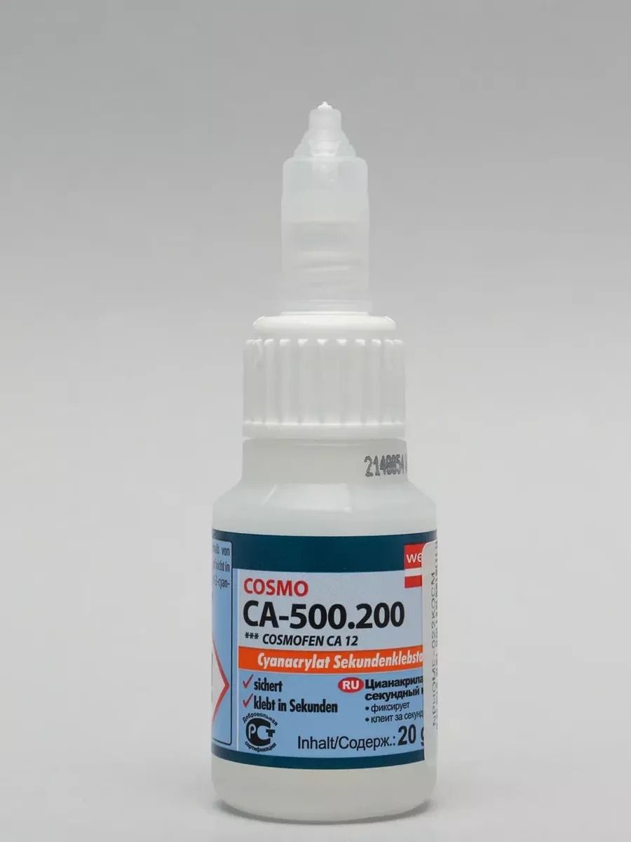 COSMOFEN CA-500.200 Однокомпонентный, прозрачный, универсальный, быстросохнущий цианакрилатный клей. Применяется для склеивания кожаных, стеклянных, резиновых, металлических и керамических поверхностей. Время схватывания моментального клея Космофен составляет всего 5 секунд. Cosmofen клей является водостойким, долговечным и устойчивым к температурам. Применяется как для бытовых, так и для производственных целей.Клей супер момент может заменить вам клей момент, клей для обуви. Клей COSMOFEN особопрочный, потому может склеить даже металл, дерево, или керамику. Клей, предназначен для надежного склеивания и ремонта изделий.Супер клей Космофен - оригинальный секундный супер быстрый клей, обладающий высокими прочностными характеристиками.