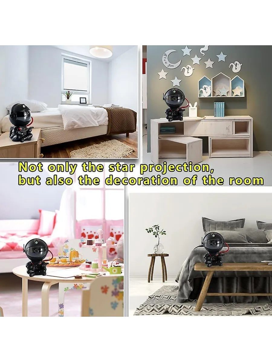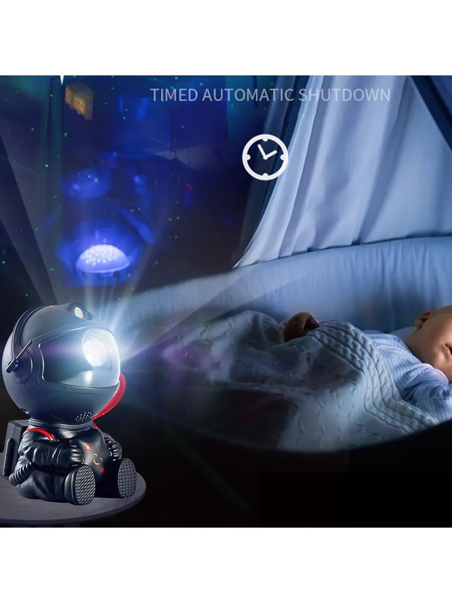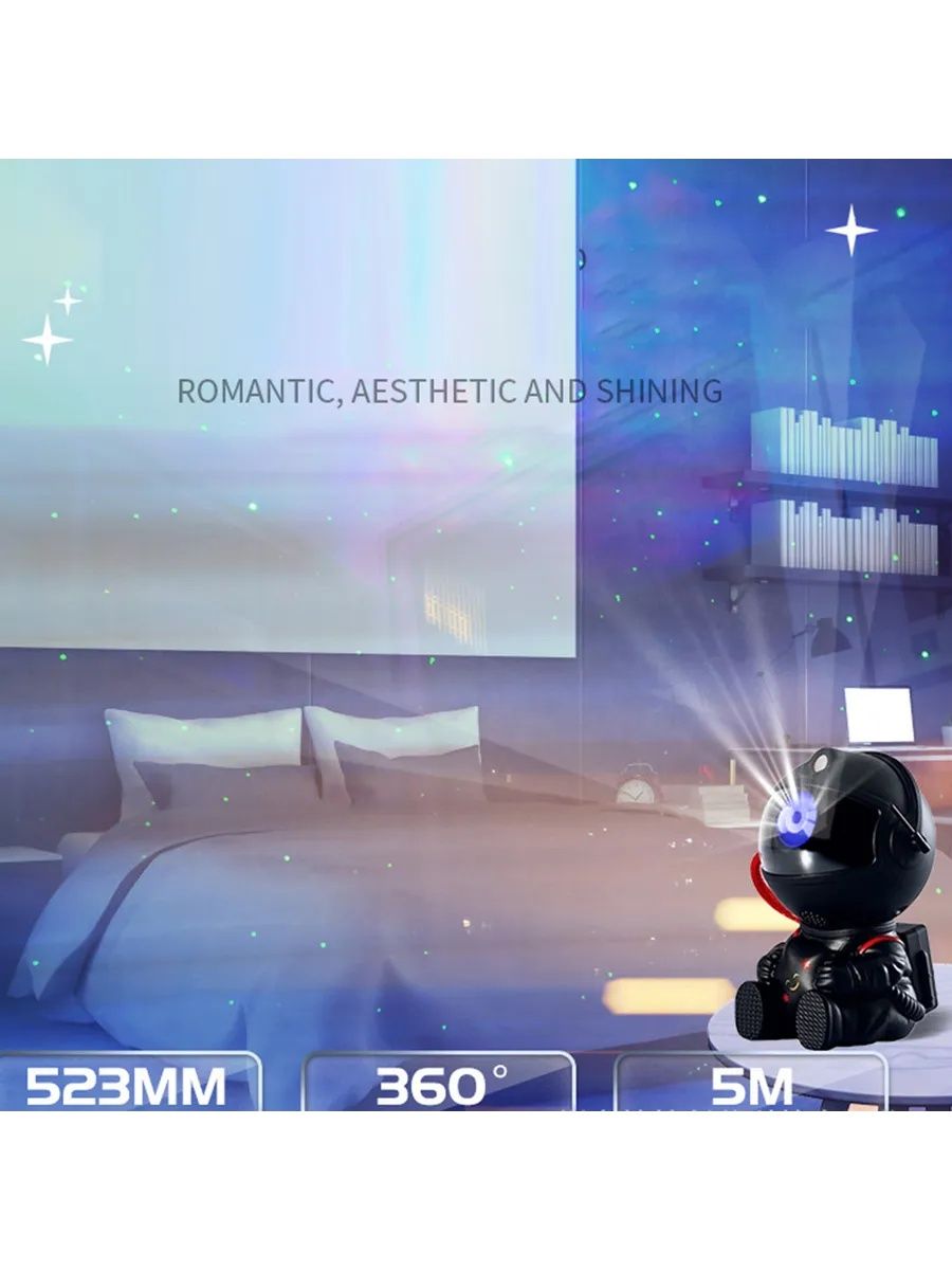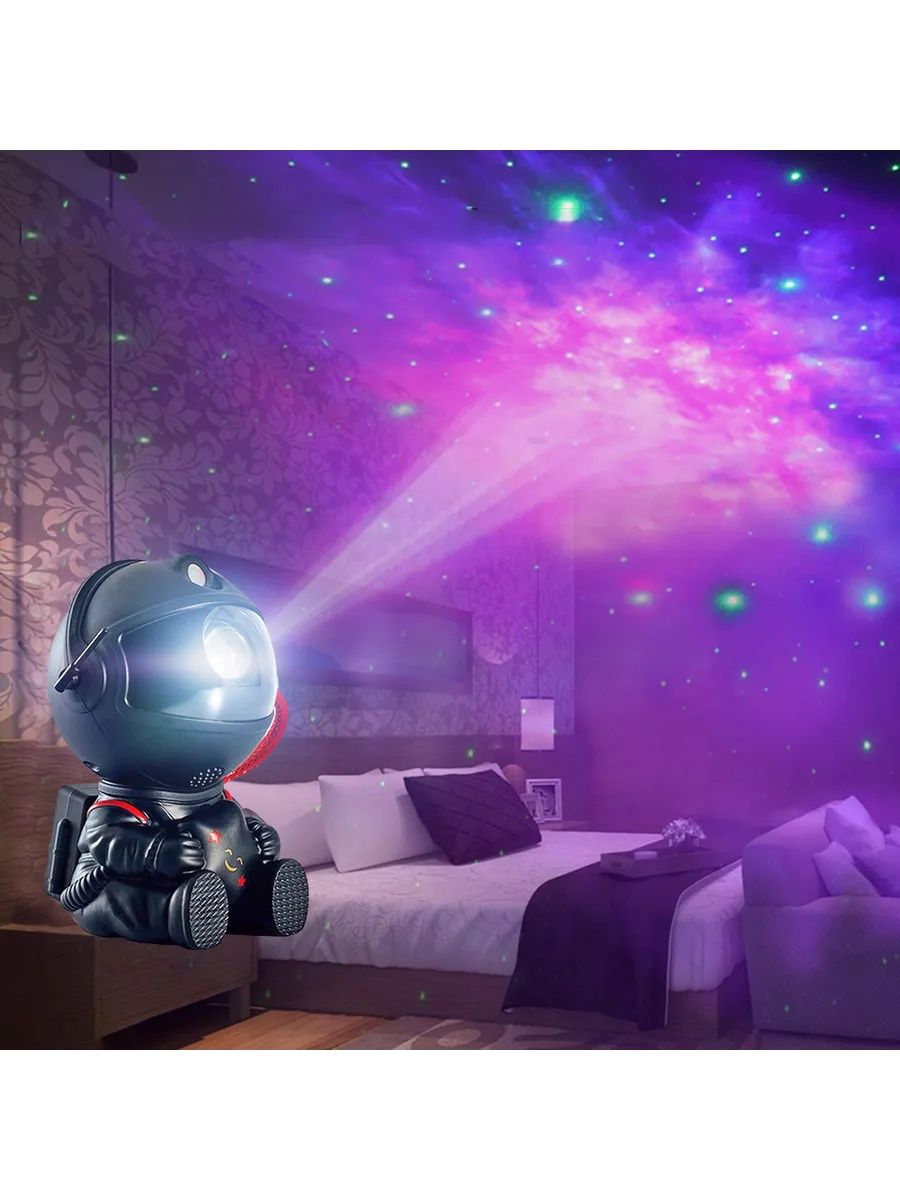 Создайте свою собственную вселенную с лазерным светодиодным проектором "Астронавт"! Этот многофункциональный ночник-планетарий подходит для детской комнаты, спальни или гостиной. Вы можете изменять цвет туманности и включать/выключать звезды, создавая неповторимую атмосферу. Пульт дистанционного управления позволяет легко изменять режимы, регулировать яркость и скорость проекции. Угол проекции настраивается наклоном головы астронавта. Ночник работает от USB-устройства (телефона, ноутбука, ПК).