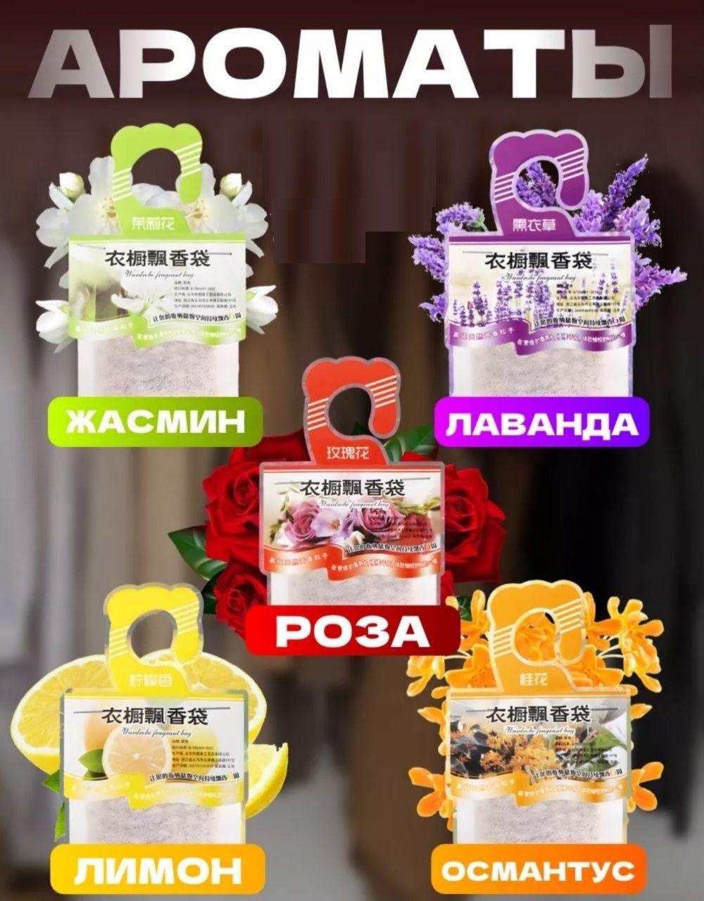 Ароматическое аромасаше для белья и шкафа 10шт — идеальное решение для создания свежести и уюта в вашем доме. Ароматизатор для дома с натуральным составом станет стильным дополнением вашего гардероба, постельного белья или ящиков для хранения вещей. Парфюм для белья наполнен сушеными компонентами с приятной отдушкой, которая обеспечивает долговременный аромат. Широкий выбор ароматов — лаванда, жасмин, роза, лимон, океан и лилия — позволит вам подобрать запах под любое настроение. Саше идеально подходит для гардеробных шкафов, ящиков с одеждой, обуви или даже автомобиля. Его универсальность делает этот продукт незаменимым аксессуаром для поддержания чистоты воздуха в помещении. Эти мини-освежители воздха также подойдут для ванной комнаты или туалета. Освежитель воздуха наполнит пространство нежными нотками парфюма, но и создаст ощущение гармонии и уюта. Натуральный состав обеспечивает экологичность продукта и безопасное использование как дома, так и в офисах. Ароматизатор белья имеет компактные размеры которые позволяют легко разместить мешочки даже в сумке или дорожном чемодане.