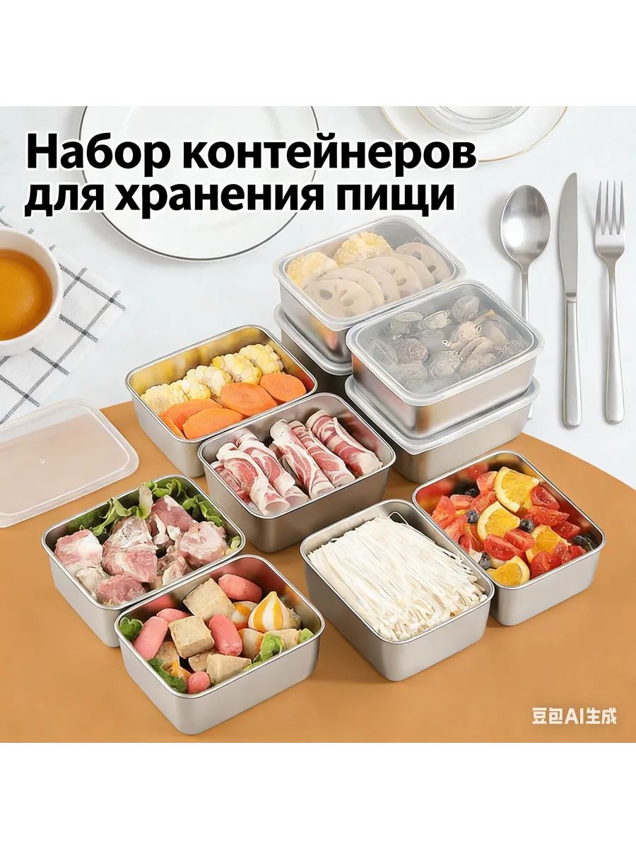 Пищевые контейнеры из нержавеющей стали с крышками в наборе 2 штуки. Прямоугольная форма, герметичные крышки в комплекте. Подходят для хранения продуктов в холодильнике и морозильной камере. Устойчивы к высоким температурам и для мытья в посудомоечной машине. Изготовлены из пищевой нержавеющей стали.