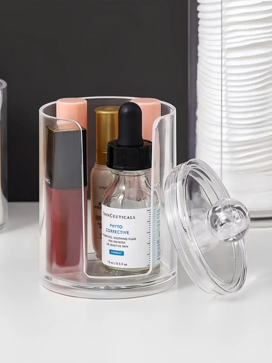 Органайзер для ватных дисков - практичный и удобный контейнер, который поможет организовать косметичку и ванную комнату. Этот пластиковый контейнер для дисков также может использоваться для хранения и других вещей, таких как ватные диски, резинки для волос и многое другое. Накопитель имеет компактный размер и удобную форму, которая позволяет разместить его на любой поверхности в душевой или ванной комнате, на туалетном столике в спальне или прихожей. Такой пластиковый прозрачный органайзер с крышкой - незаменимая вещь в вашем доме или квартире. Имеет простой, но стильный дизайн, который позволяет ему легко сочетаться с любым интерьером. Такая емкость также может использоваться как подставка для ватных дисков и спонжей, обеспечивая легкий доступ к ним. Диспенсер держатель для ватных дисков в форме стакана с прорезью сбоку позволяет легко и быстро извлекать необходимое количество дисков из банки. Это особенно удобно, когда нужно быстро удалить макияж с лица. Универсальный круглый бокс для расходников выполнен из высококачественного прочного и легкого пластика. Защитит косметические принадлежности от влаги и пыли. Станет отличным подарком для женщин, которые уделяют большое внимание своему внешнему виду и заботятся о своей косметике.