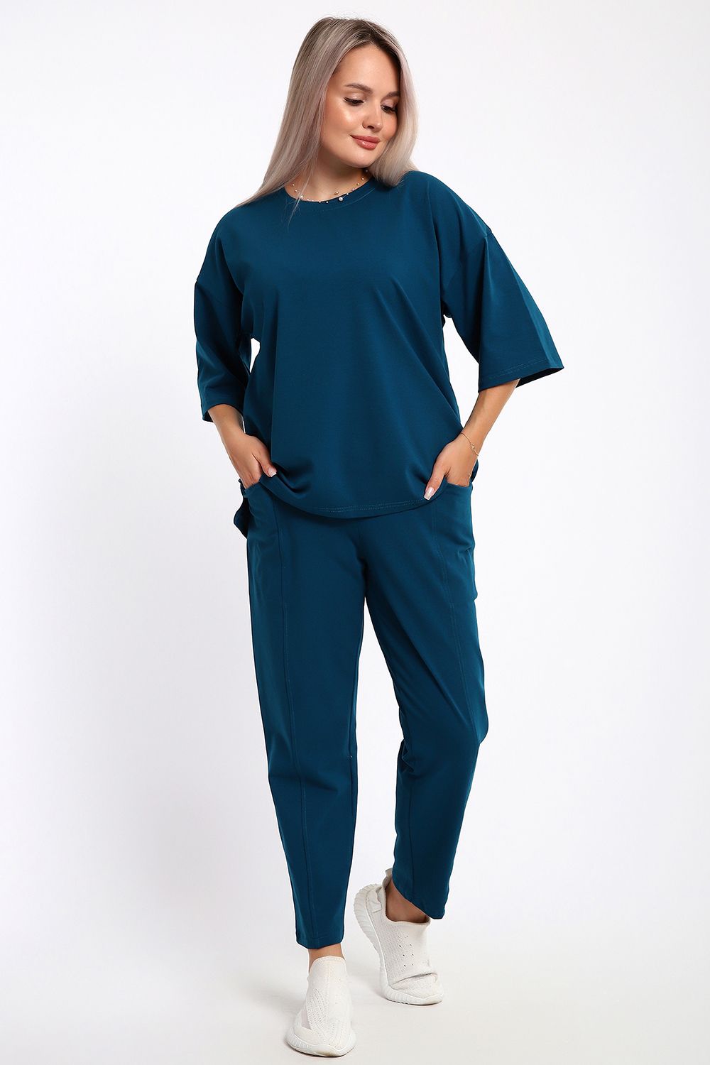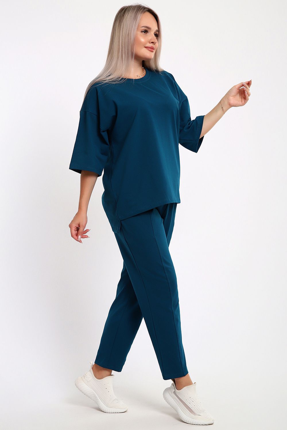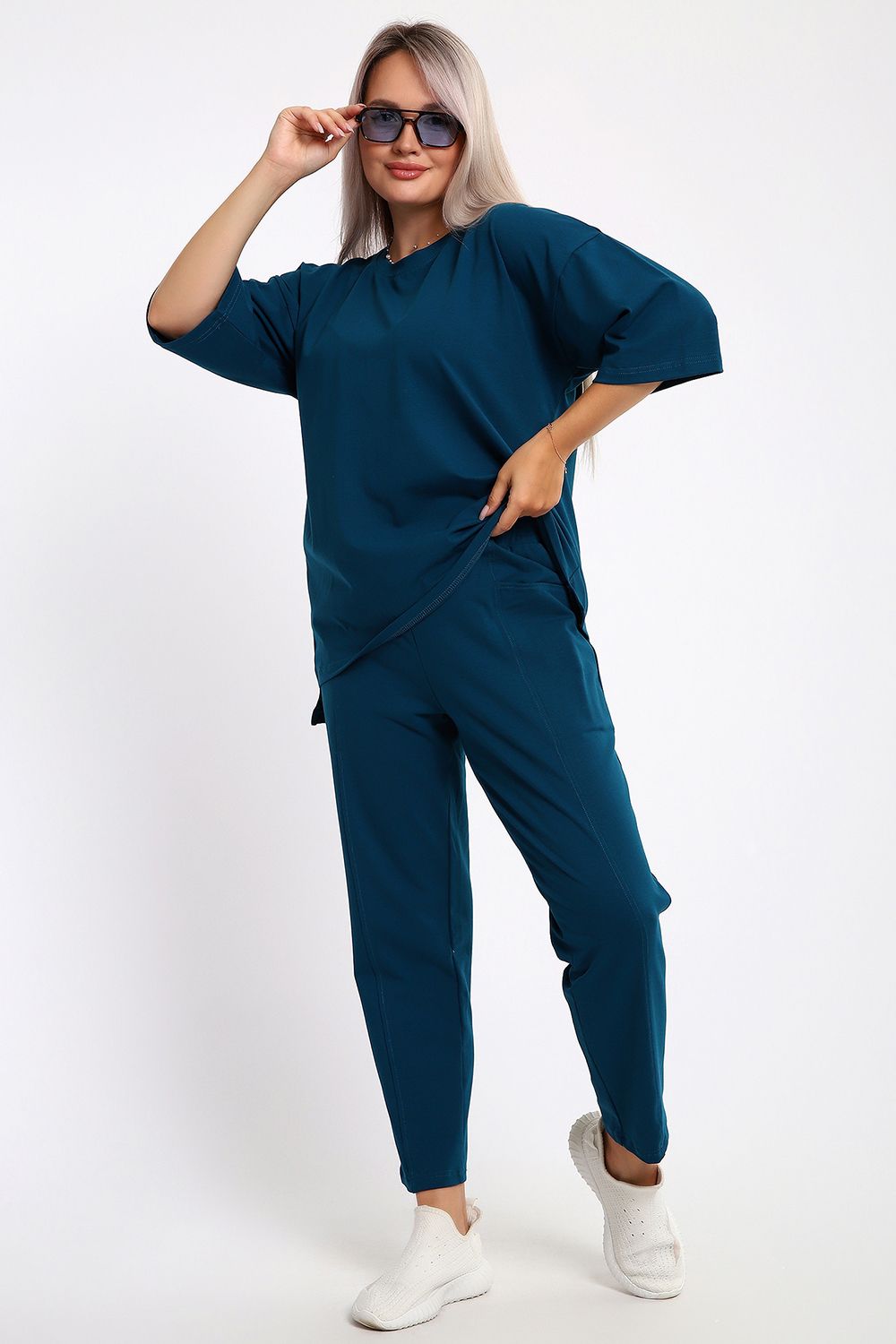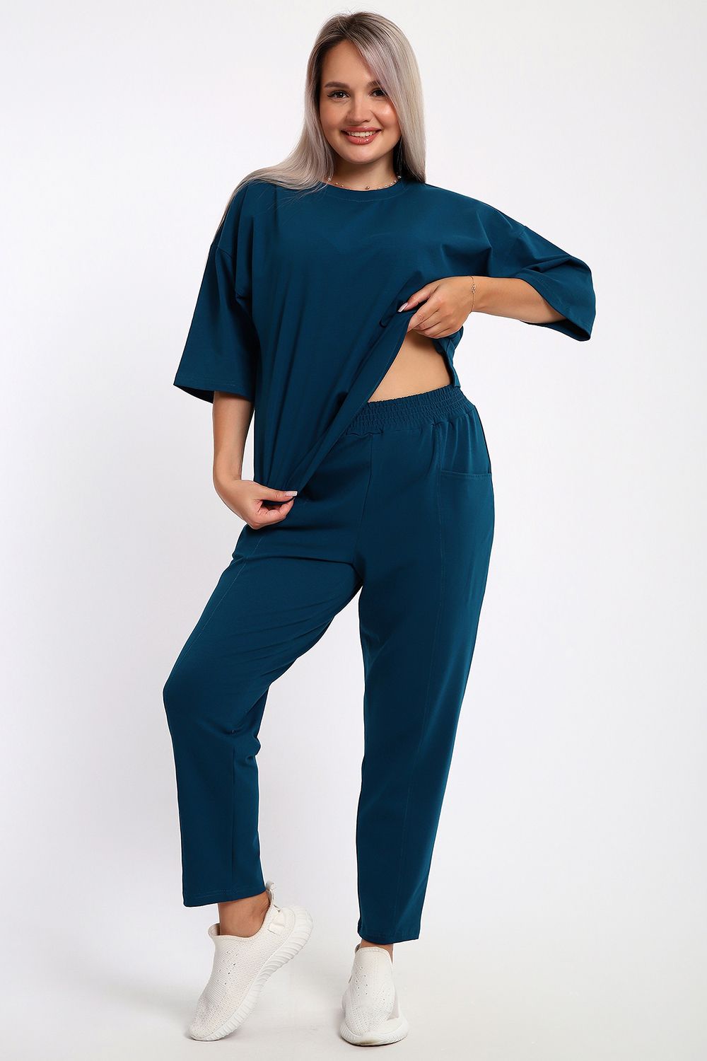 Этот женский костюм из легкого но плотного трикотажа — идеальный выбор для тех, кто ценит сочетание практичности и современного стиля. Модель выполнена из кулирки с лайкрой, что делает ее незаменимой для летних прогулок, отдыха или в качестве стильной домашней одежды.
