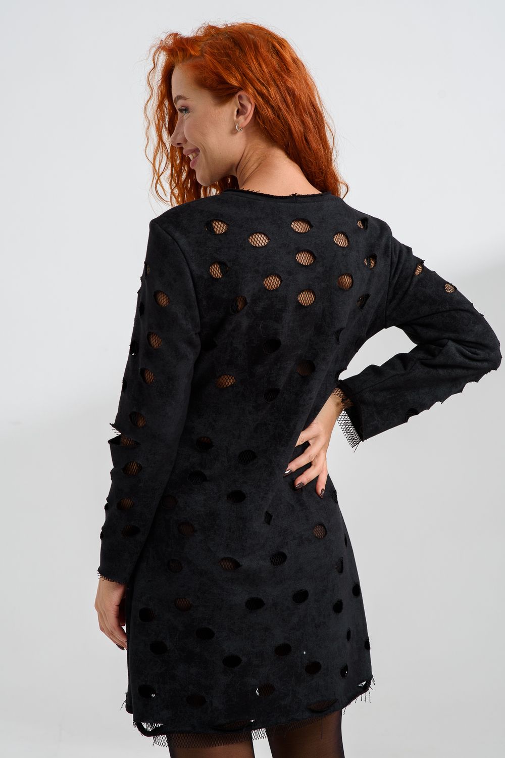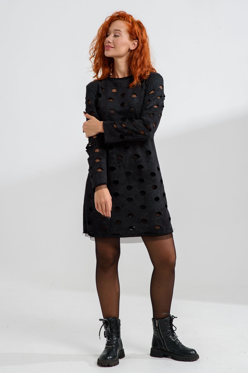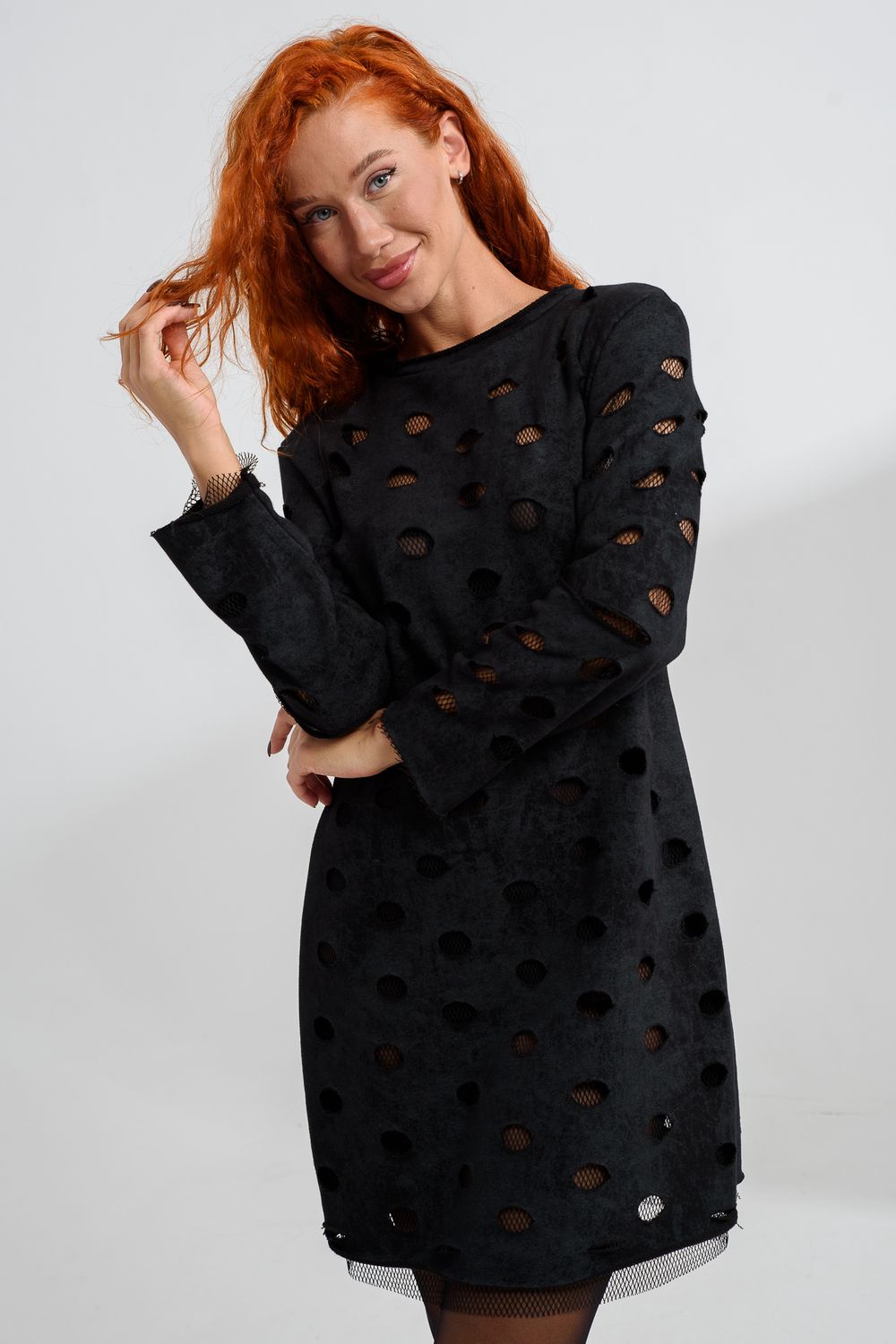 Платье молодежное. Полу прилегающего силуэта с длинными рукавами с подкладкой из сетки.