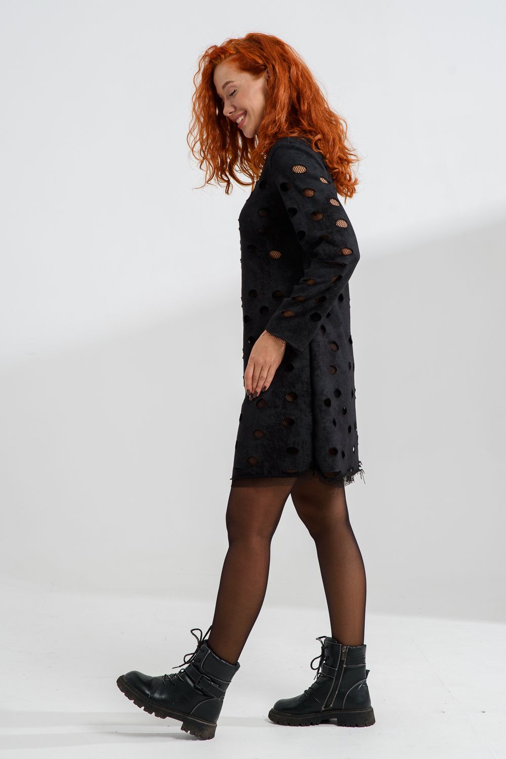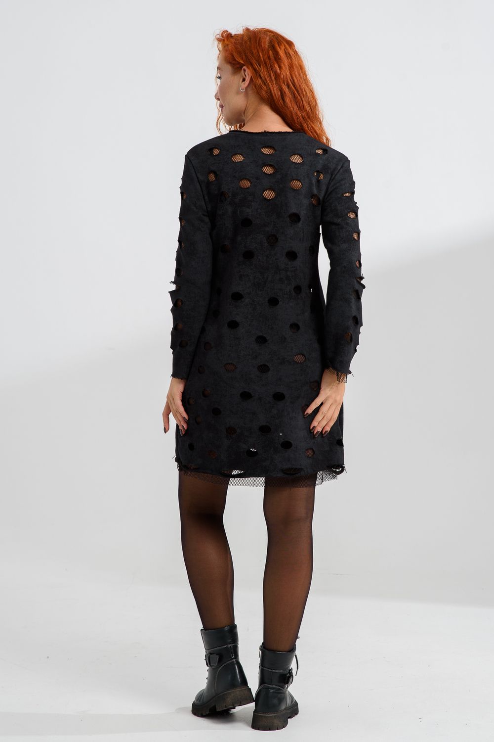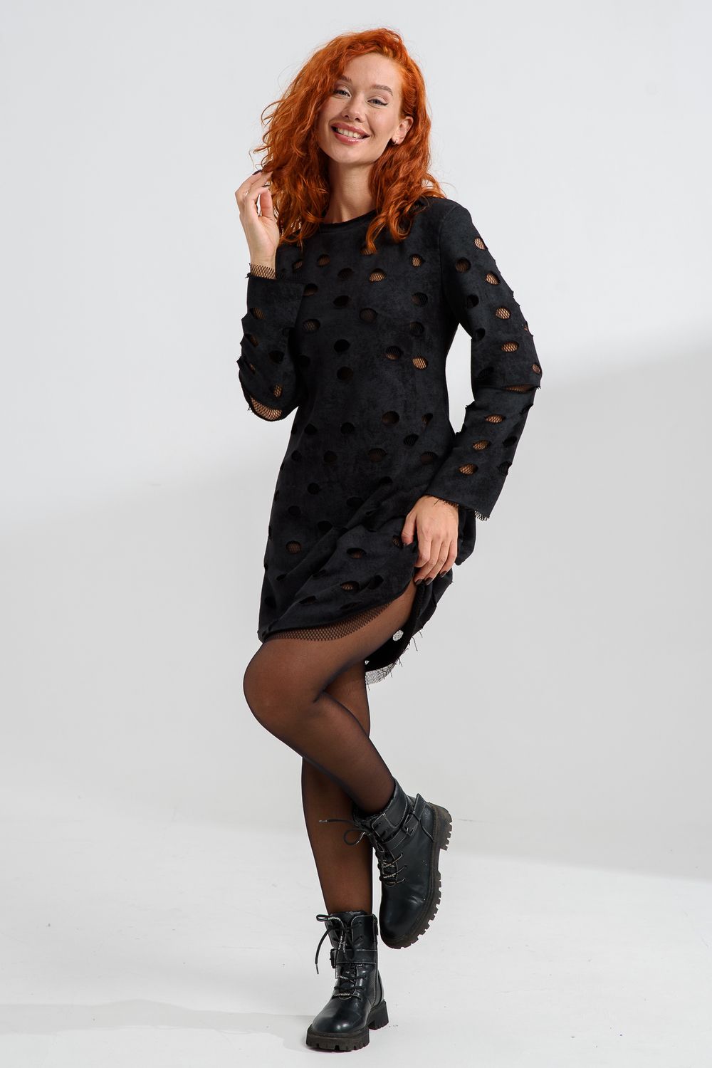 Платье молодежное. Полу прилегающего силуэта с длинными рукавами с подкладкой из сетки.