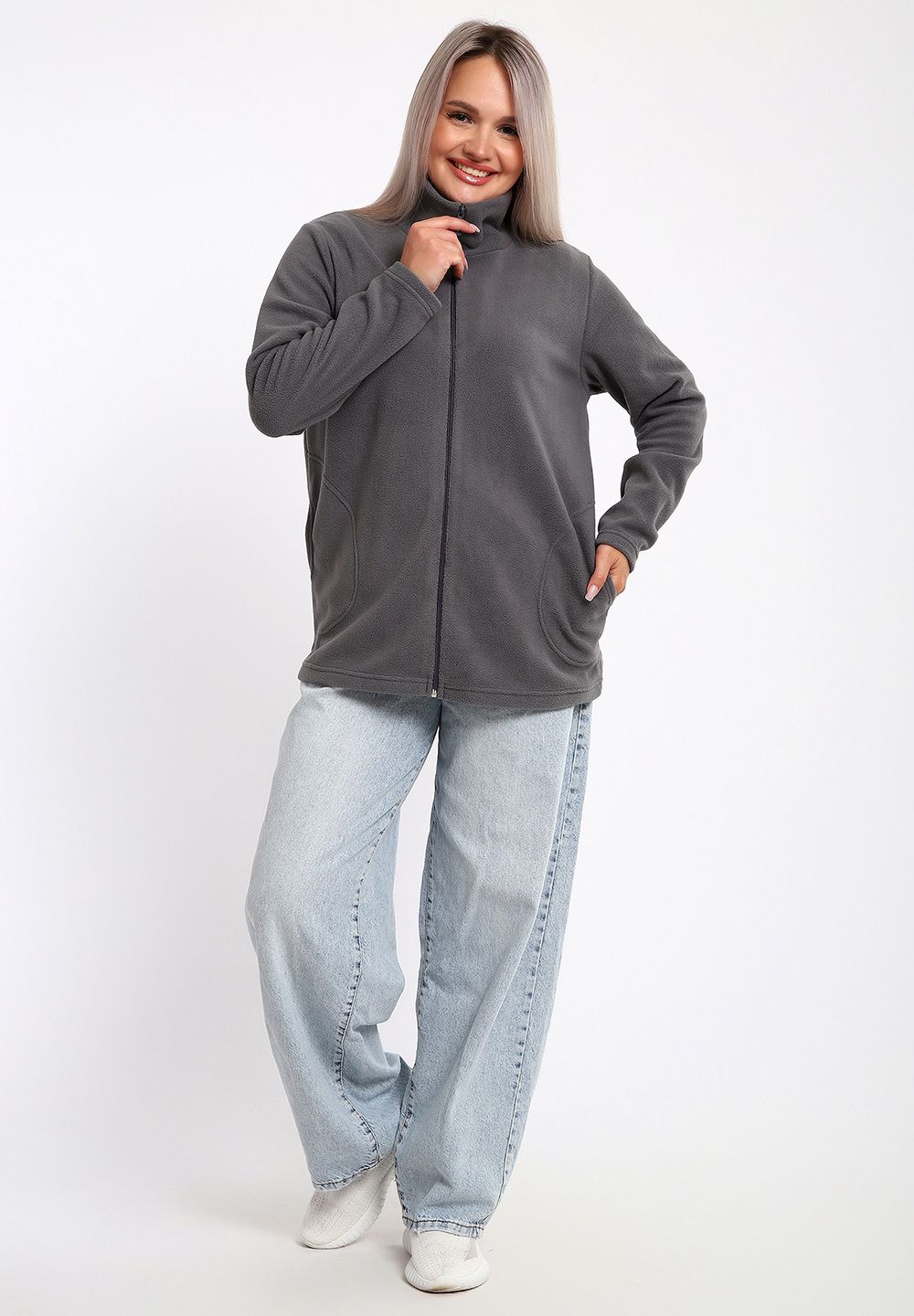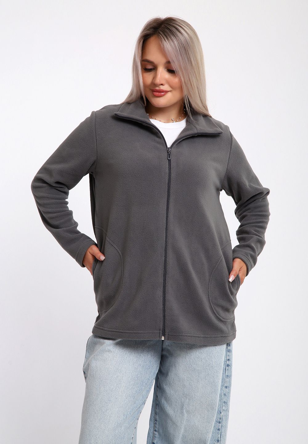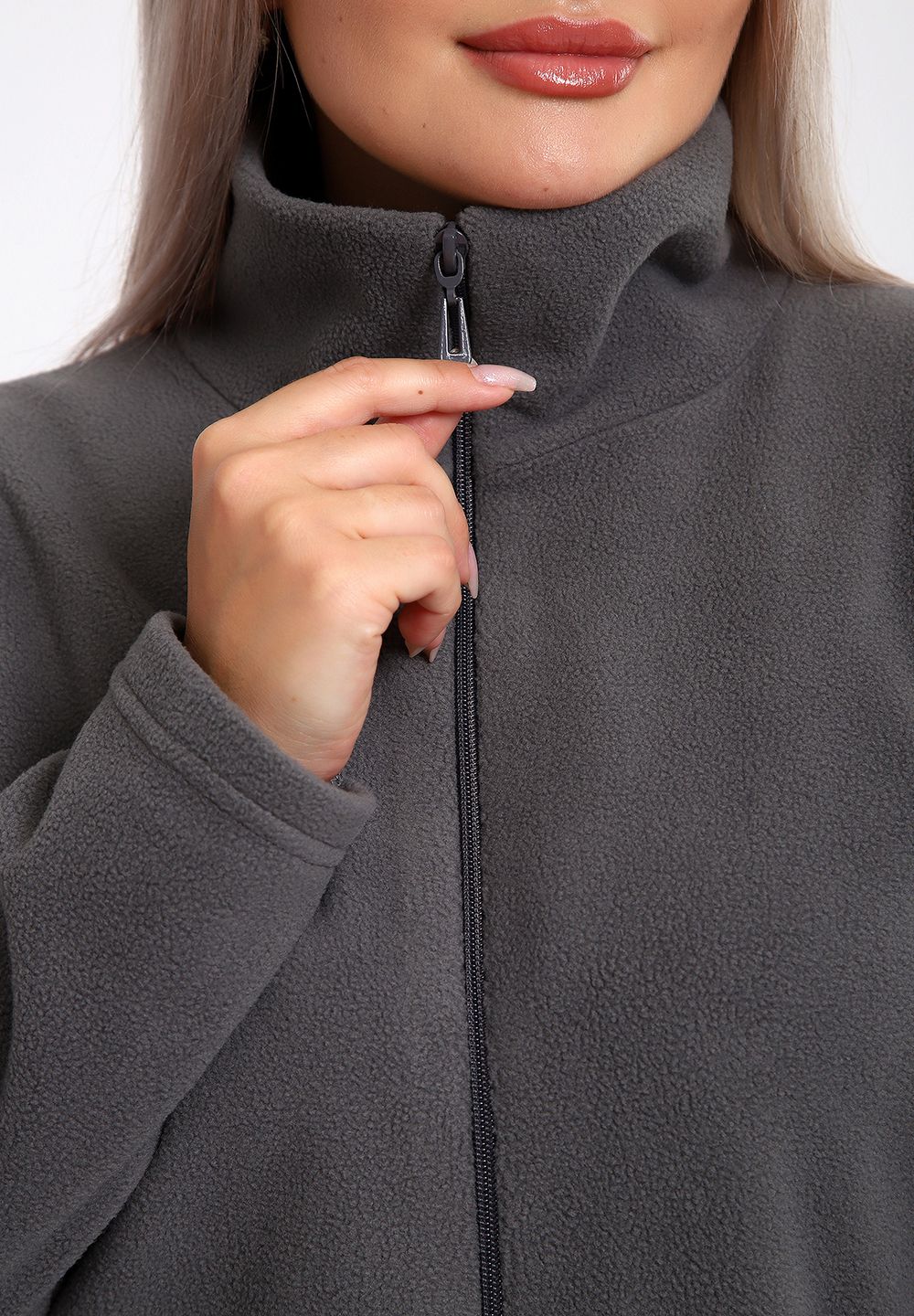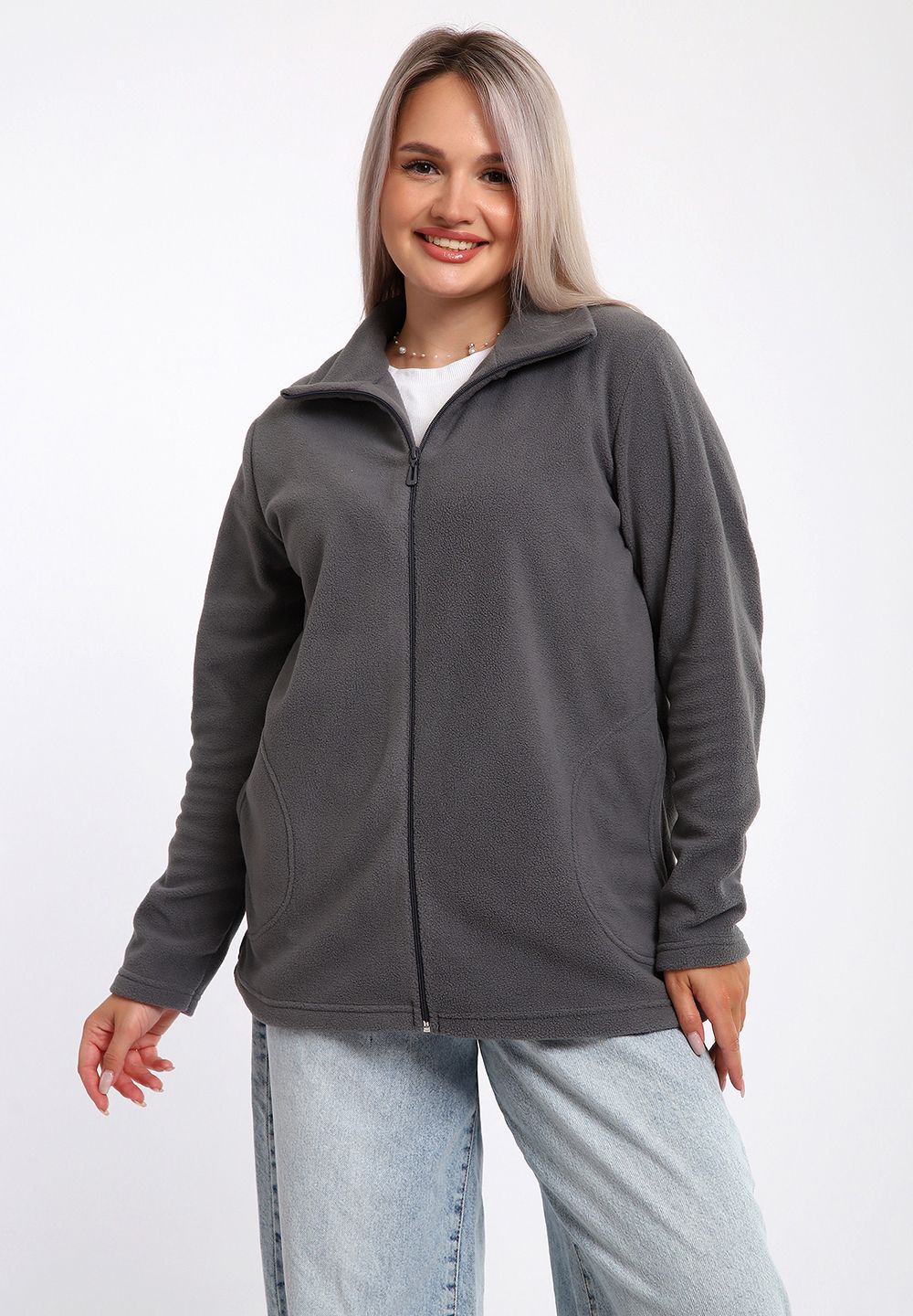 734 Толстовка флис стойка молния - серый