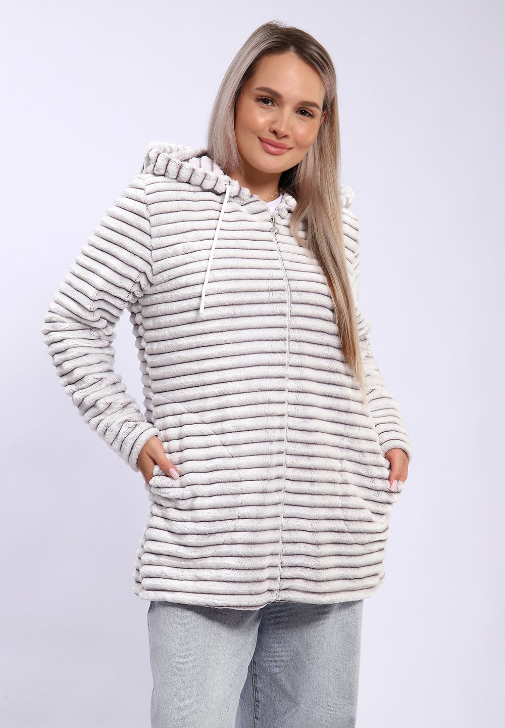 Толстовка с капюшоном на молнии и двумя карманами выполнена из мягкого и теплого велсофта, похожего на шиншиллу. Удлиненная модель обеспечивает дополнительное тепло и комфорт, идеально подходит для холодных дней. Мягкая текстура и приятное ощущение на ощупь делают эту толстовку стильным и уютным элементом гардероба.