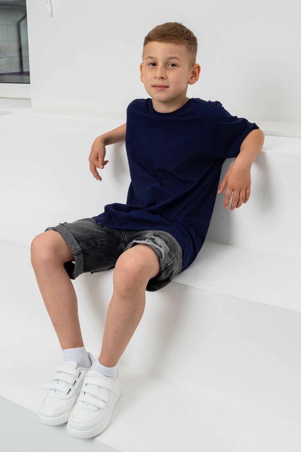 7450 футболка детская однотонная - темно-синий