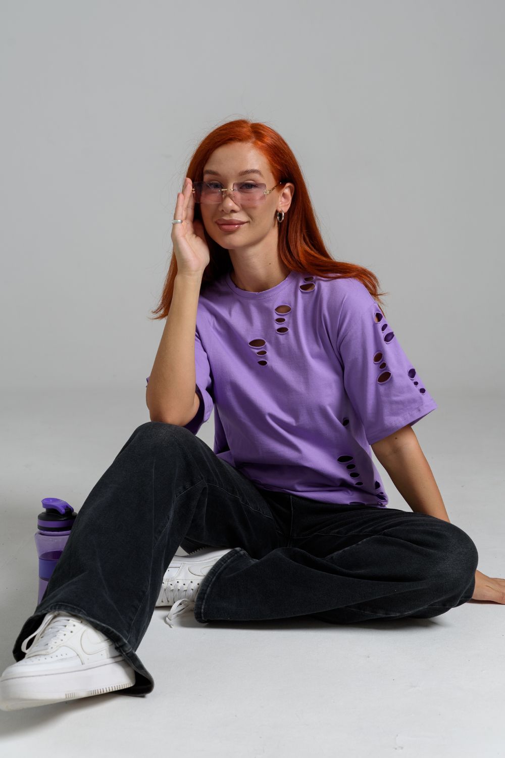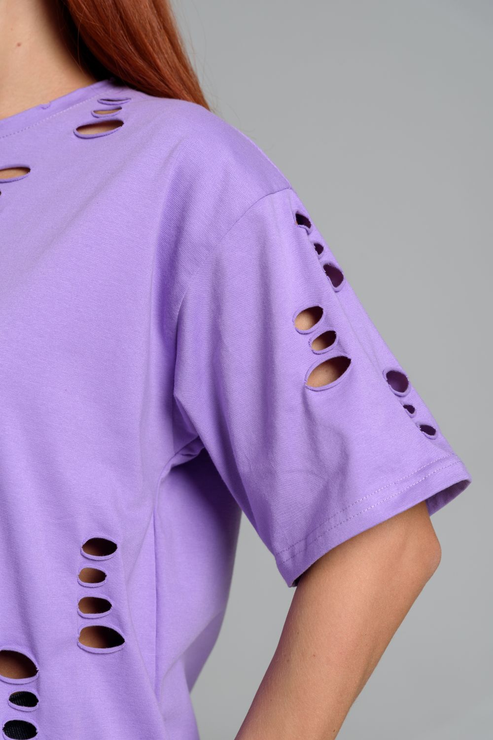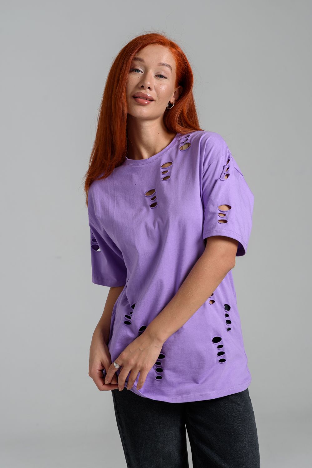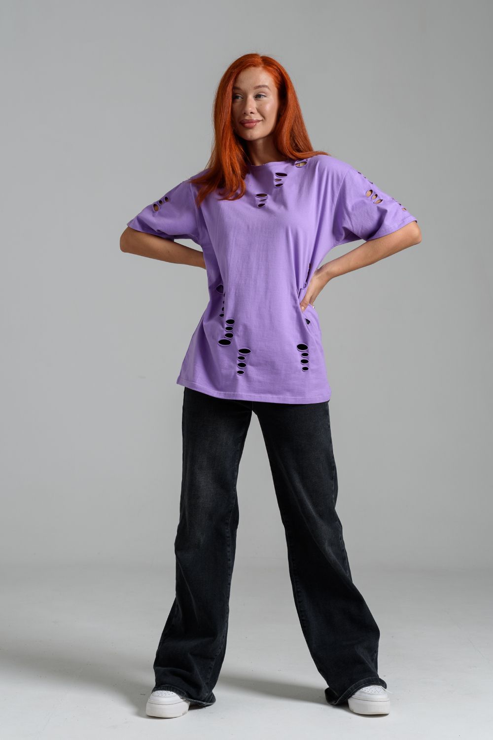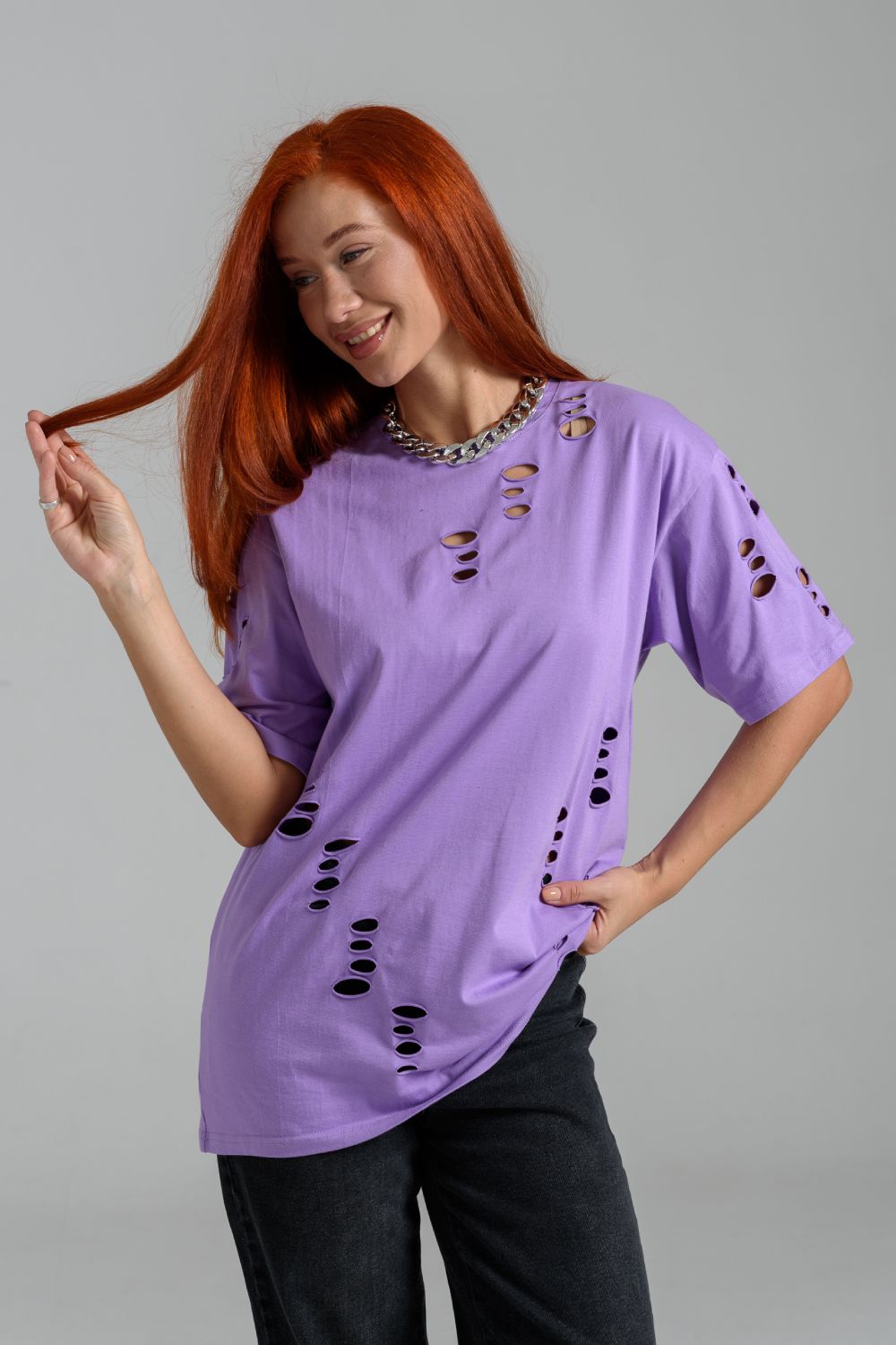 Красивая и необычная хлопковая футболка дополнена оригинальными разрезами. Натуральный состав трикотажа позволяет коже дышать и подарит ощущение комфорта. Идеальный выбор для создания модных и ярких образов!