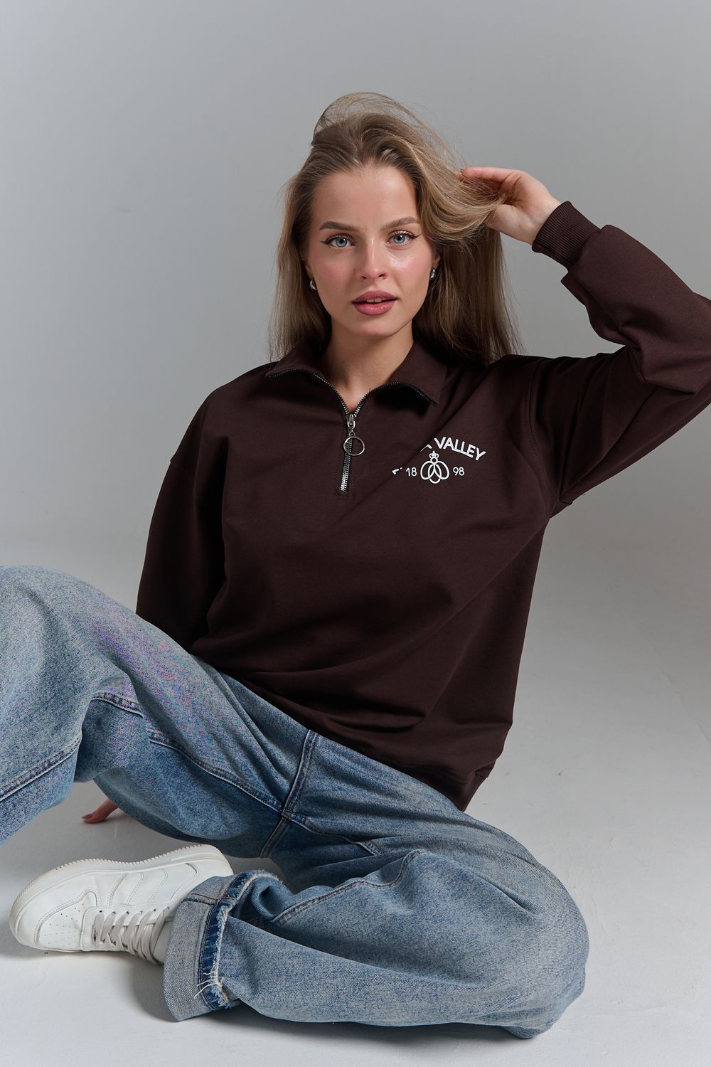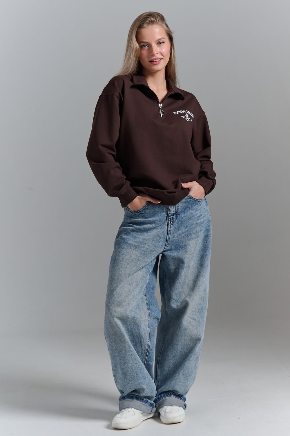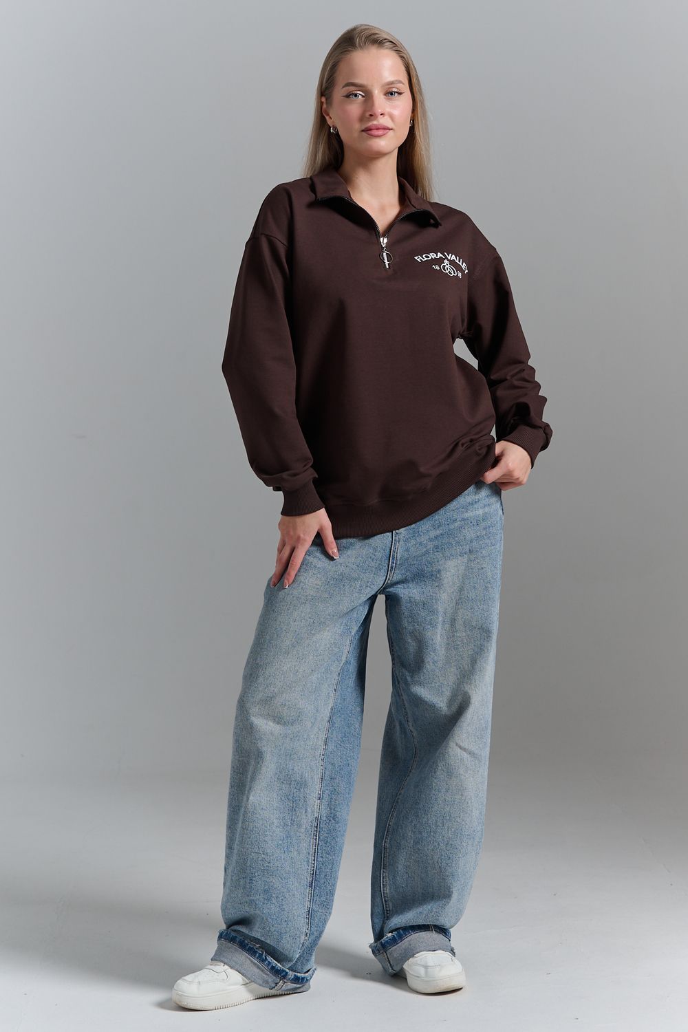 Почувствуйте уют и стиль с нашим женским свитшотом. Этот свитшот на молнии в стиле oversize станет незаменимым элементом вашего гардероба. Вдохновленный трендами и эстетикой винтажного комфорта, он сочетает в себе модный вид и исключительное удобство. Свободный крой обеспечивает полную свободу движений, а качественный материал сохраняет тепло в холодные осенние и зимние дни. Идеально подходит для прогулок или уютных вечеров. Воротник на молнии позволяет регулировать уровень комфорта и добавляет нотку спортивной эстетики. Будьте в тренде и добавьте ретро-нотки в свой образ. Независимо от того, предпочитаете ли вы casual или streetwear, наш свитшот станет вашим лучшим выбором. Стиль с элементами ретро подходит как для учебы, так и для повседневных дел. Добавьте в свой гардероб вещь, которая одновременно выглядит модно и позволяет вам чувствовать себя максимально комфортно каждый день.