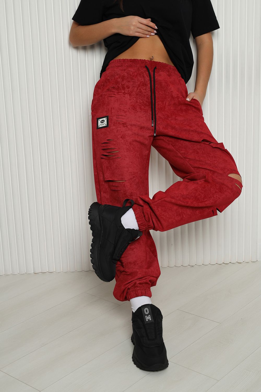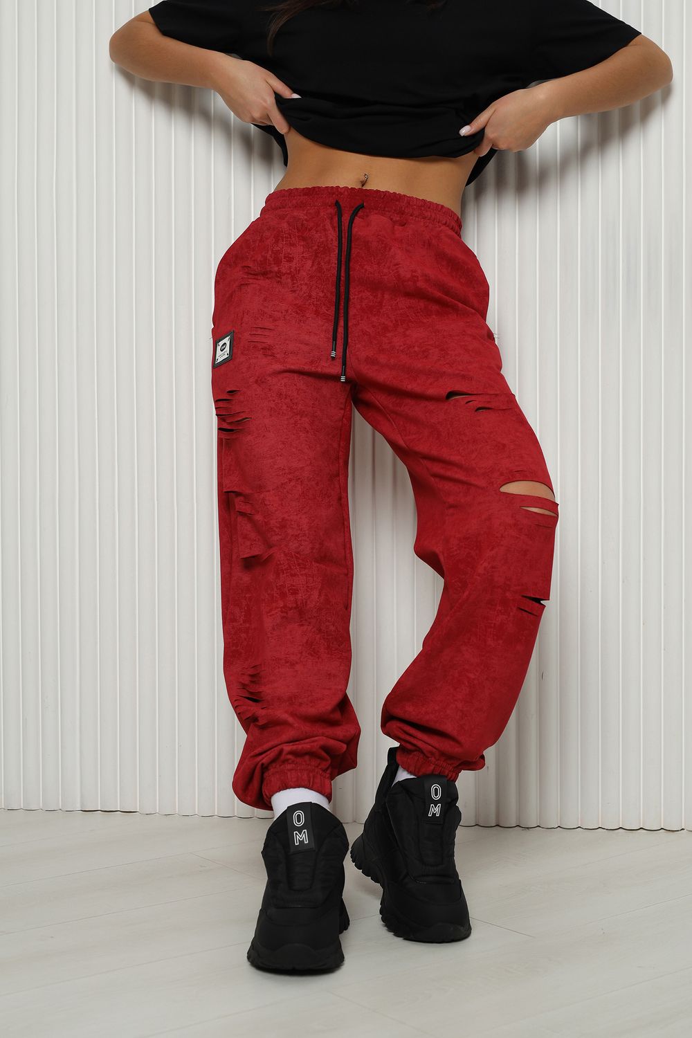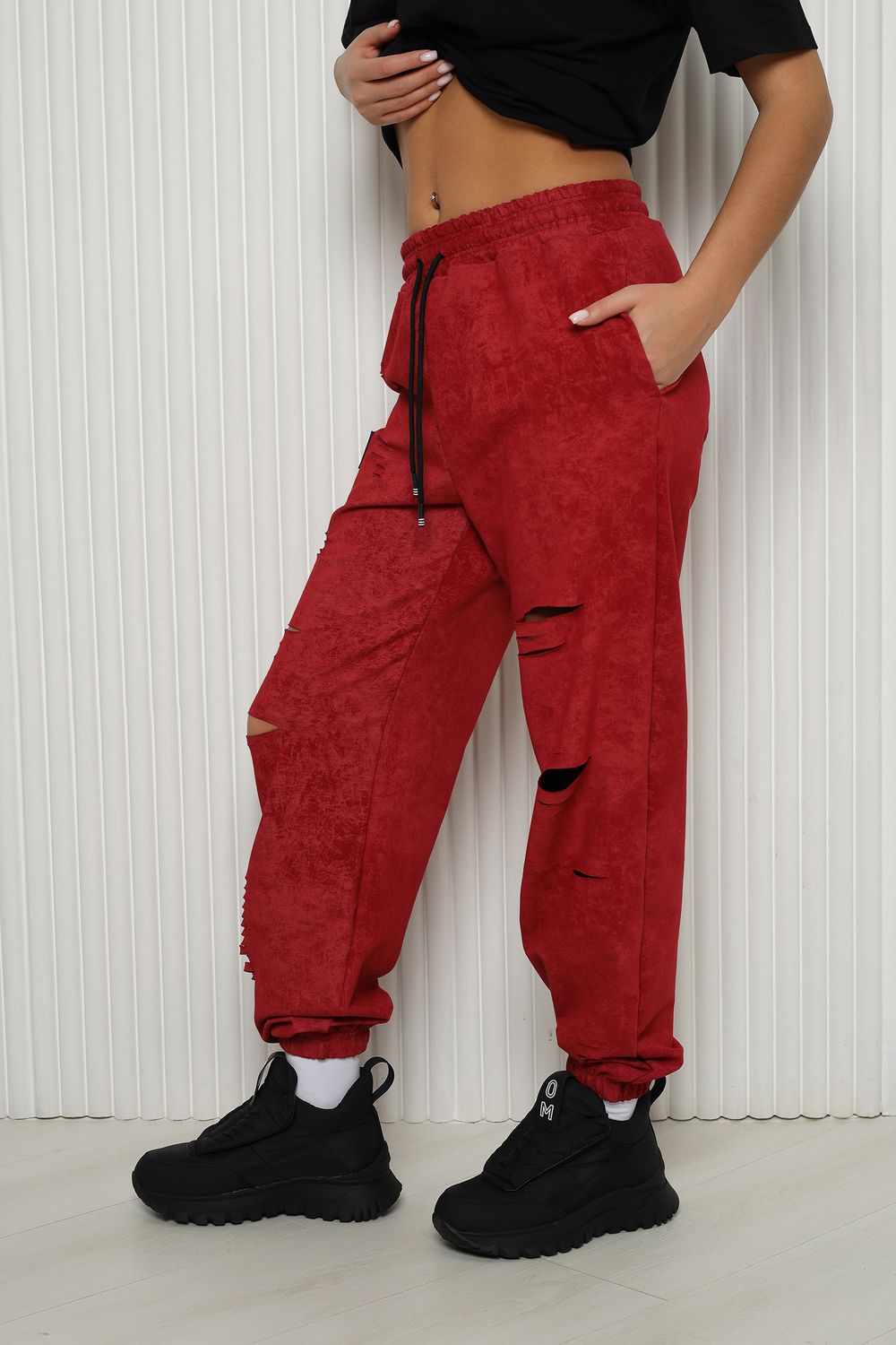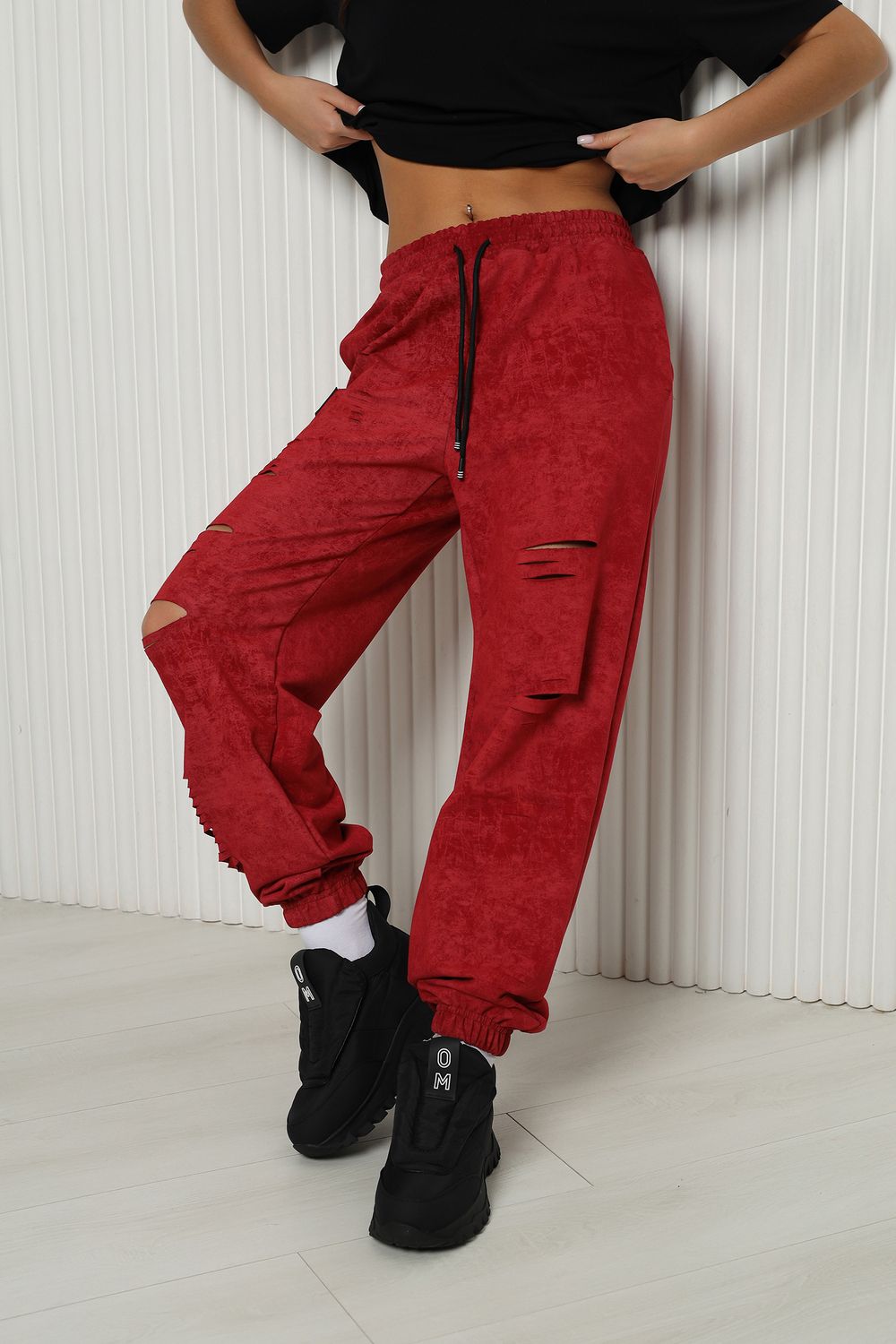 Стильные женские спортивные штаны с прорезями в уличном стиле. Штаны на резинке с комфортной посадкой созданы для ярких девушек, ценящих удобство и моду. Идеально подходят для прогулок, дома и активного отдыха. Легкие трикотажные джоггеры с карманами — тренд сезона. Рваные детали добавляют дерзости образу, а свободный крой гарантирует комфорт на каждый день. Багги, карго, бананы и слоучи — все, что нужно для модного гардероба! Оверсайз штаны на резинке с манжетами идеально подойдут как для подростков, так и для женщин высокого и невысокого роста. Создай модный лук с хлопковыми кэжуал брюками. Необычные широкие дырявые джоггры с высокой талией подчеркнут твою индивидуальность. Выбери casual штаны с гранж акцентами для танцев или фитнеса — будь всегда на пике тренда. Стильная спортивка с прорезями для девушек отличный выбор для демисезона и весенних прогулок. Почувствуй свободу движения!