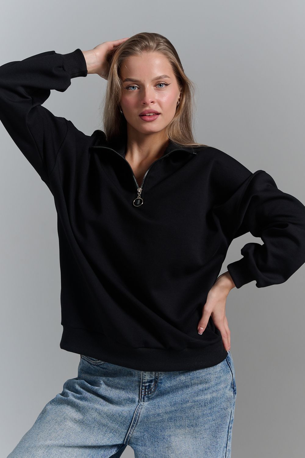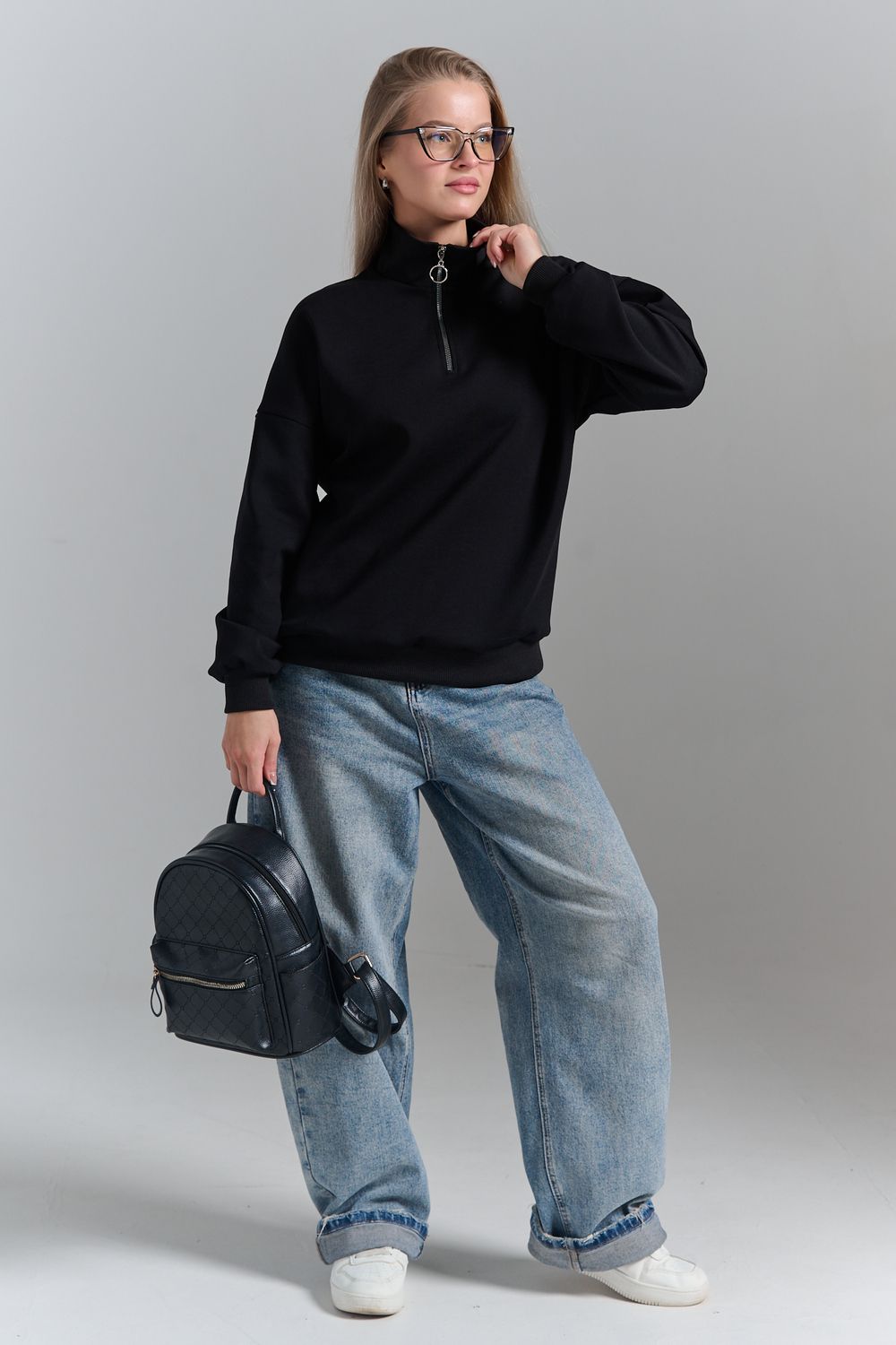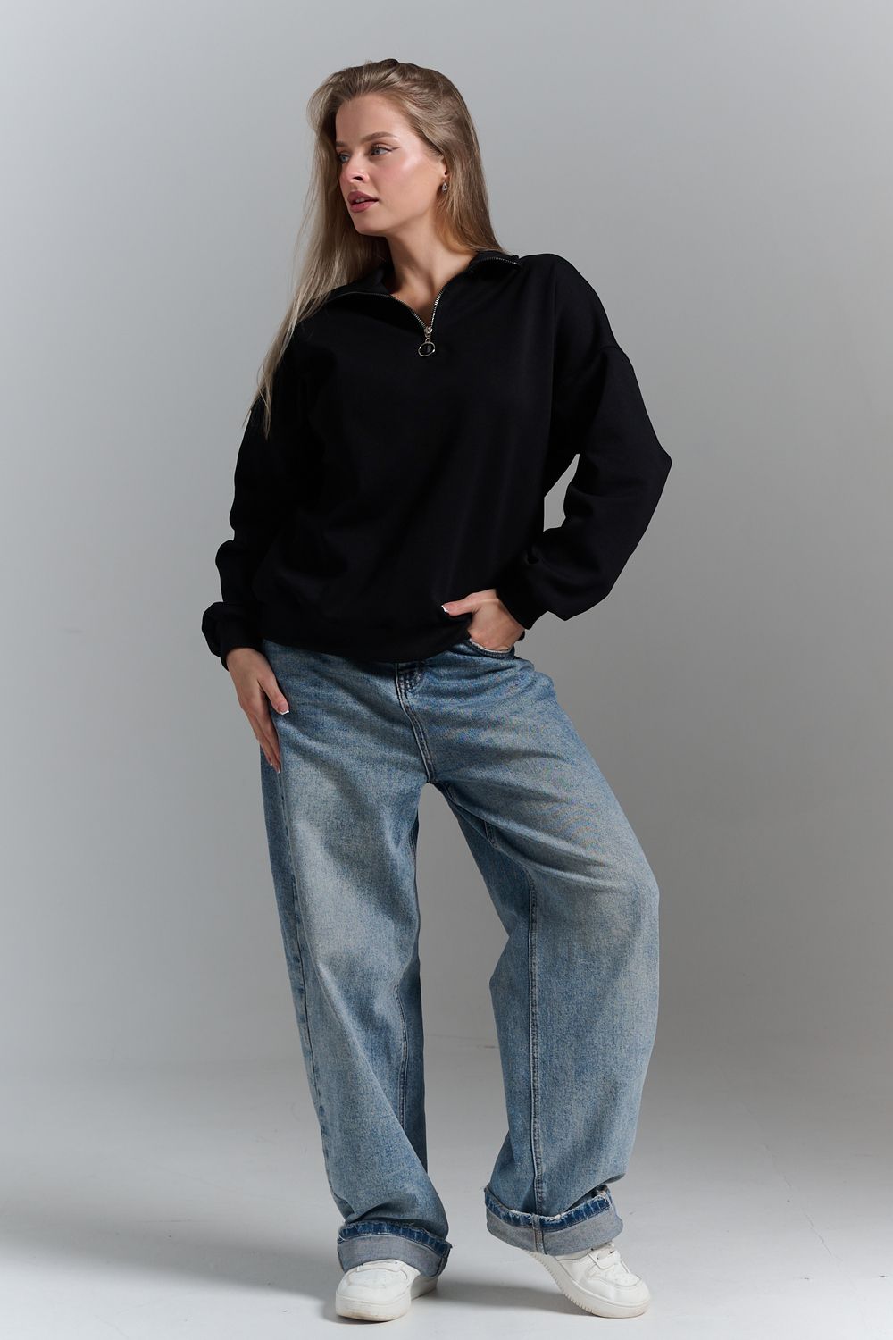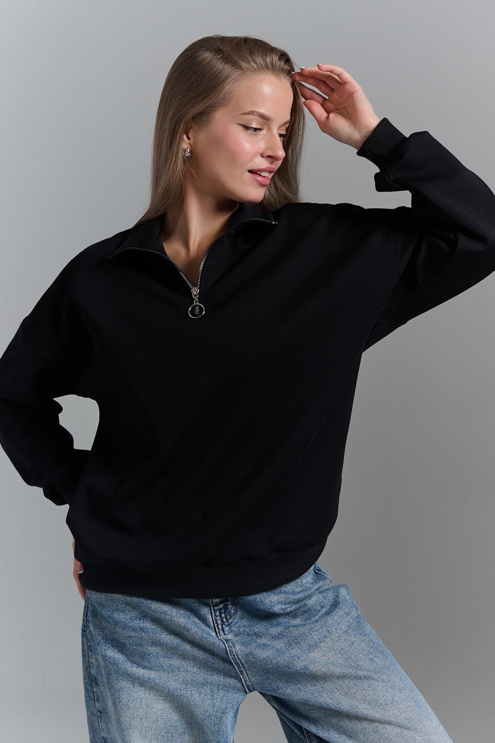 Однотонный свитшот это стильная и универсальная вещь. Он актуален даже без принта, рисунка, надписи и других дополнительных деталей. Слегка удлиненный пуловер подойдет для среднего, невысокого и высокого роста. Толстовку с высоким воротом. Такая одежда подойдет на каждый день, отлично впишется в универсальный базовый повседневный гардероб. Длина рукава измеряется от горловины.