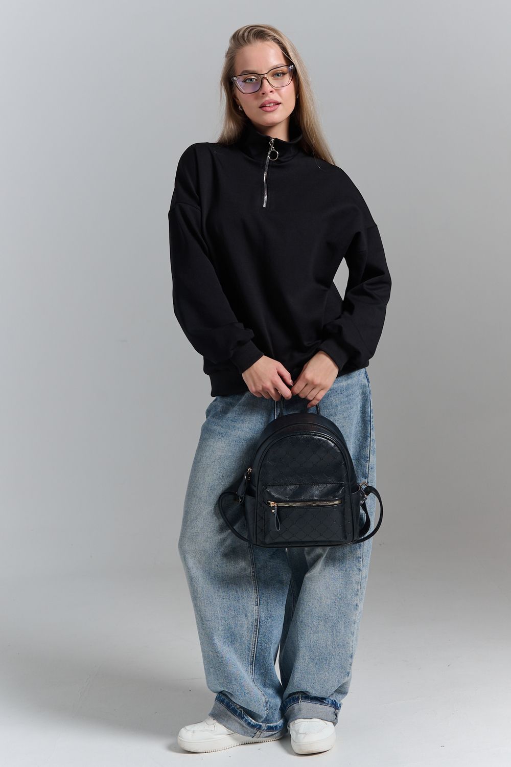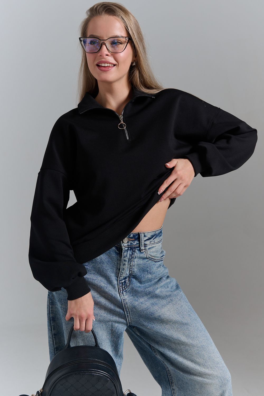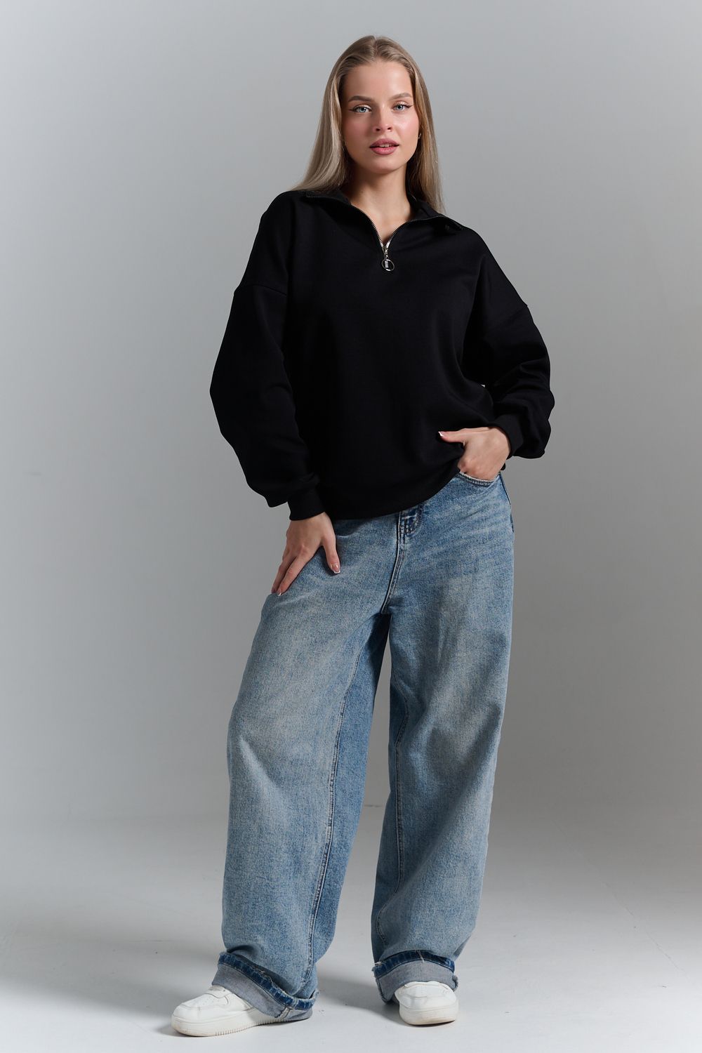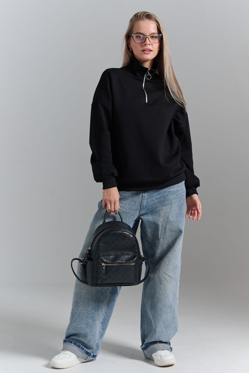 Однотонный свитшот это стильная и универсальная вещь. Он актуален даже без принта, рисунка, надписи и других дополнительных деталей. Слегка удлиненный пуловер подойдет для среднего, невысокого и высокого роста. Толстовку с высоким воротом. Такая одежда подойдет на каждый день, отлично впишется в универсальный базовый повседневный гардероб. Длина рукава измеряется от горловины.
