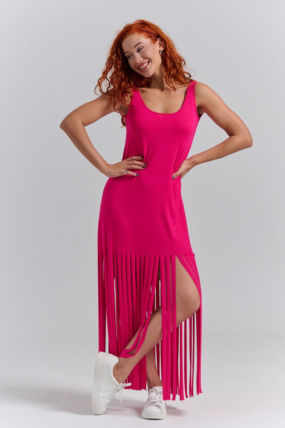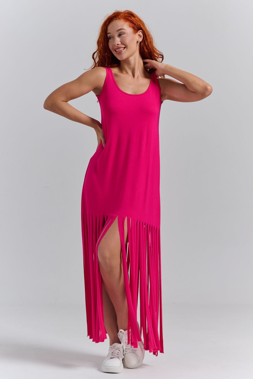 Платье с бахромой из струящейся вискозы. Лёгкое, летящее, манящее. Дарит невероятное ощущение женственности! Собираетесь на курорт? Благодаря легкости материала - отлично подойдёт как сарафан, летнее платье в отпуск. Платье с бахромой очень комфортно в жару. Это платье надо брать! Отлично впишется в Ваш гардероб! Прекрасно садится на фигуру!