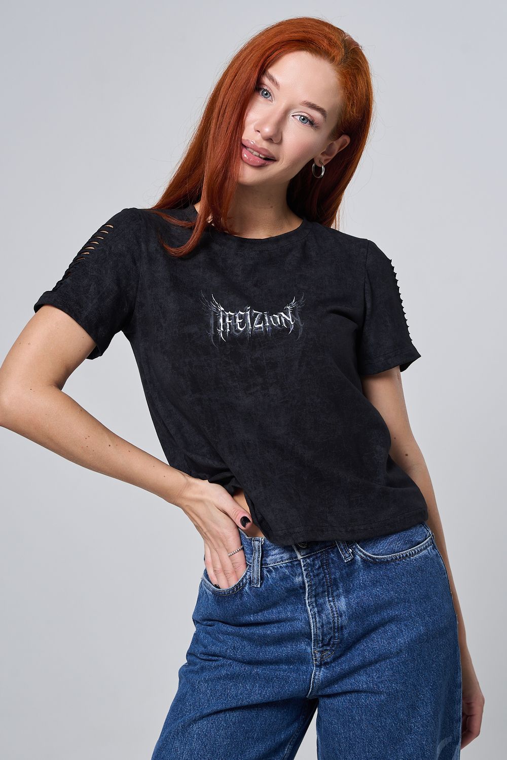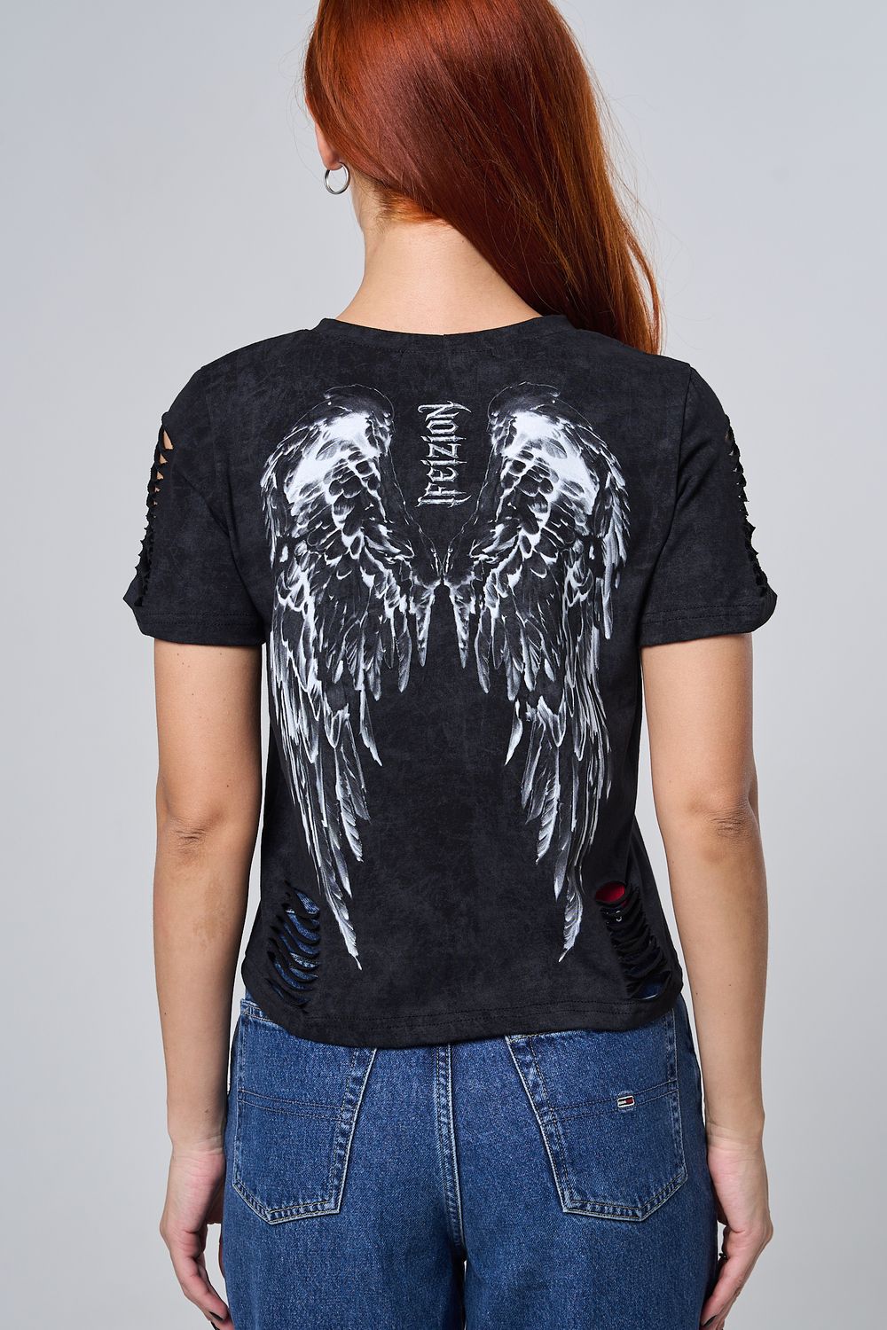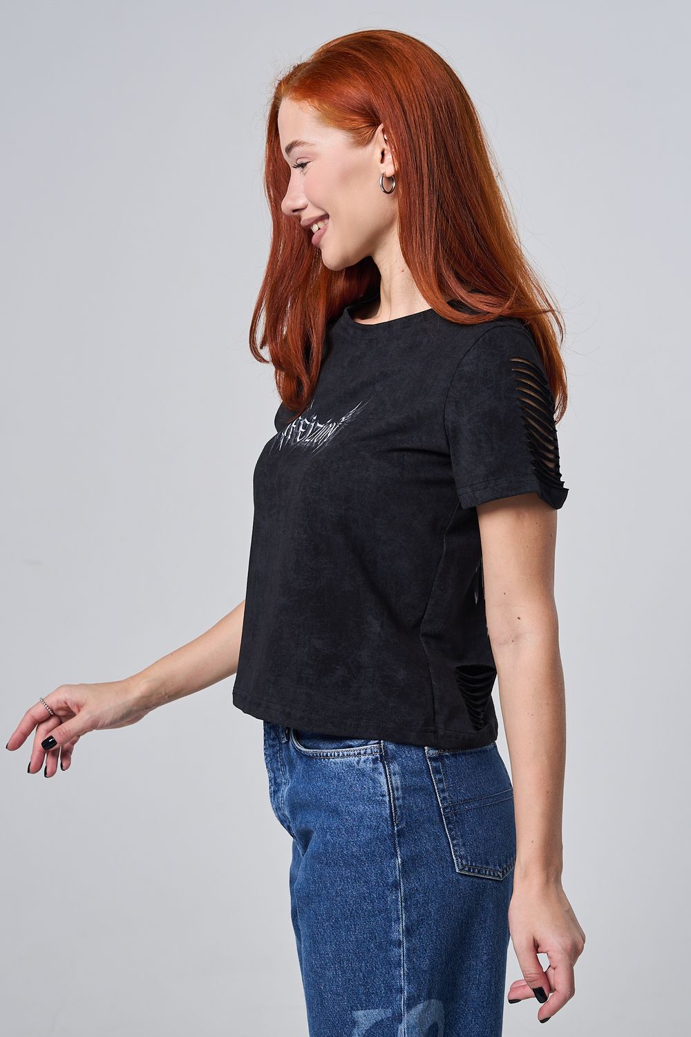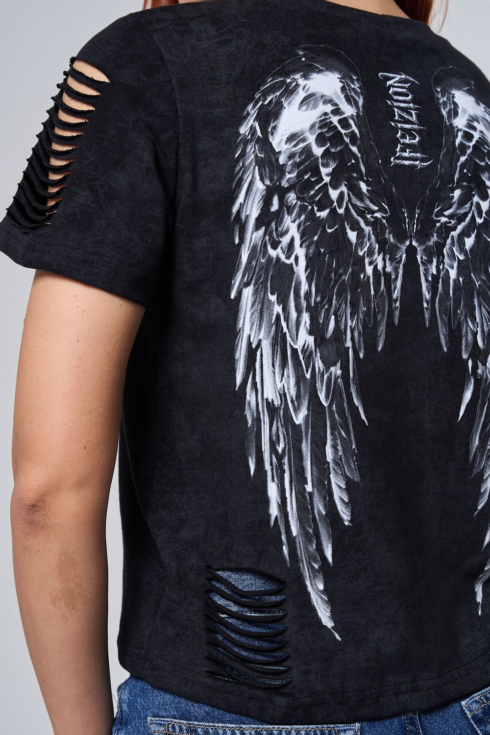7502 футболка женская - черный винтаж+крылья