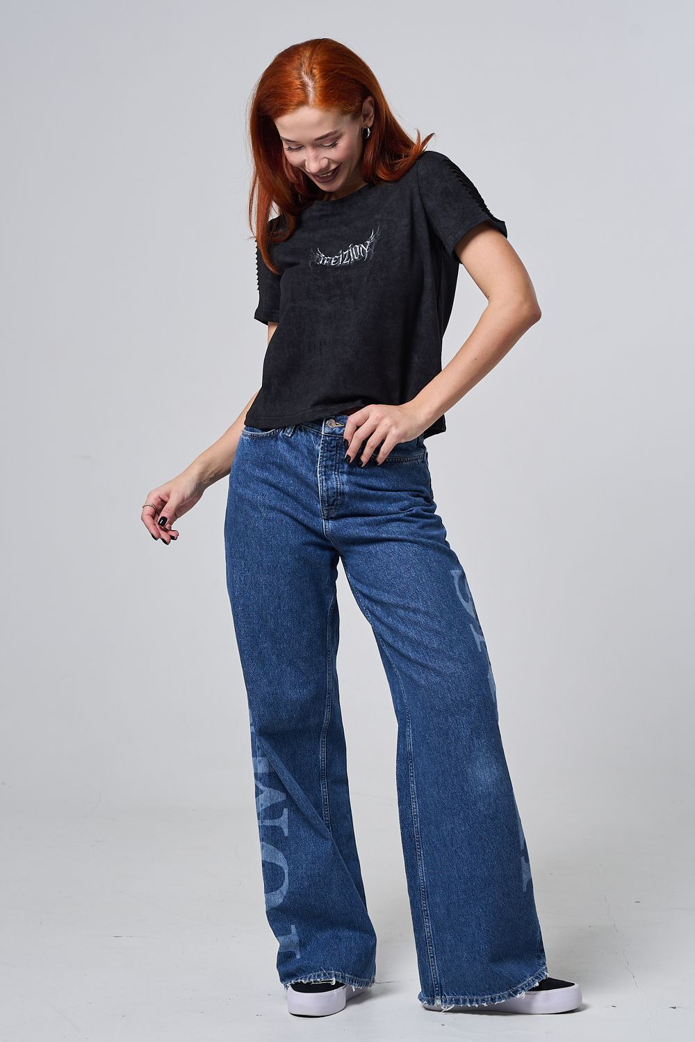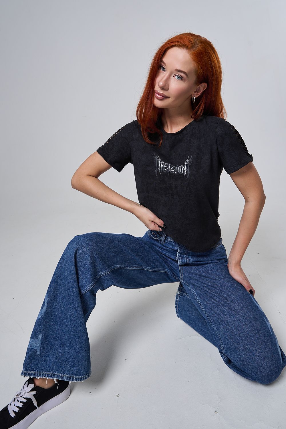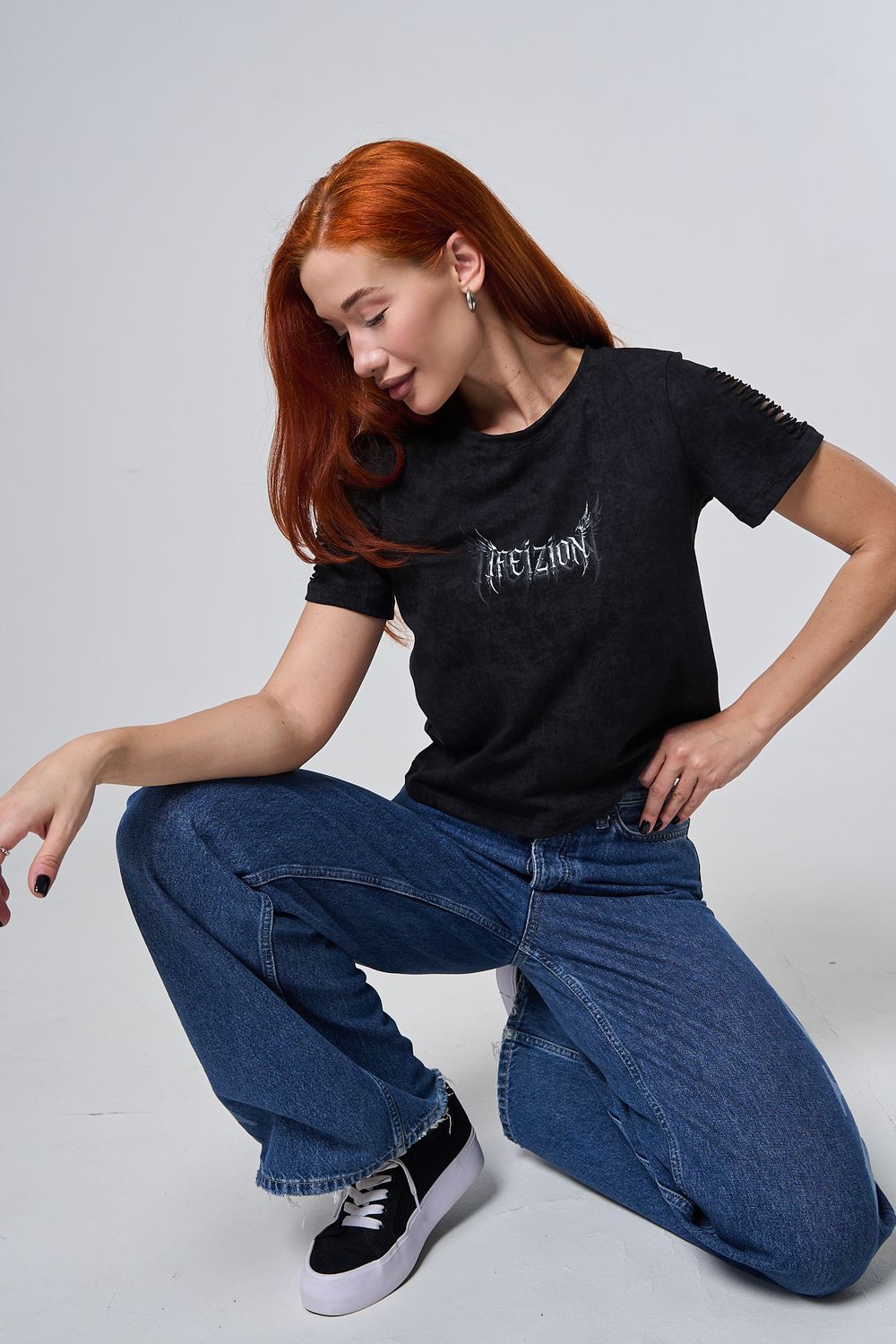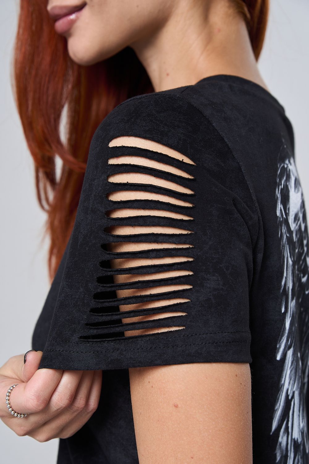 7502 футболка женская - черный винтаж+крылья