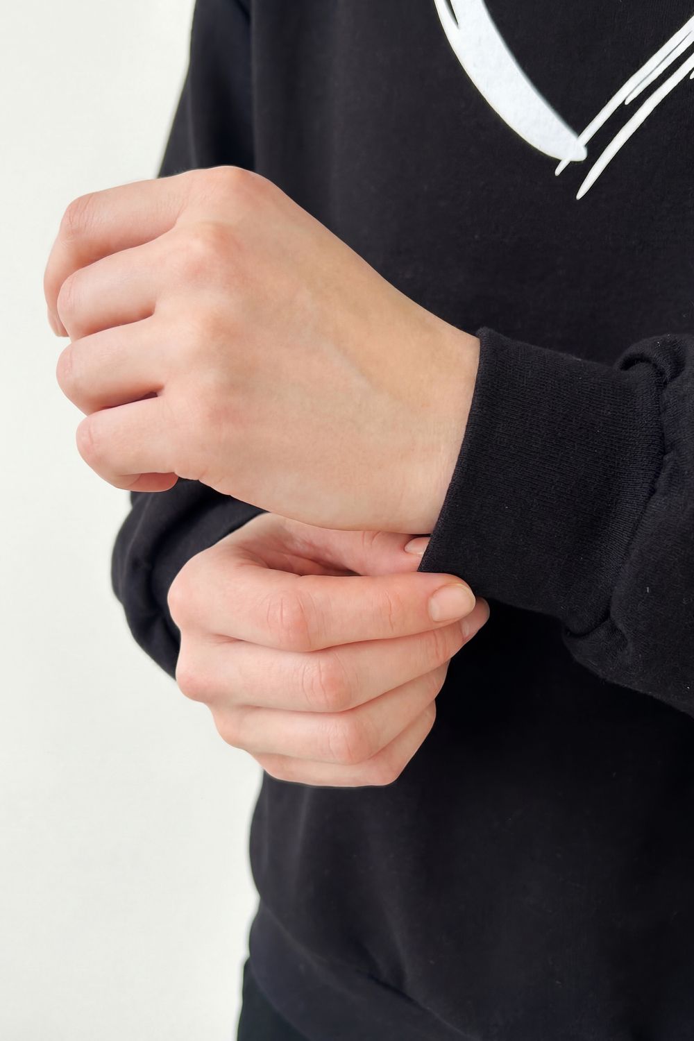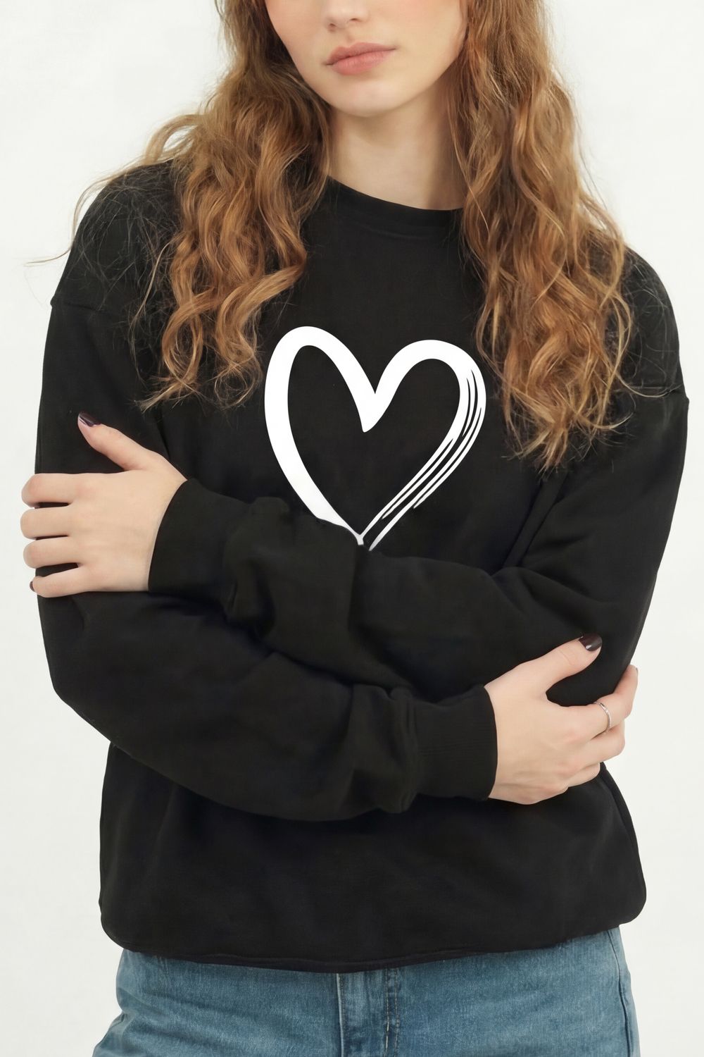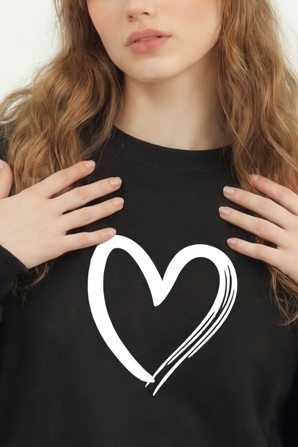 Черный свитшот с оригинальным принтом в виде сердца — воплощение уюта и стиля на каждый день. Мягкая ткань, свободный крой и универсальный дизайн легко сочетаются с любимыми джинсами или юбкой. Идеальный выбор для прогулок, учебы и встреч с друзьями, чтобы добавить яркий акцент в ваш образ!