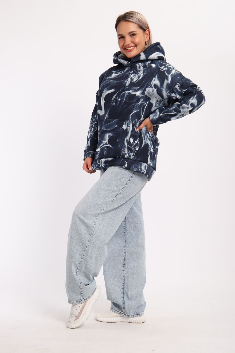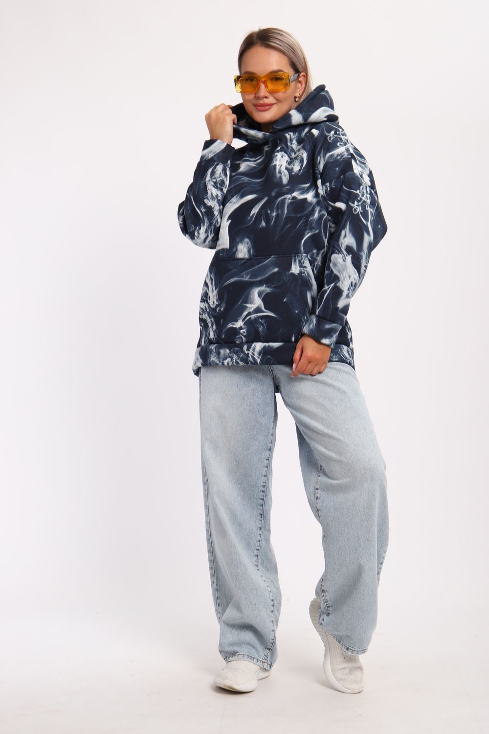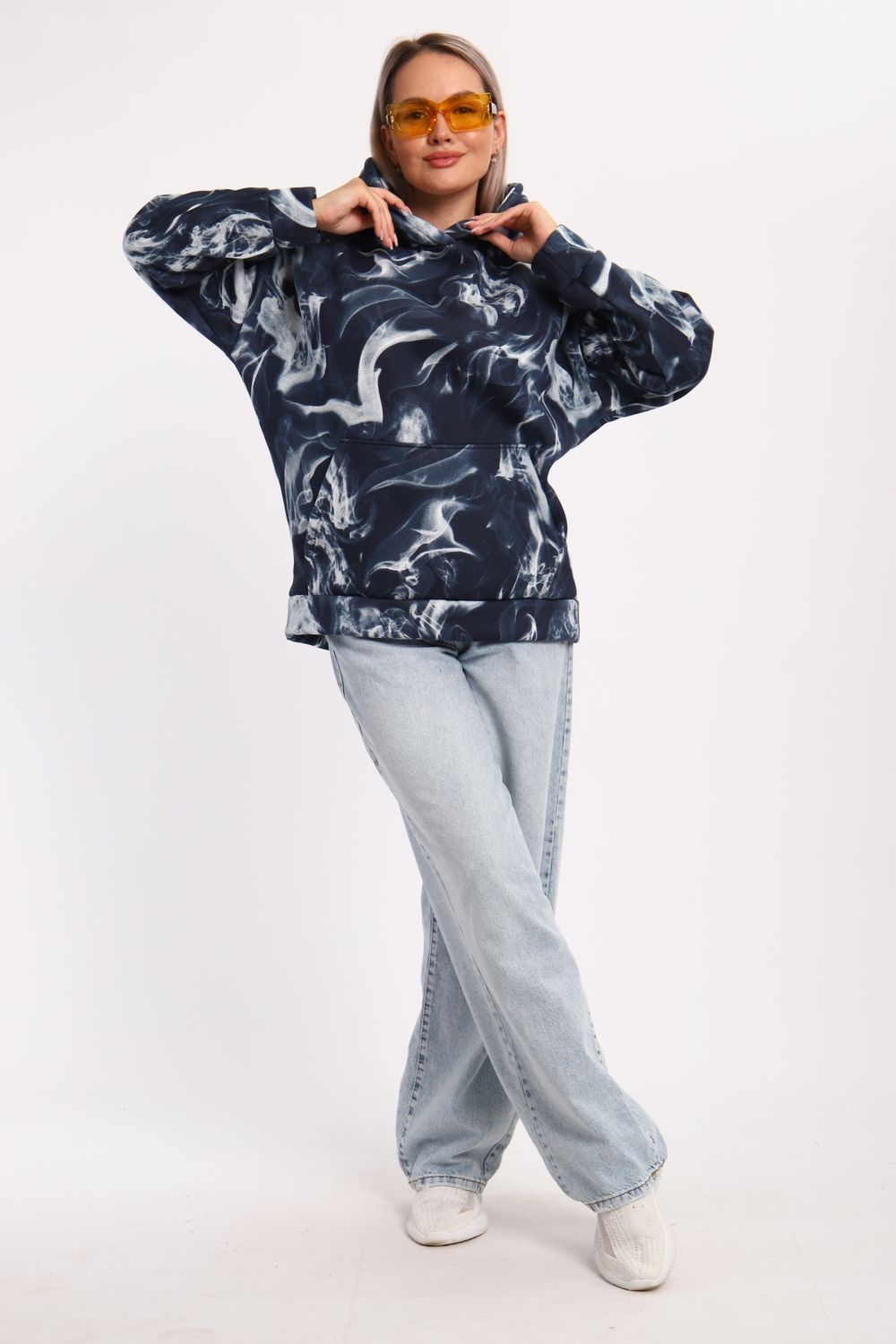 оверсайз толстовка с капюшоном и карманом-кенгуру идеально подойдет для прохладных дней, благодаря своему объемному дизайну и длинным рукавам с манжетами. Изготовленное из качественного трикотажа, оно обеспечивает комфорт и свободу движений, что делает его отличным выбором как для активного отдыха, так и для повседневного использования.