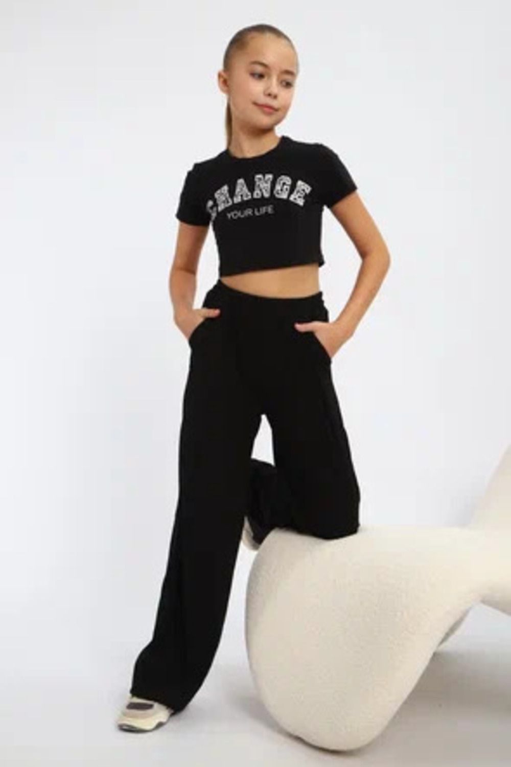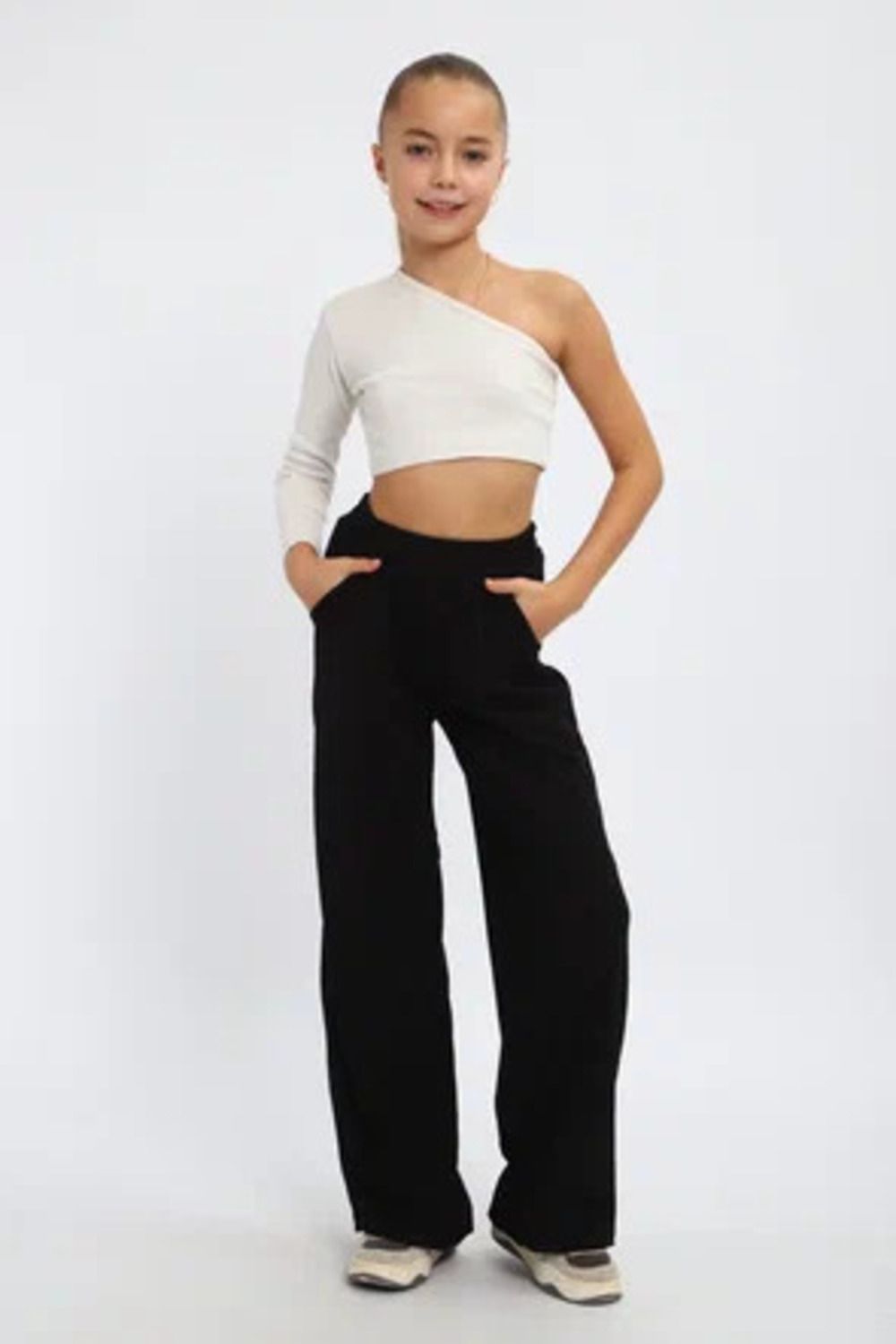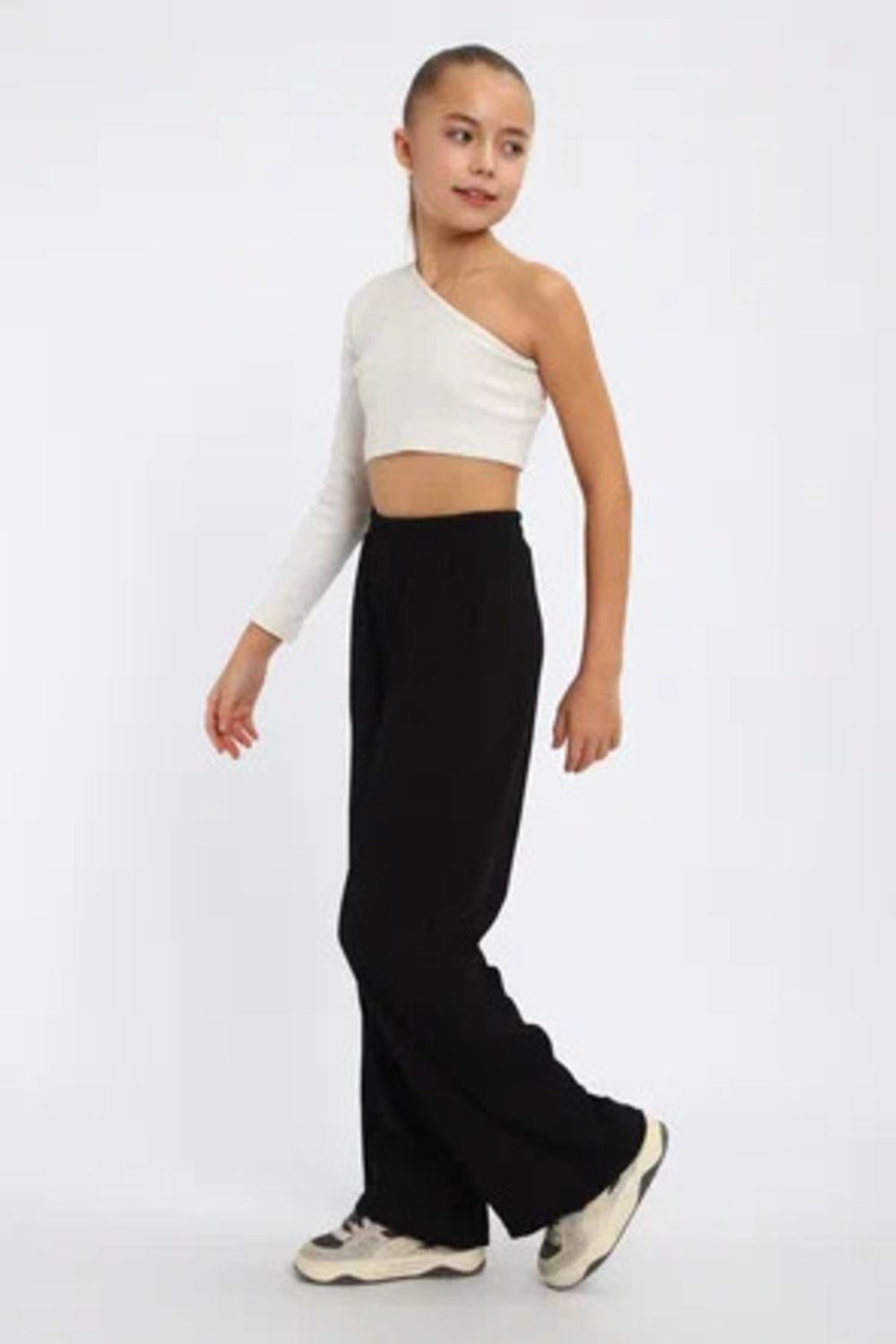 Легкие трикотажные штаны будут активно использоваться в летний, весенний и осенний период. Под такой низ не составит труда подобрать подходящую блузку, рубашку, футболку или кофту. Уместна как классика, так и как популярная трендовая одежда, вещи в спортивном стиле. Расклешенные внизу брюки с удобной посадкой сшиты из мягкого трикотажа. В составе материала вискоза и полиэстер. Штаны оснащены боковыми вместительными карманами, резинкой на поясе, станут отличным решением для отдыха дома и дачи, танцев, фотосессии, туристического похода, повседневной носки, школу и на улицу. Модель свободного кроя всегда будет в моде идеальна на каждый день весной и осенью. При желании брючки для девочки можно укоротить и носить как кюлоты.